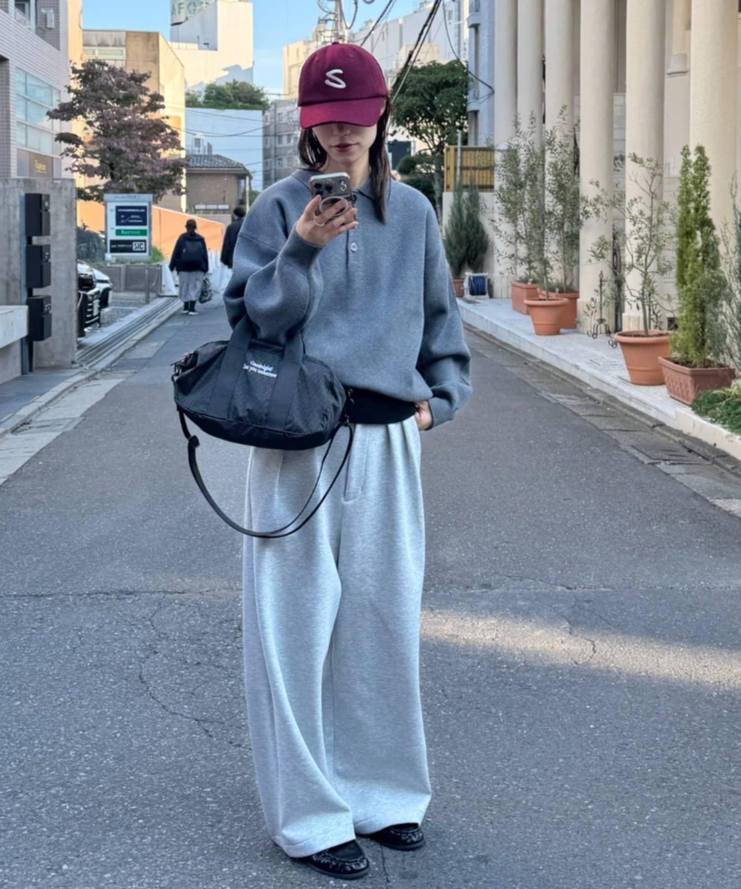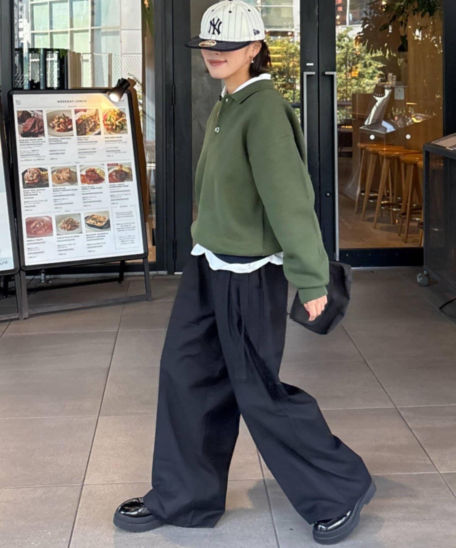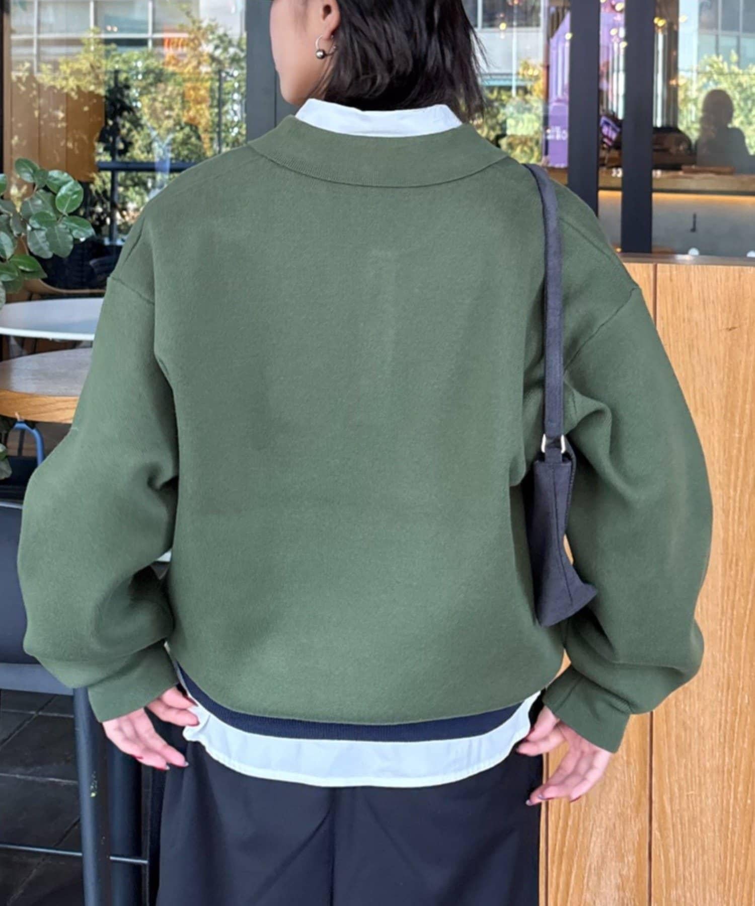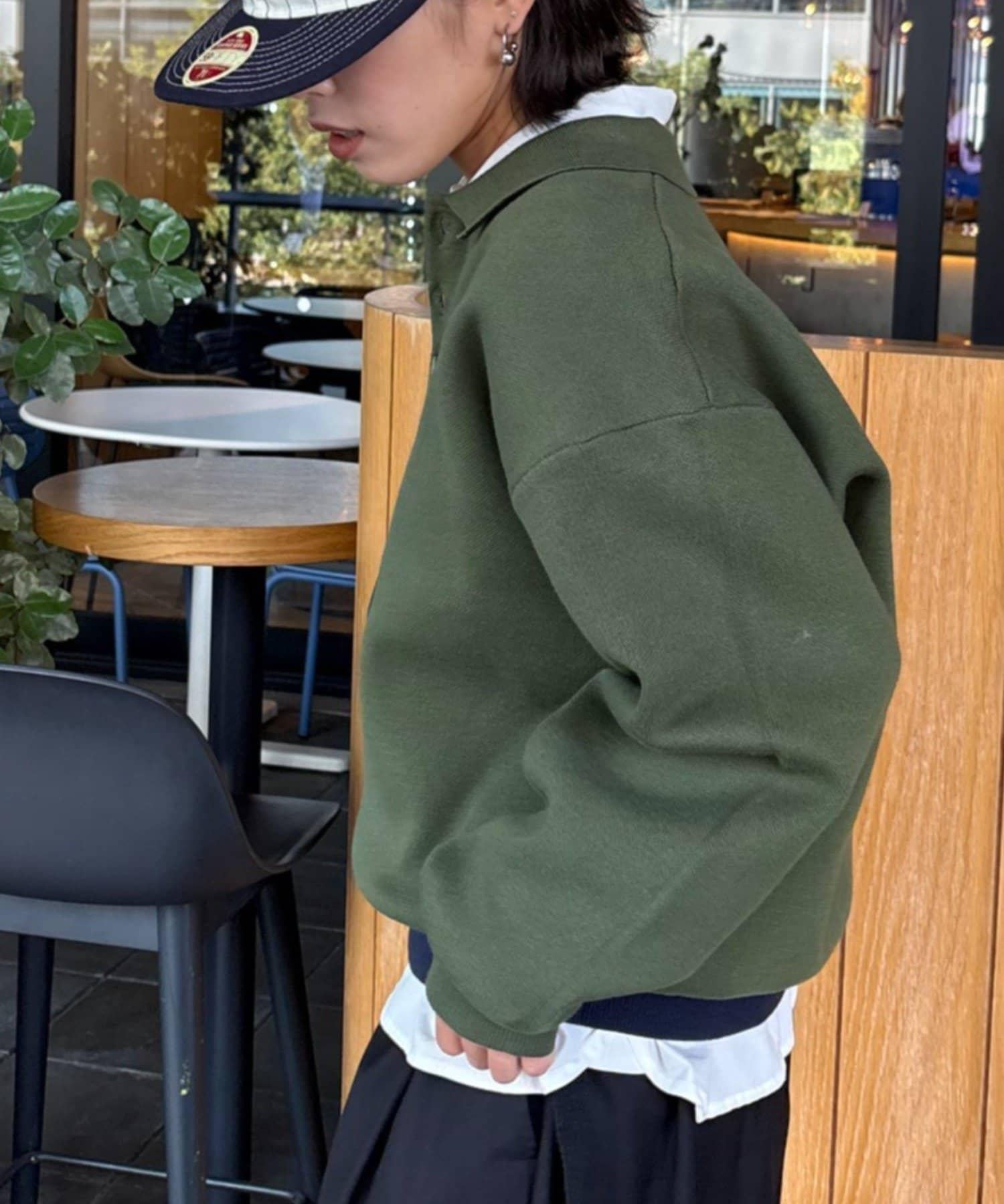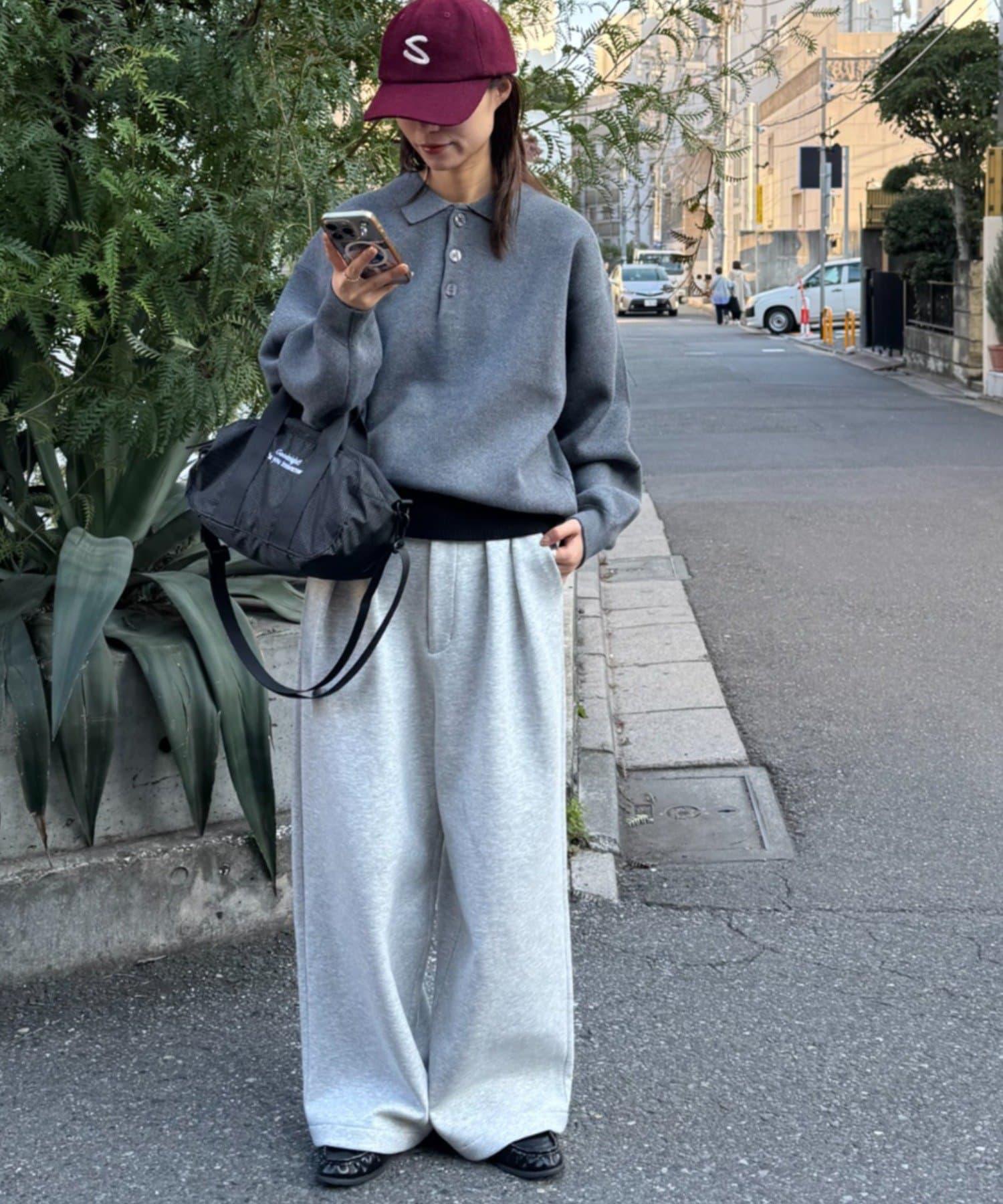 寬鬆的廓形給人一種放鬆的感覺,但下襬的羅紋配色又增加了利落的協調感。