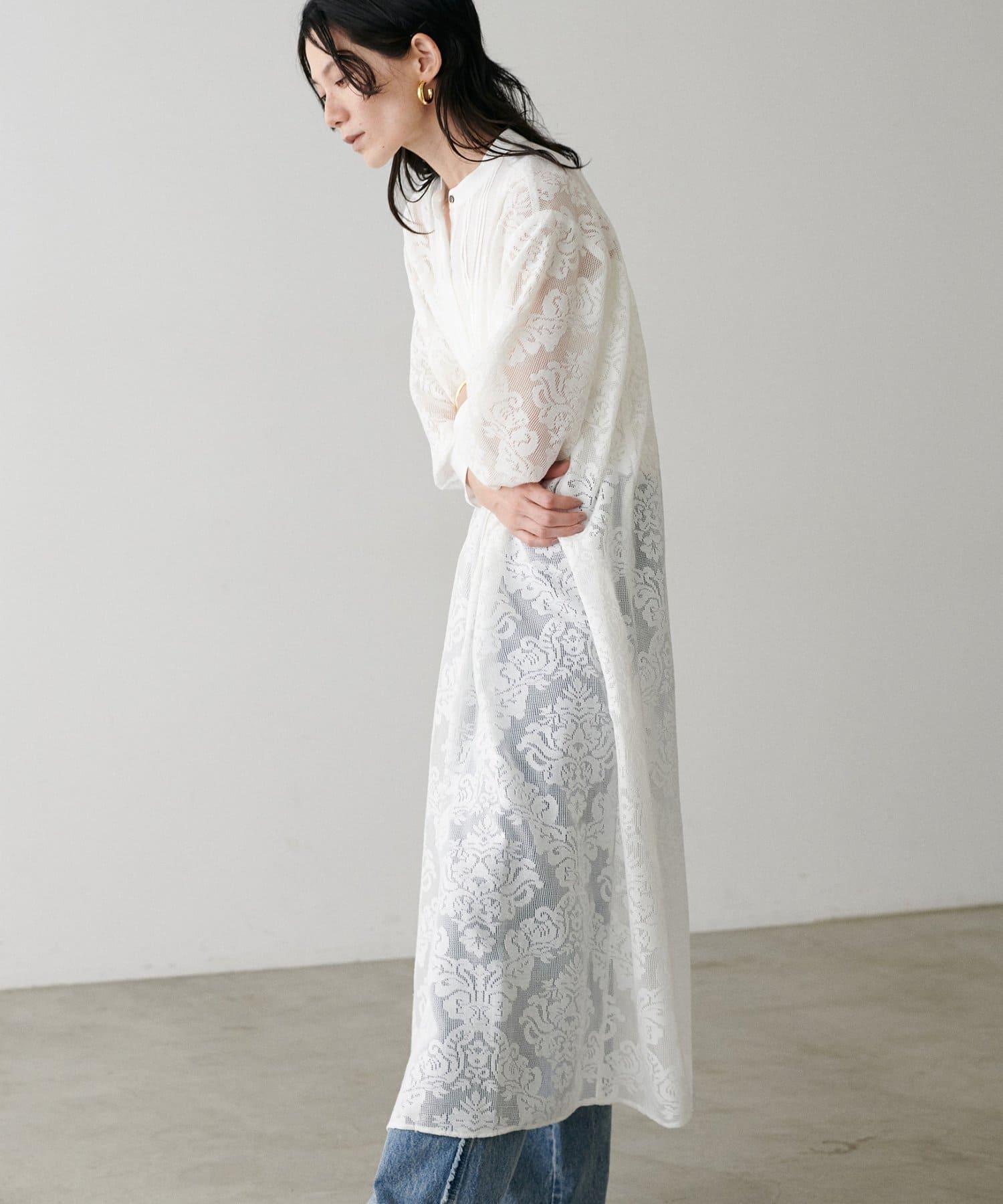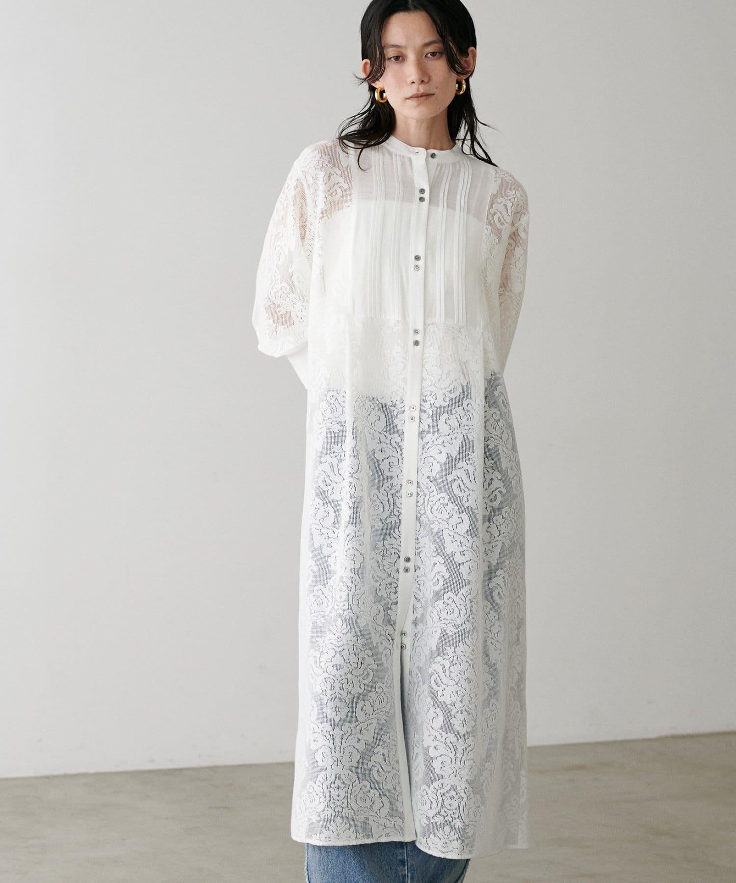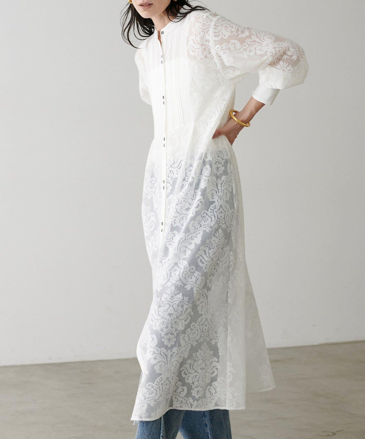 這款長裙採用鏤空設計,以精緻的全蕾絲剪裁而成。