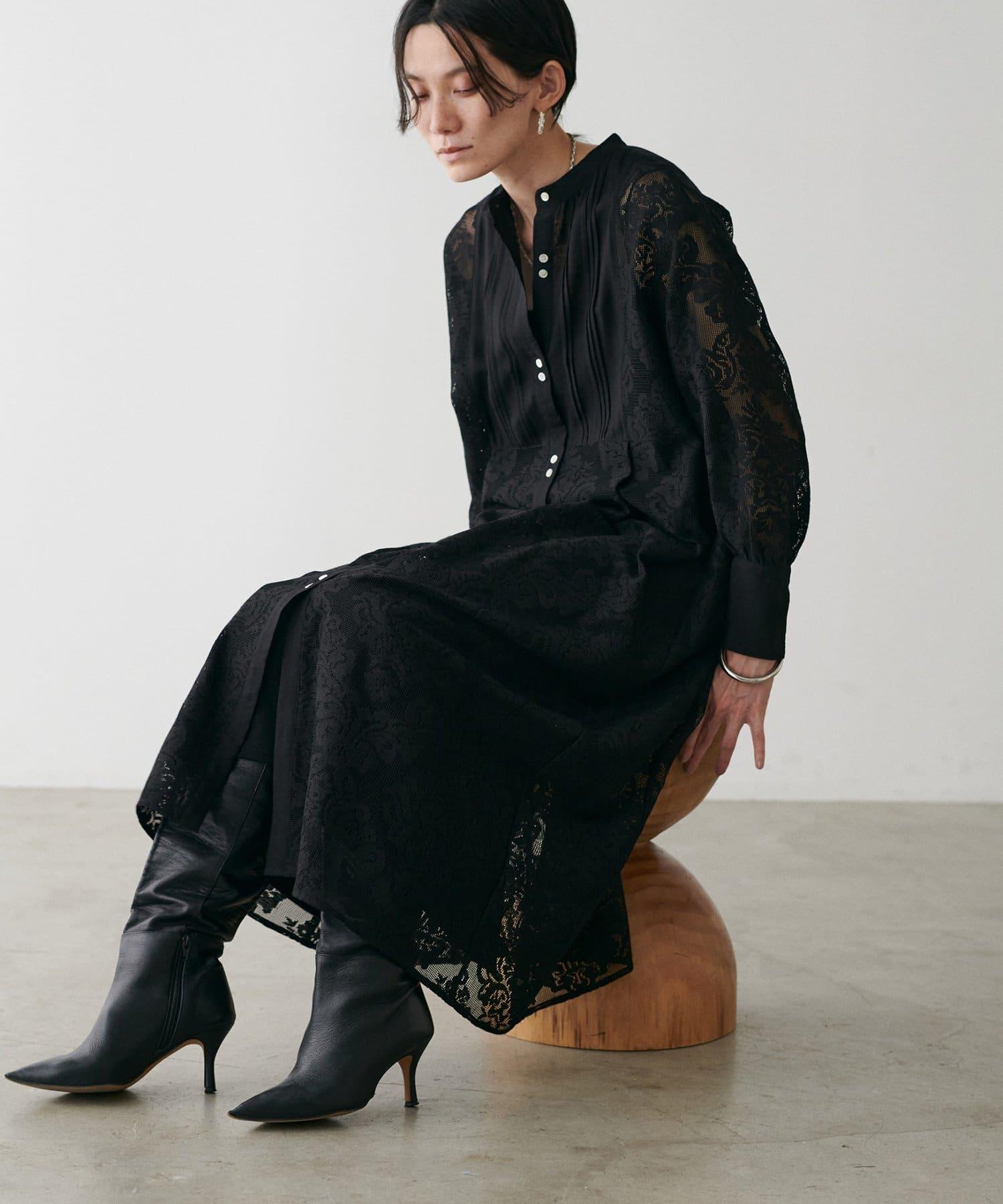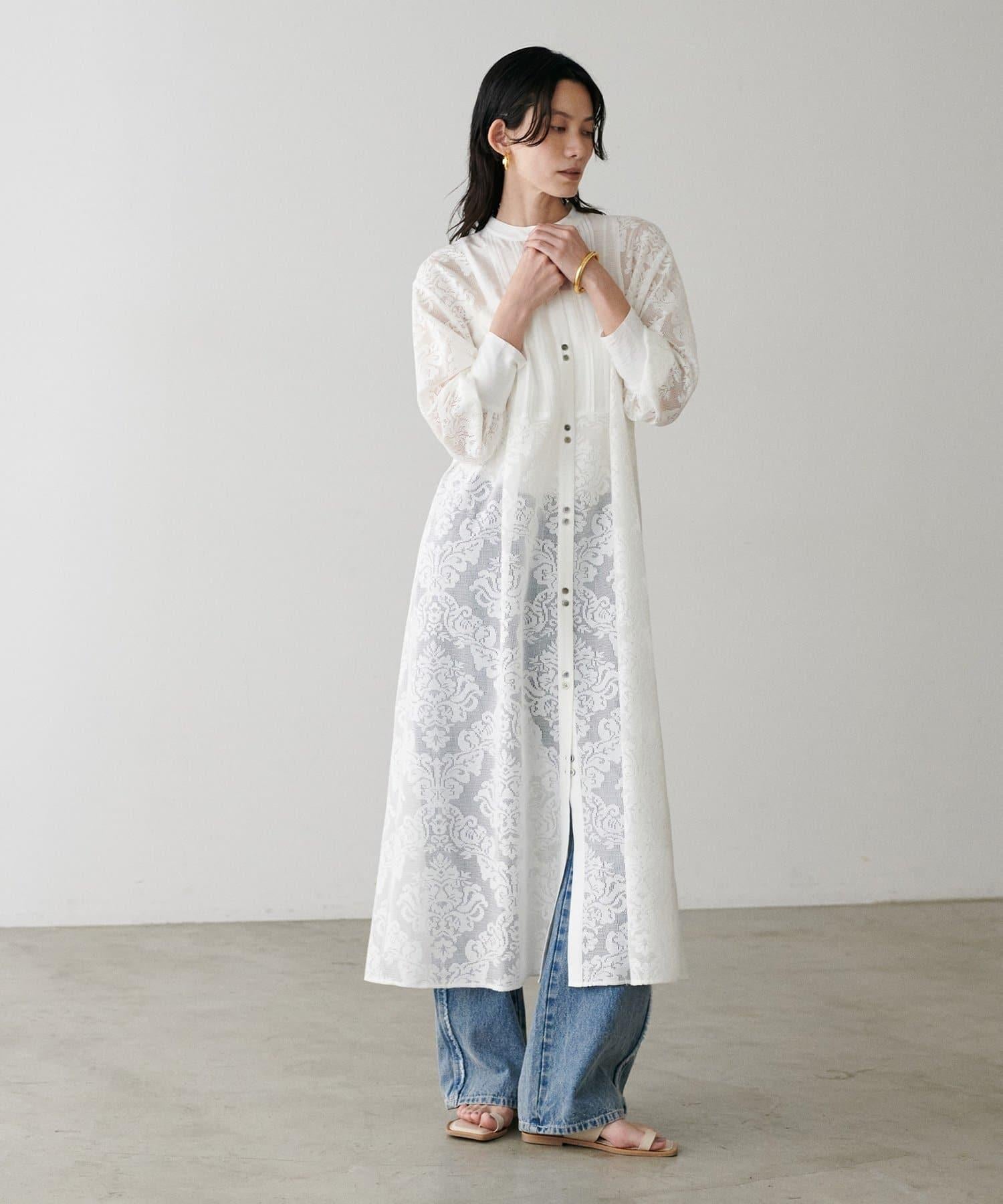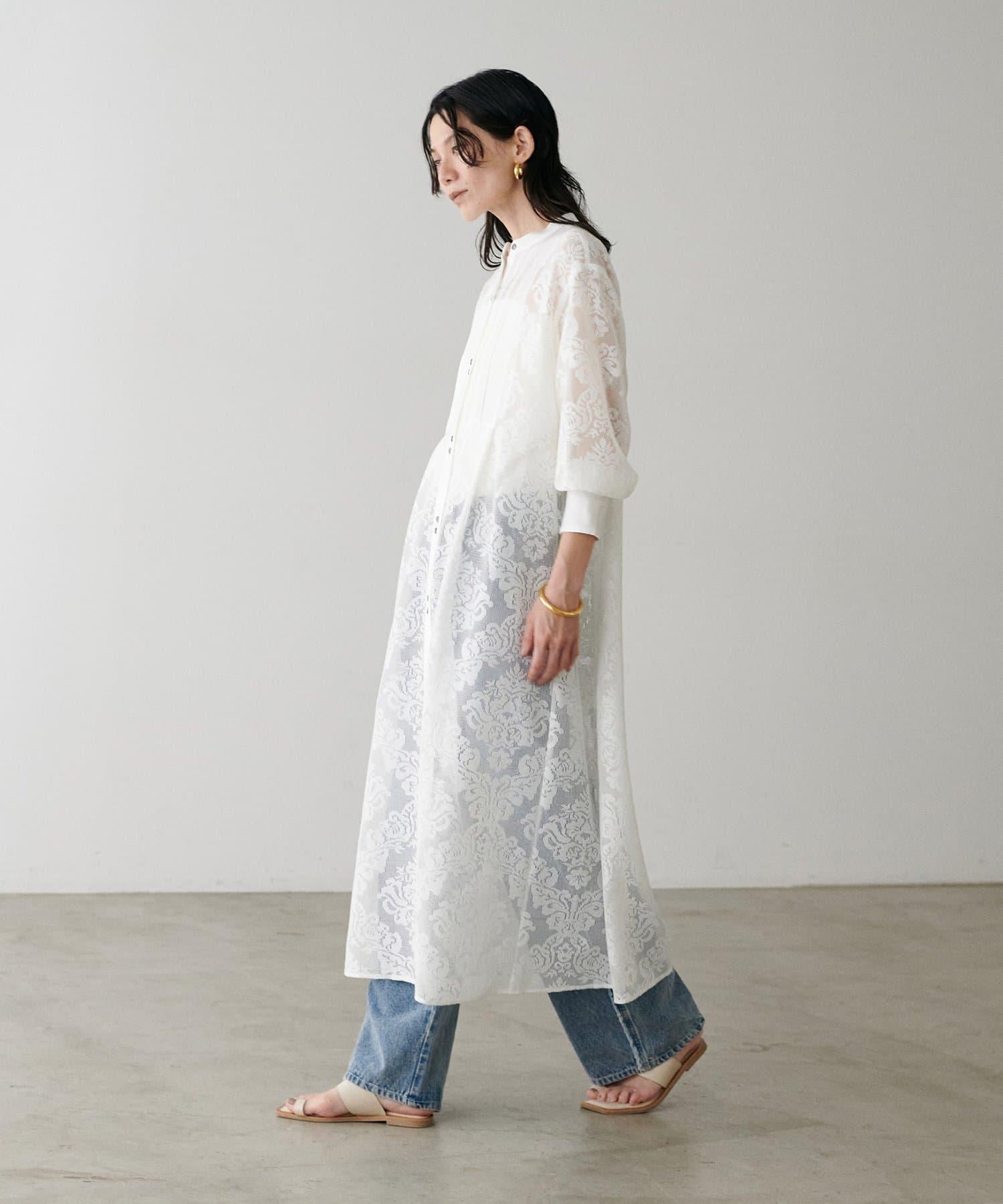 這款長裙採用鏤空設計,以精緻的全蕾絲剪裁而成。