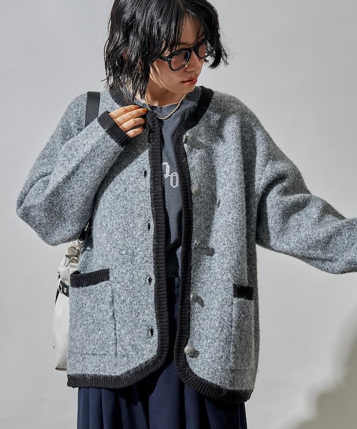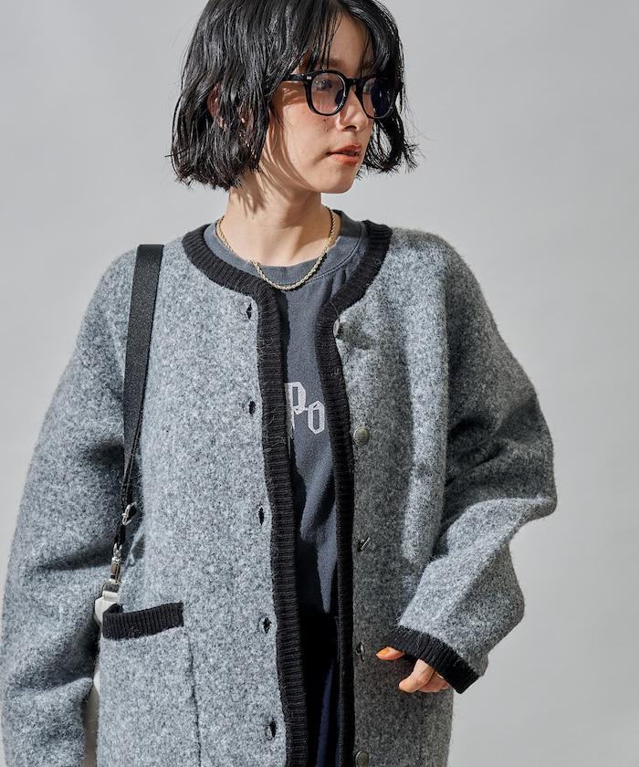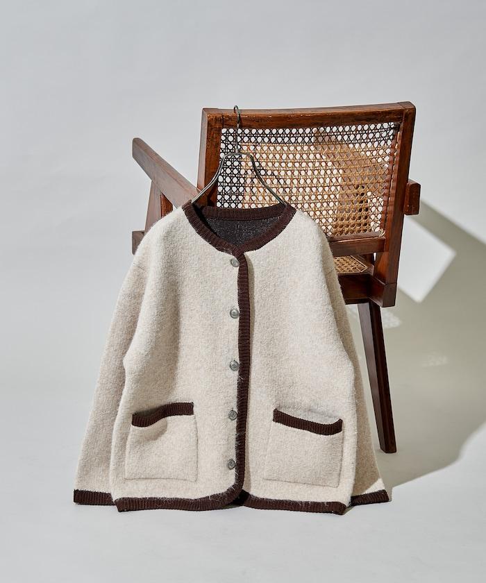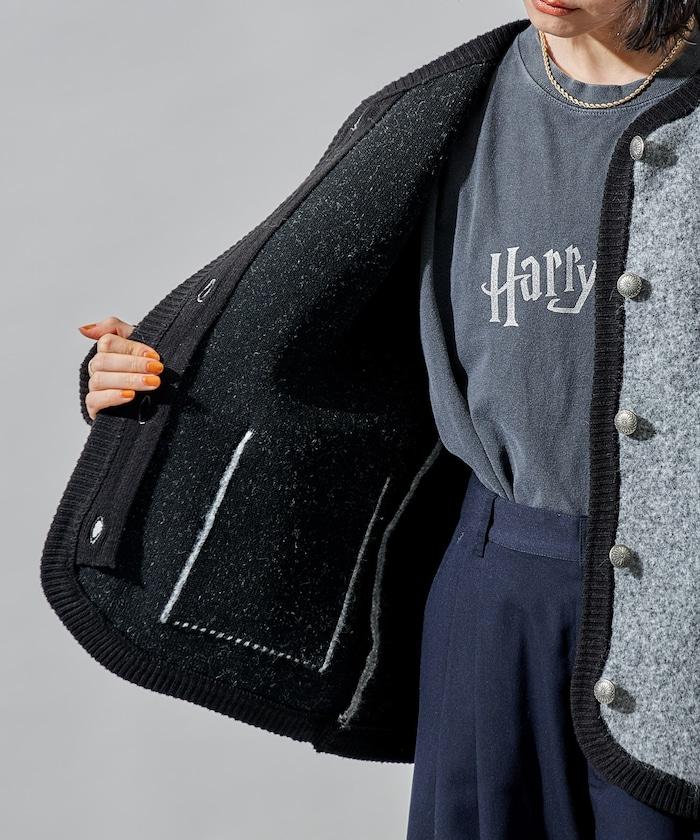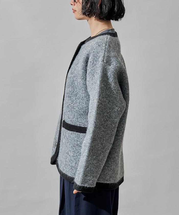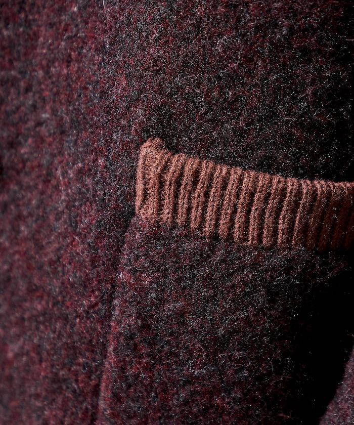 這款夾克採用雙面編織技術,前後兩面使用不同的紗線編織。