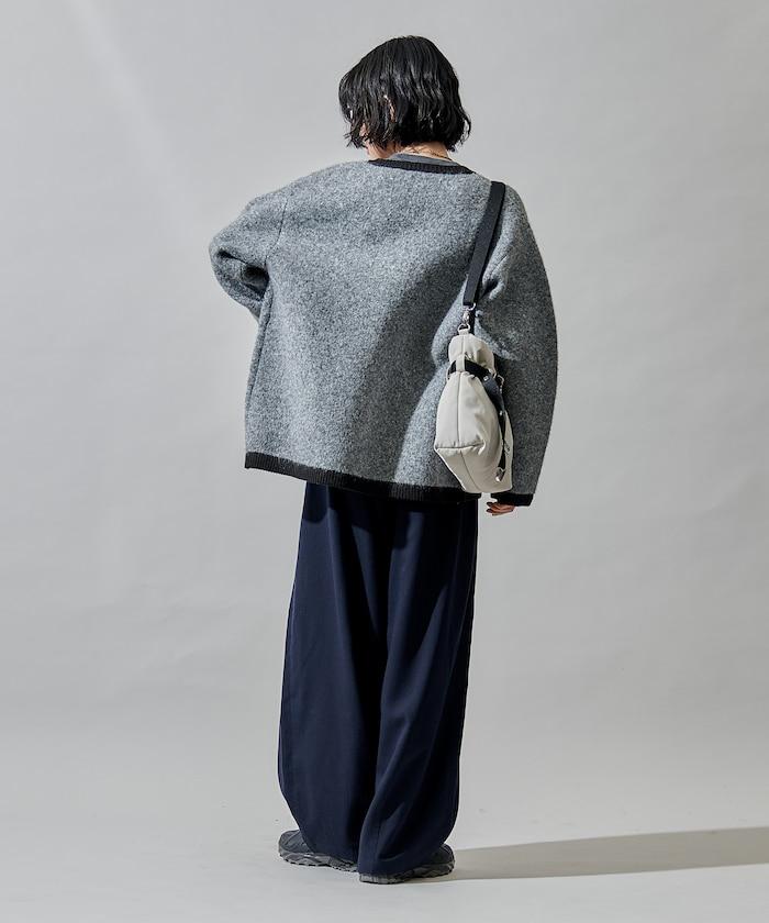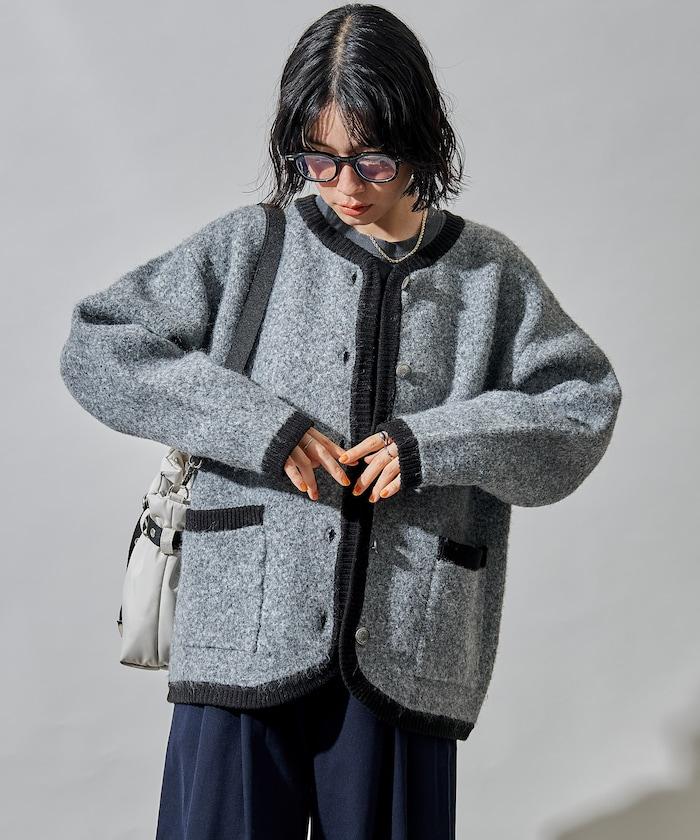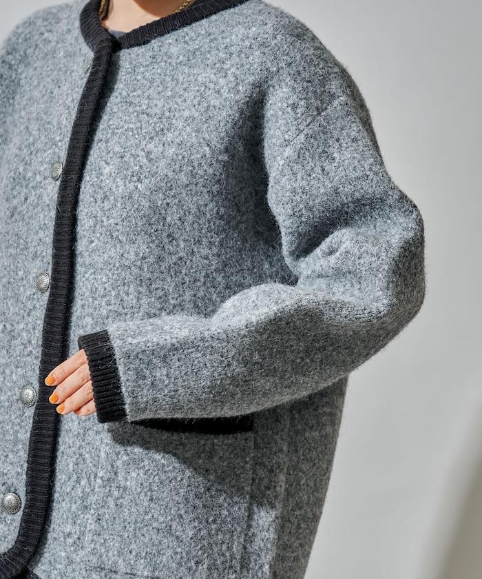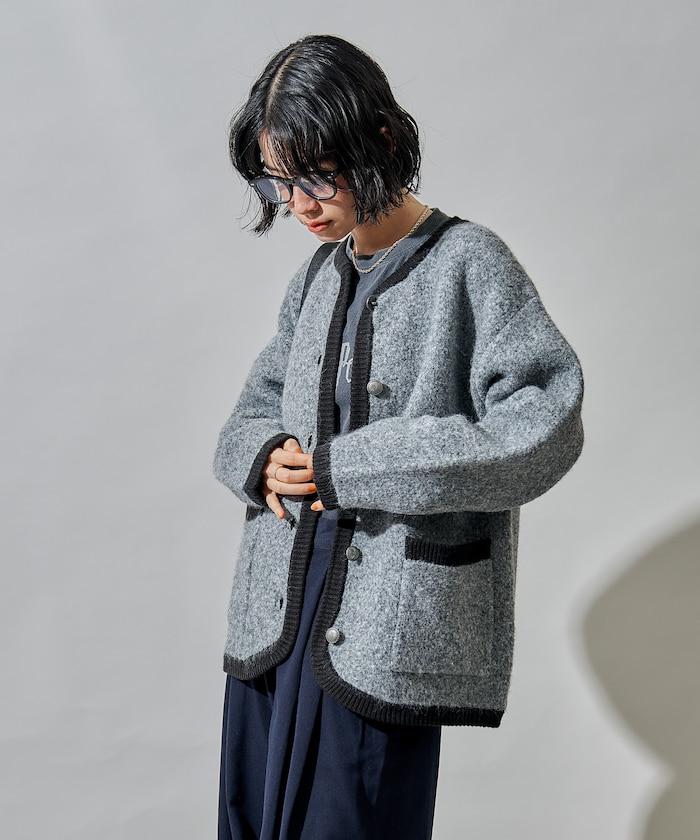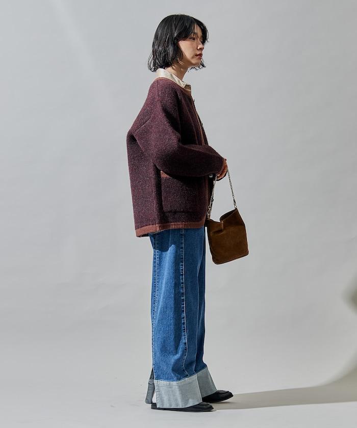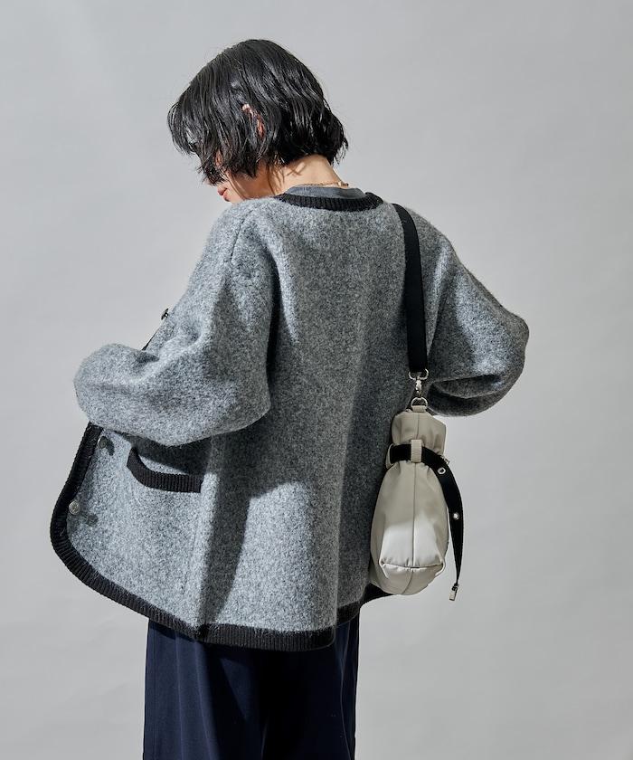 這款夾克採用雙面編織技術,前後兩面使用不同的紗線編織。