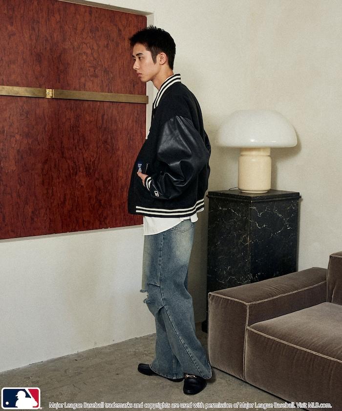 衣身和合成革袖子以不同材質的切換作為點綴。