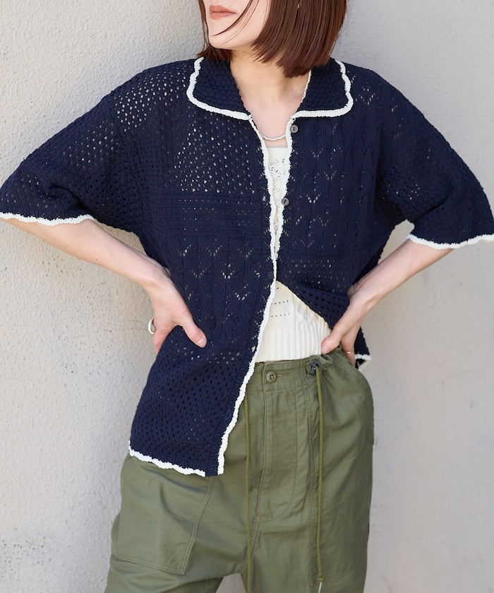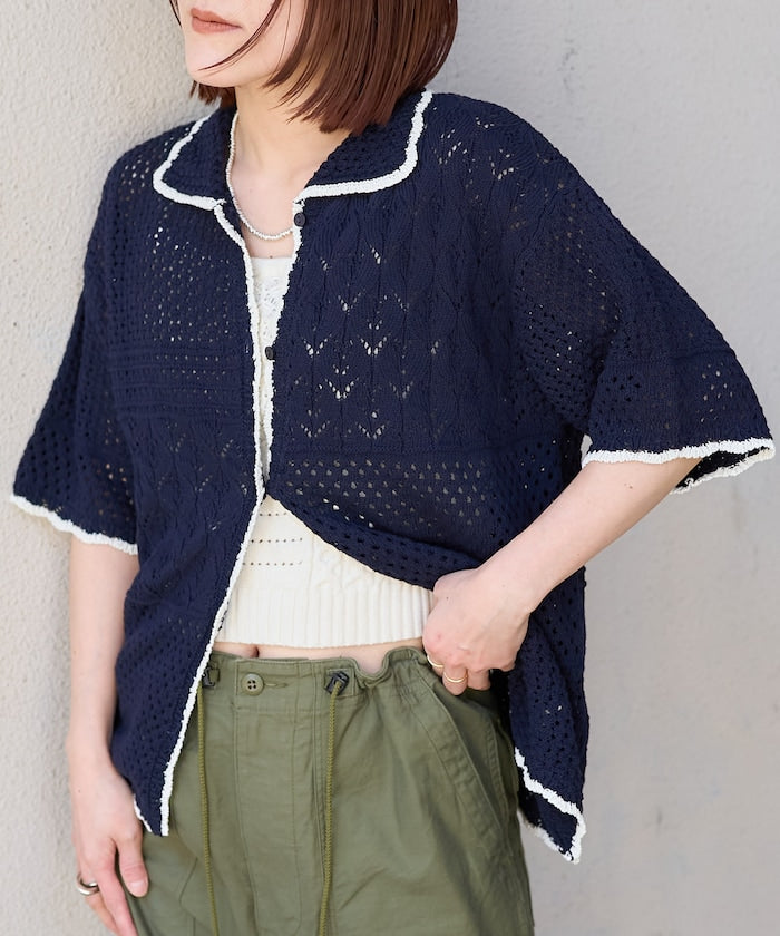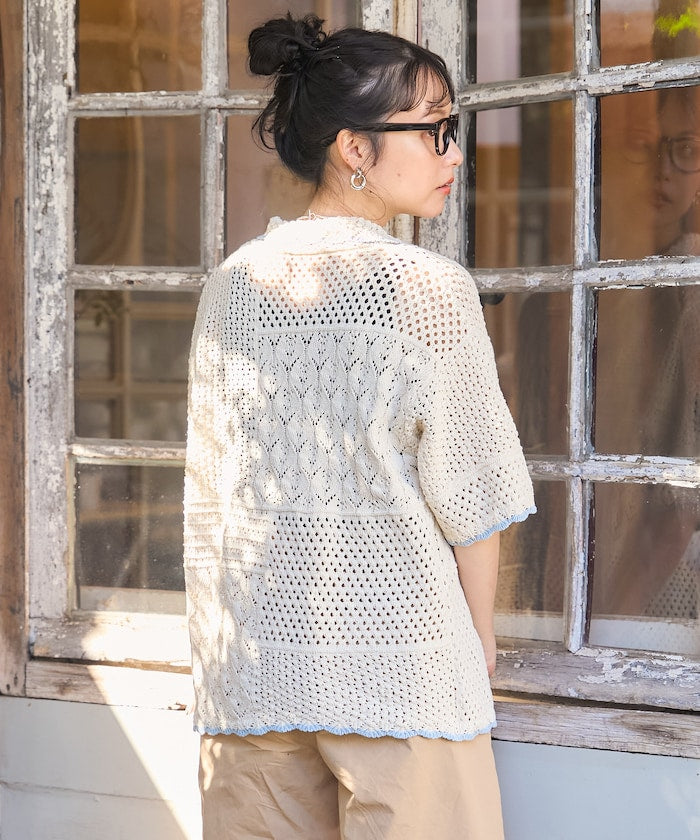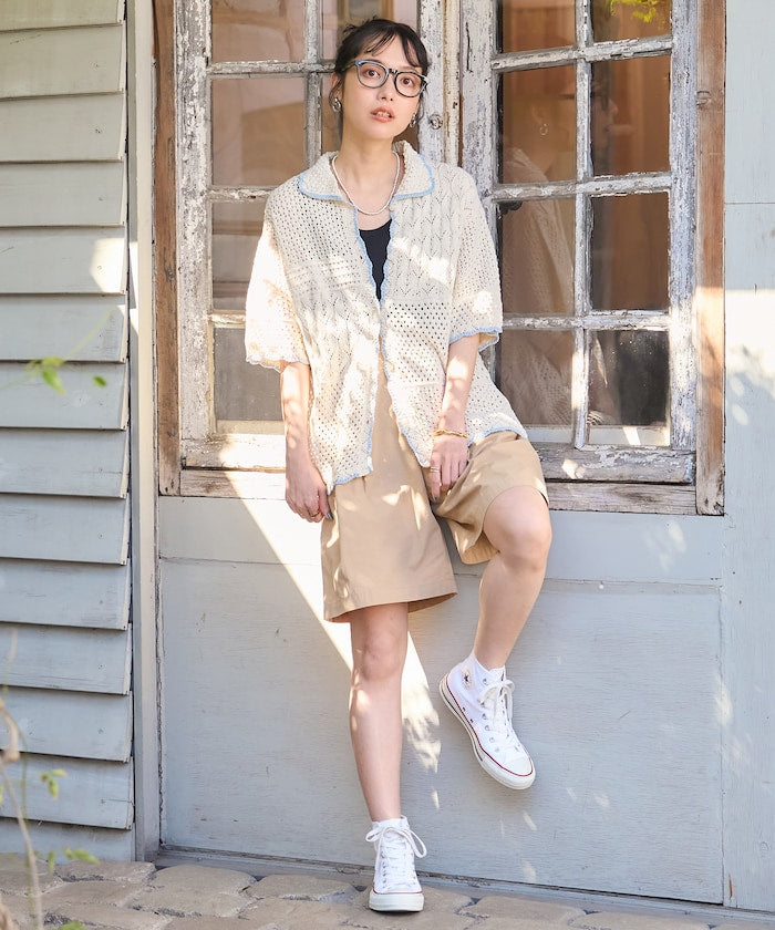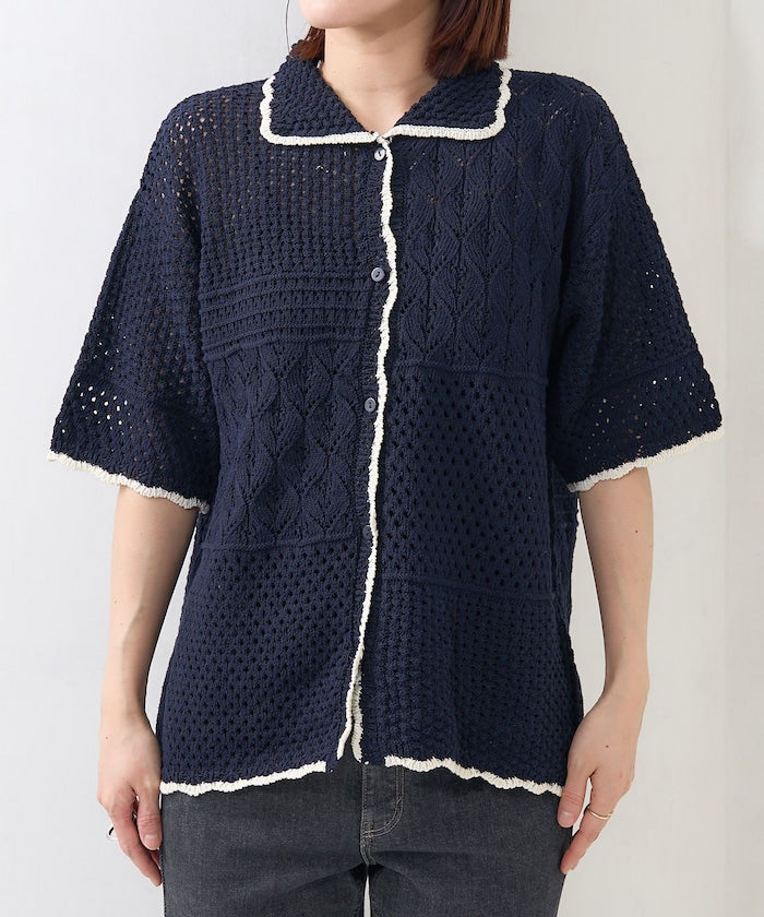 拼接鉤針風開襟襯衫