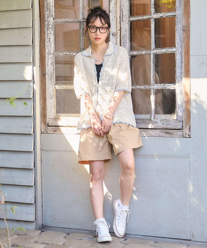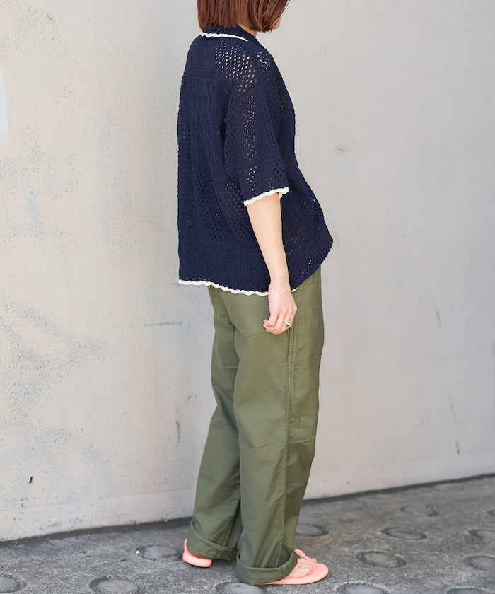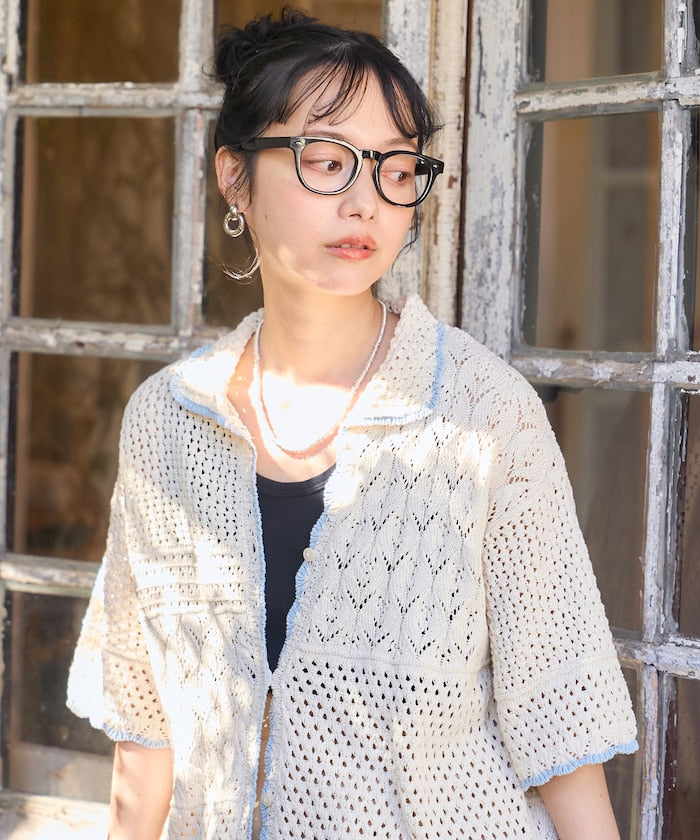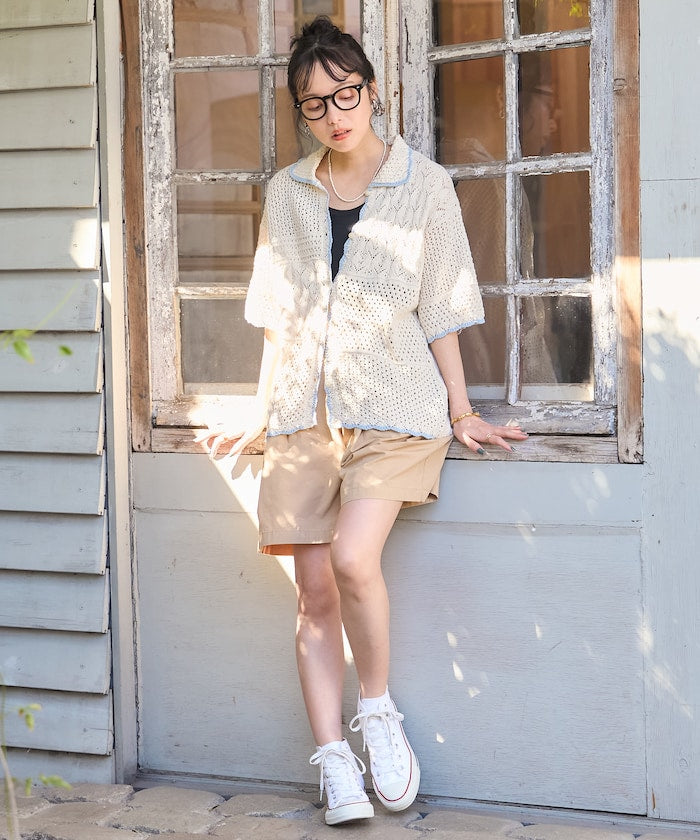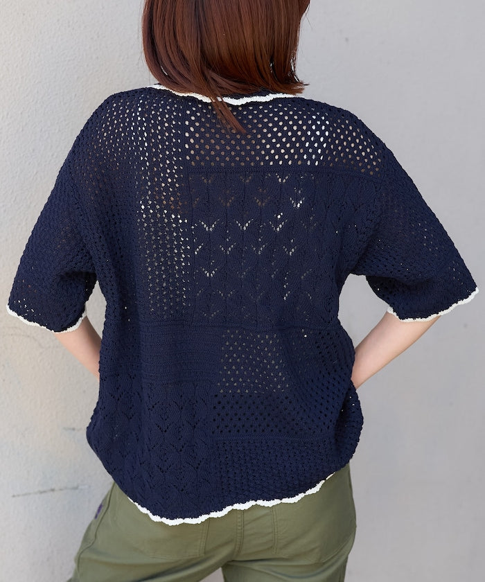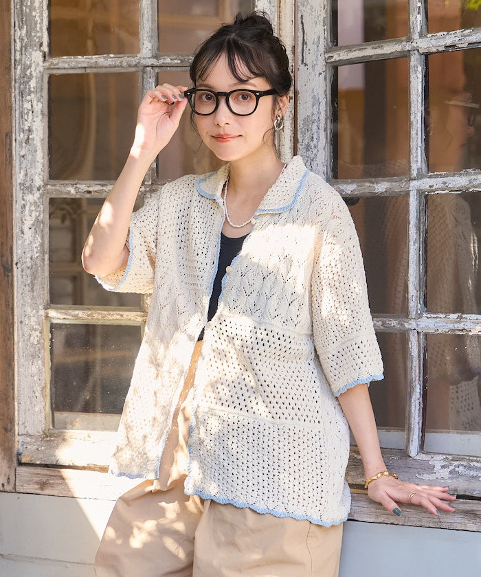 拼接鉤針風開襟襯衫