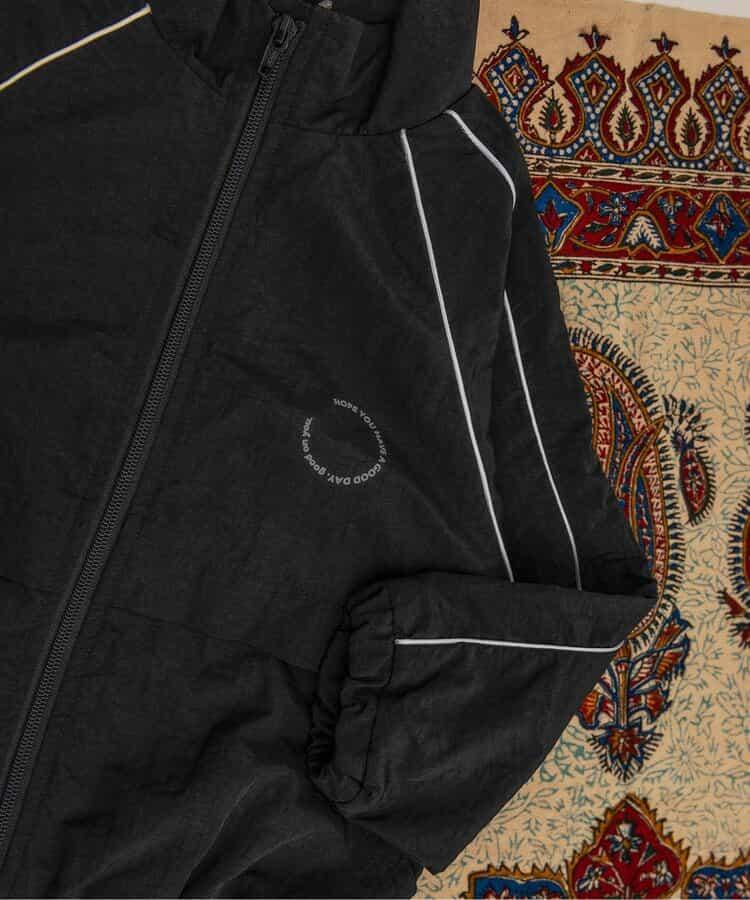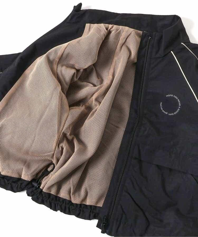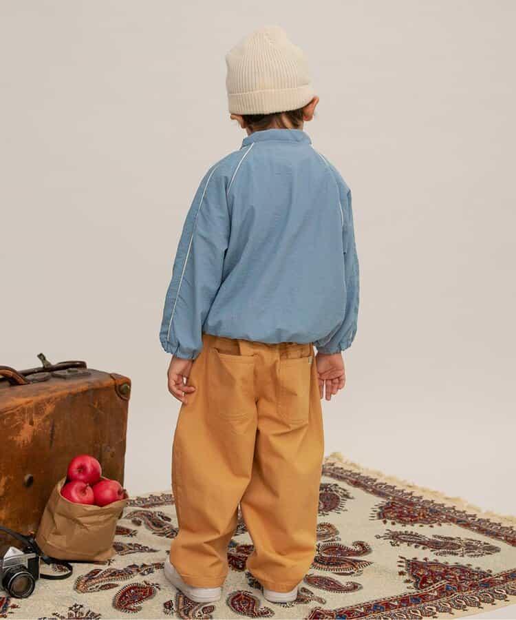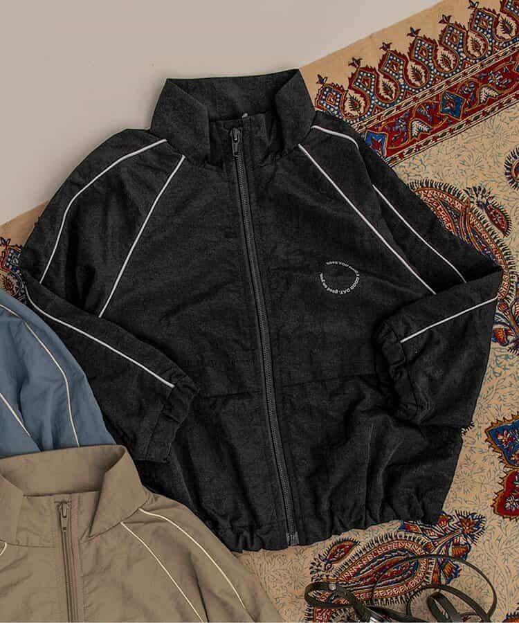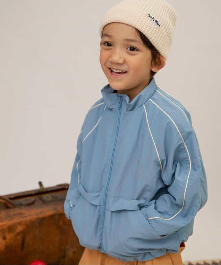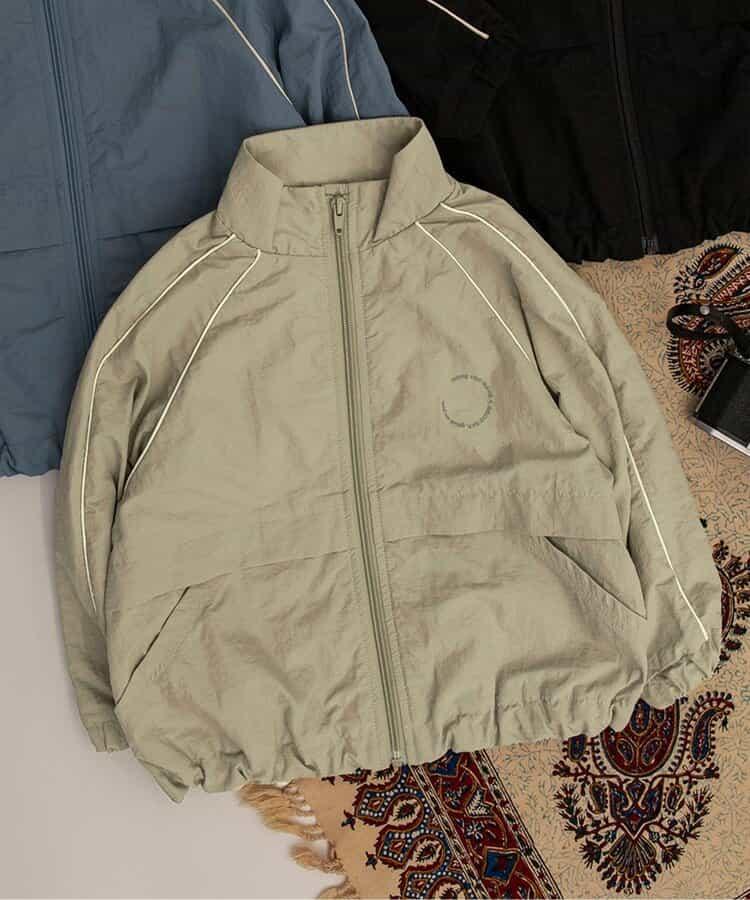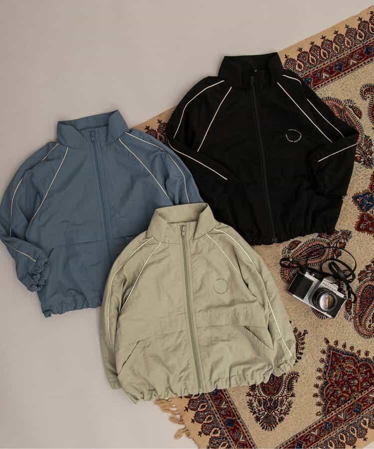 BREEZE 的開襟羊毛衫和揹帶褲 "Piping Windbreaker (set-up available) "因價格實惠、設計簡單易穿而備受歡迎!既能調節溫度,又能協調搭配,是非常方便的單品。