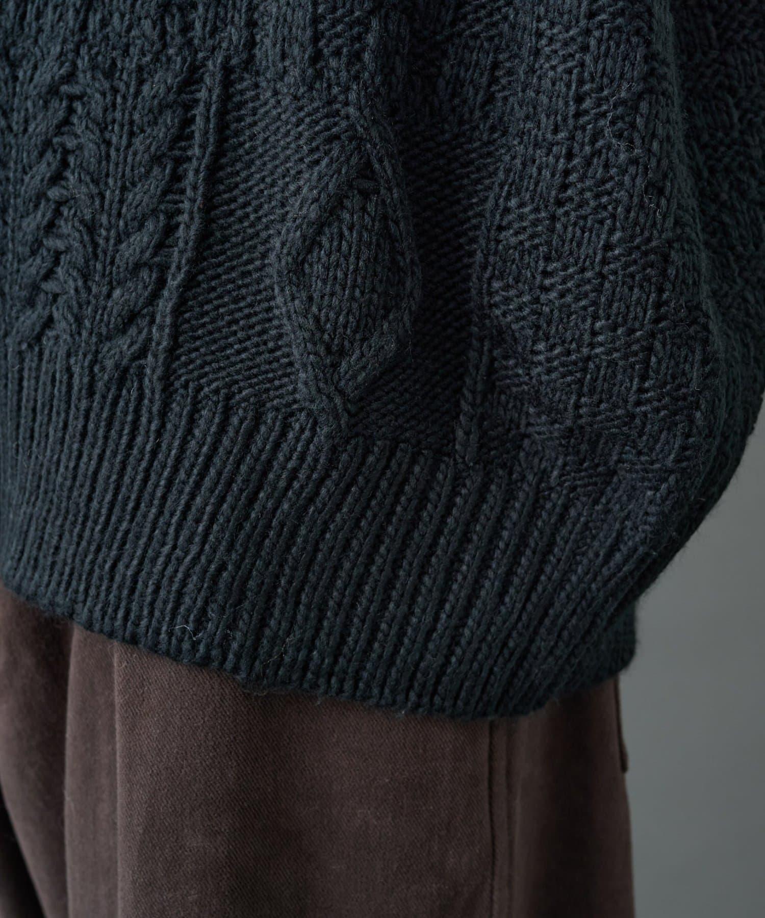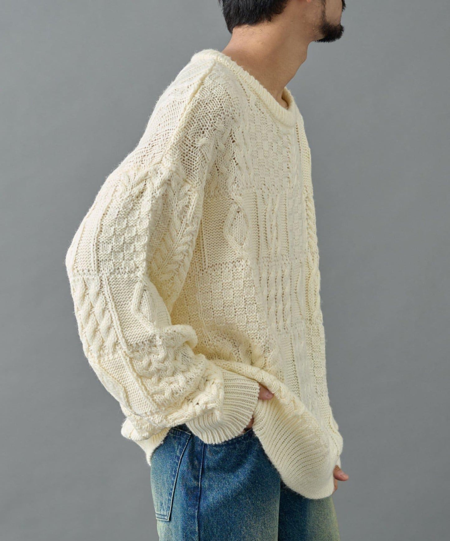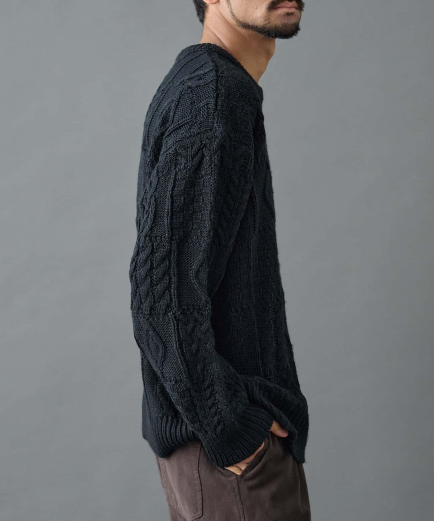傳統電纜編織的溫暖感與板塊切換的個性相結合,打造出一款簡約而充滿存在感的單品。