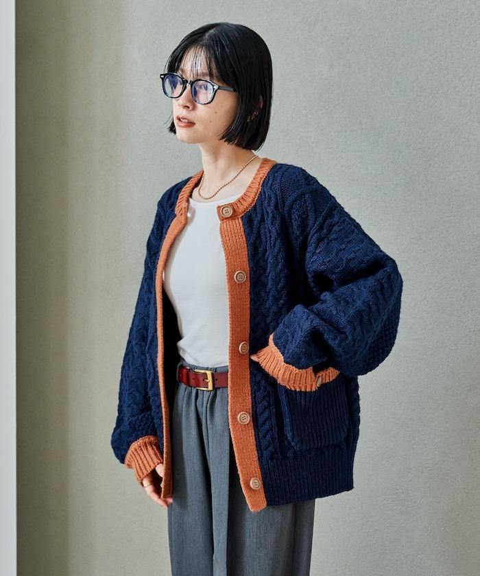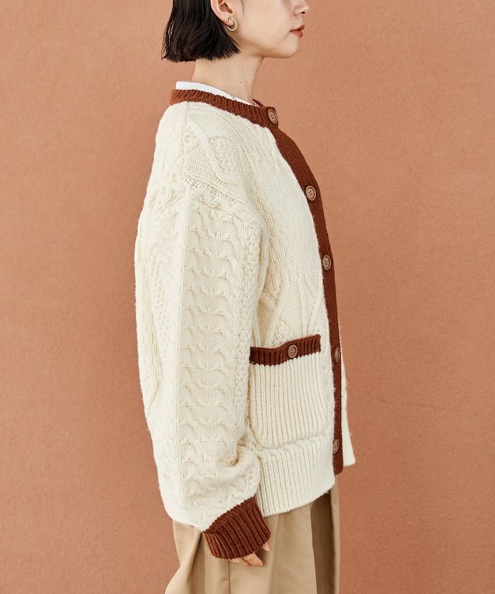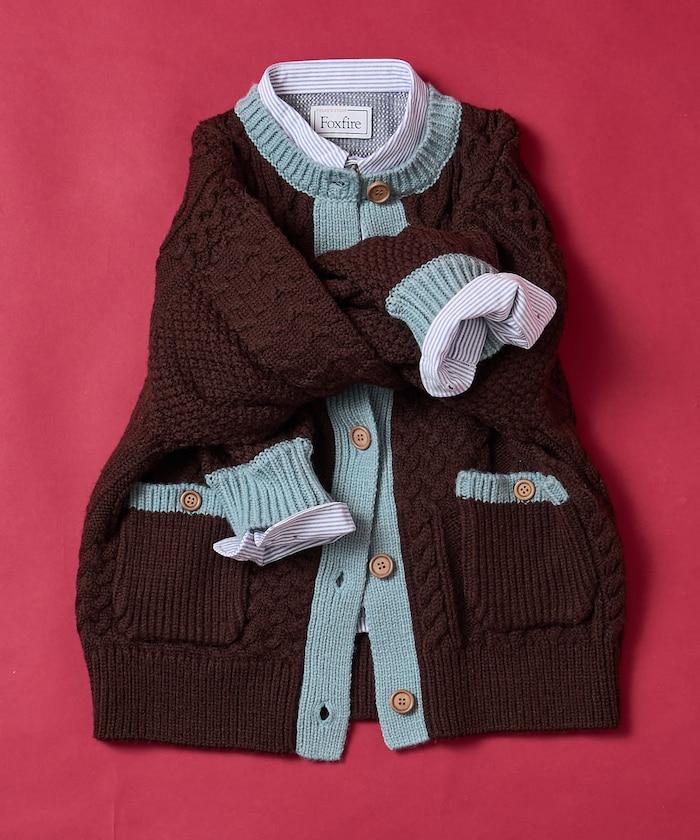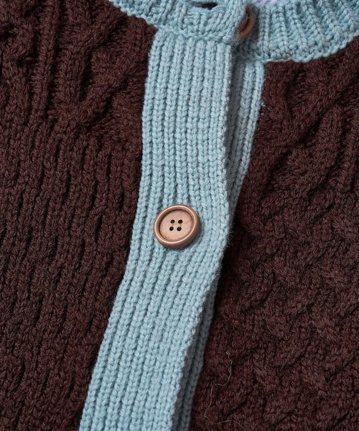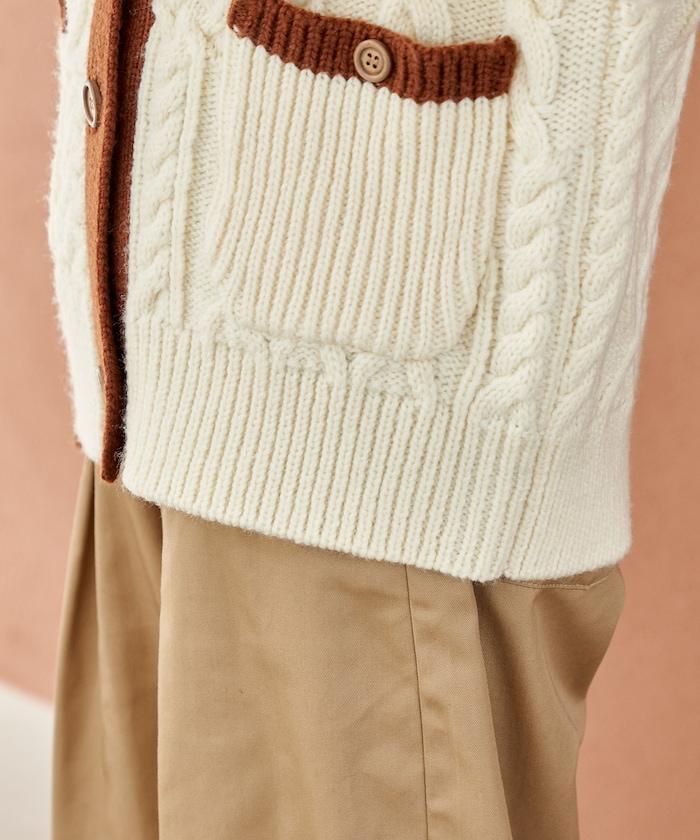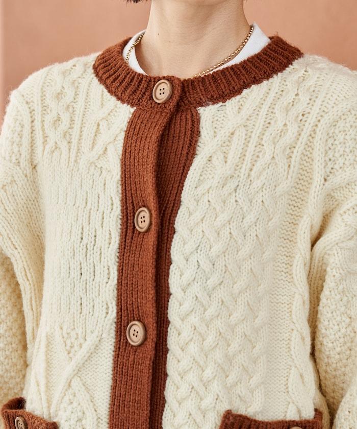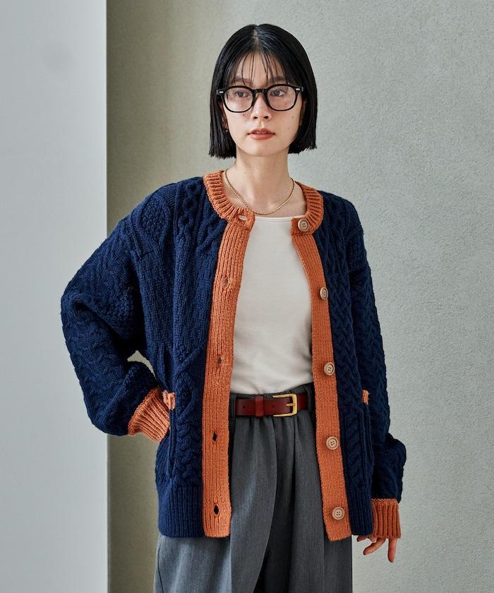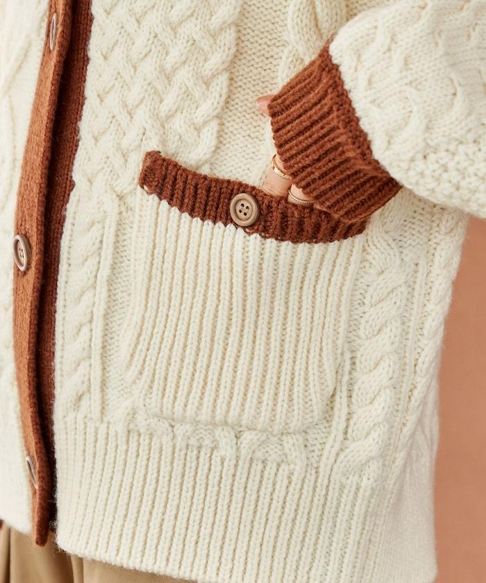 通過調換針織面料,以拼接方式完成的電纜針織衫,並添加了配色設計。
