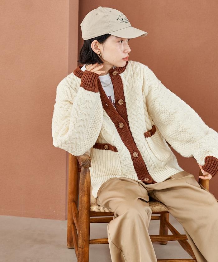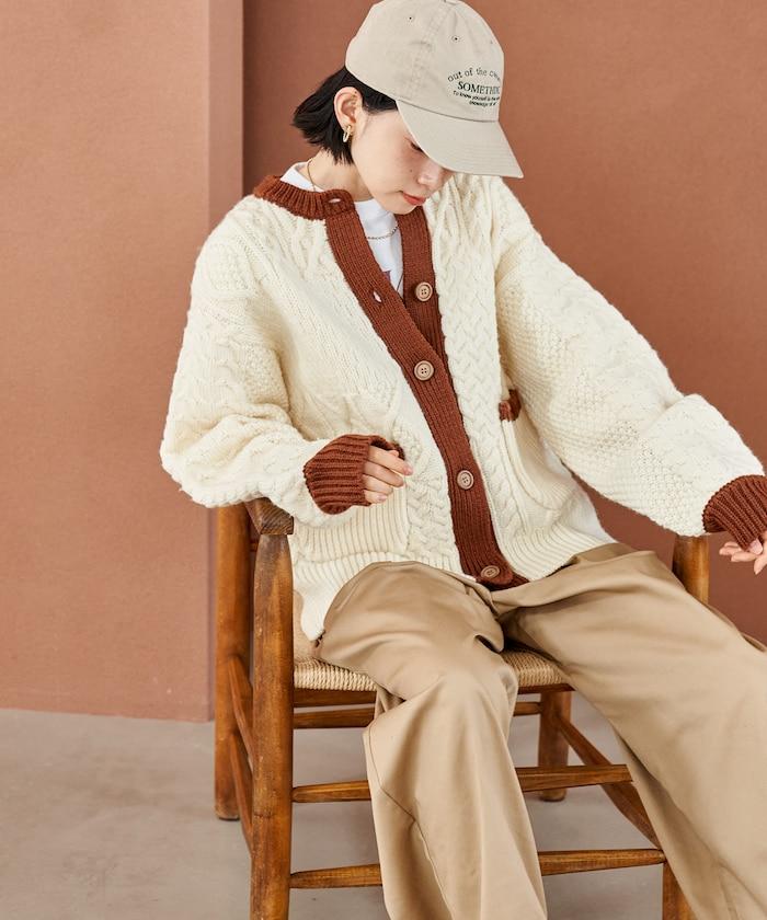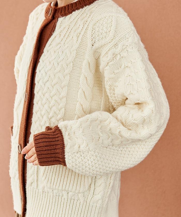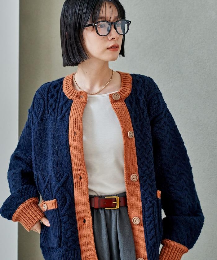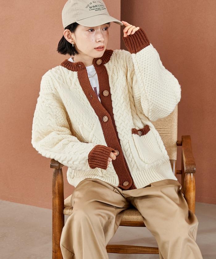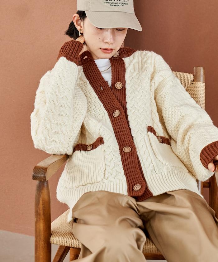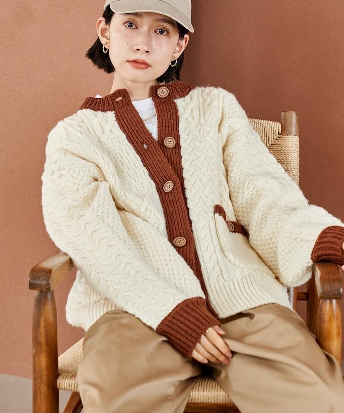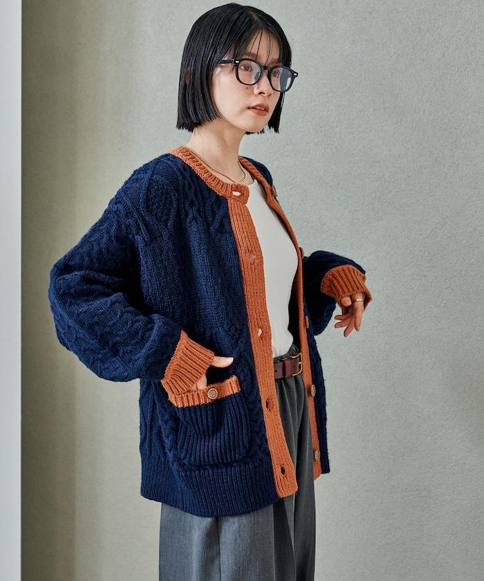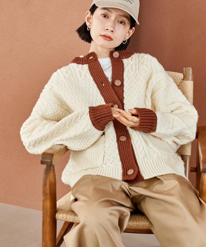 通過調換針織面料,以拼接方式完成的電纜針織衫,並添加了配色設計。