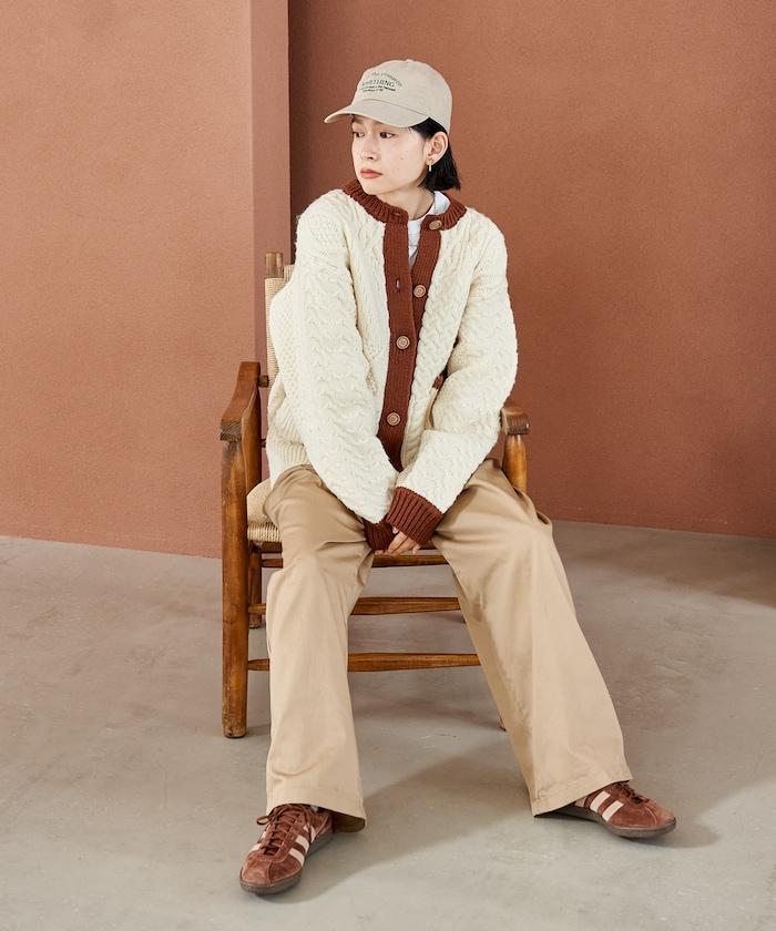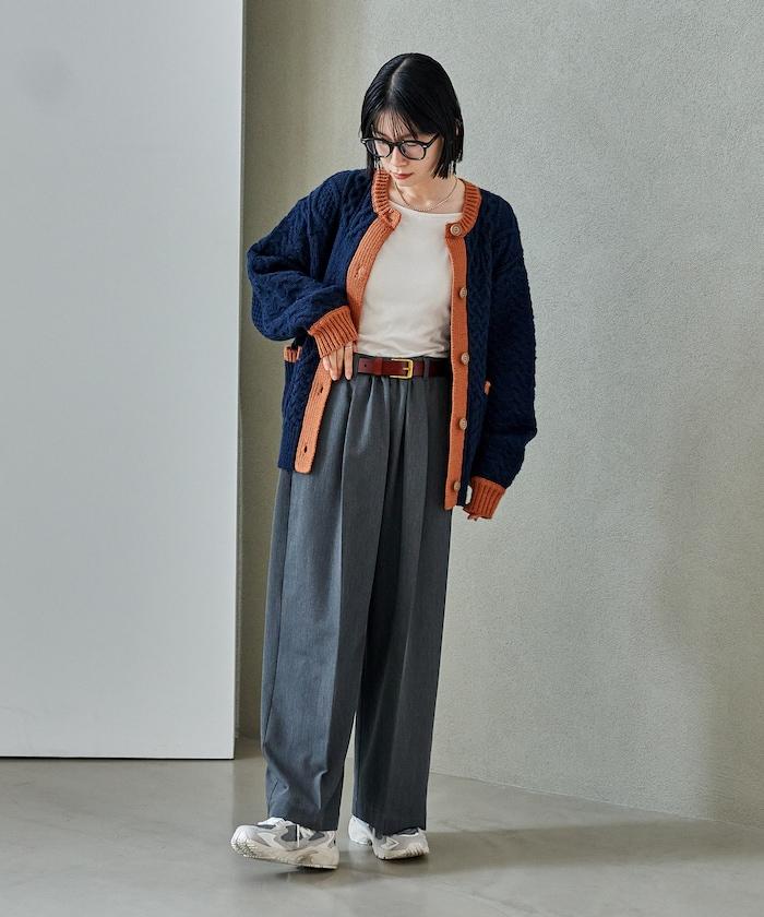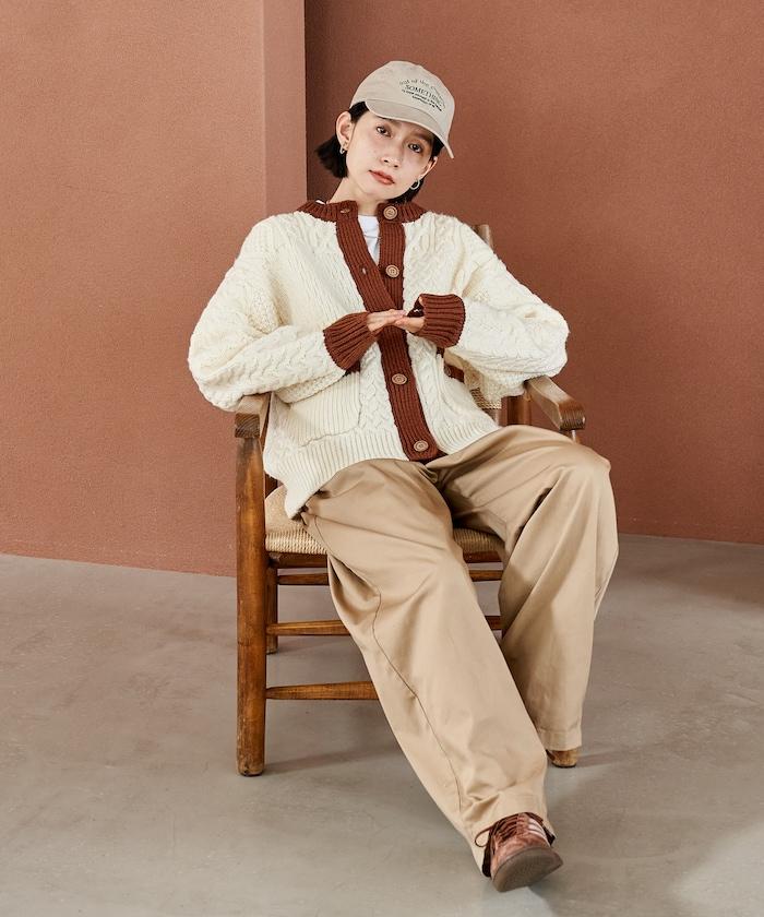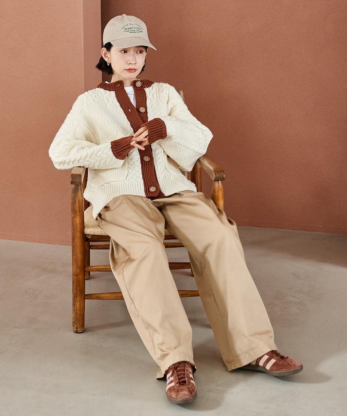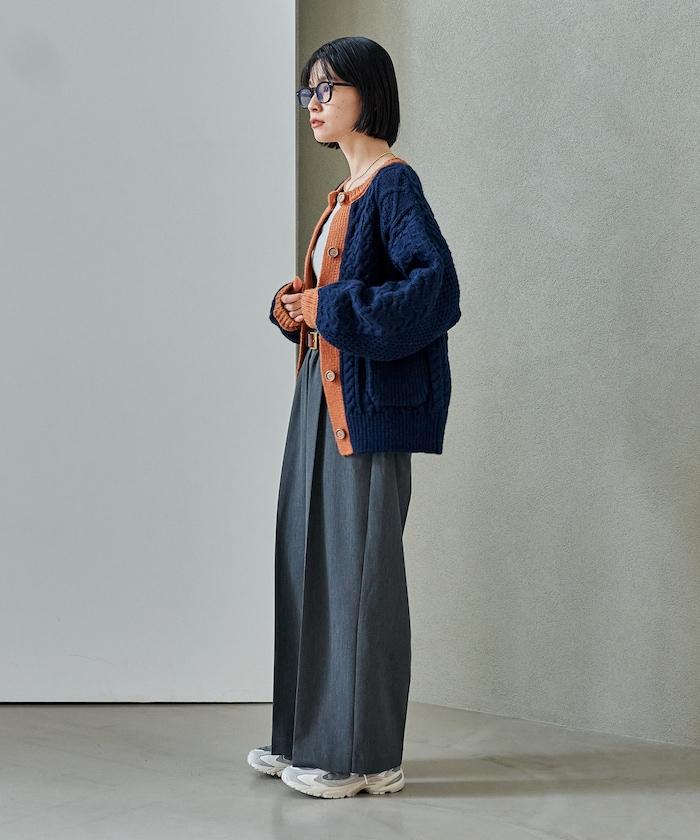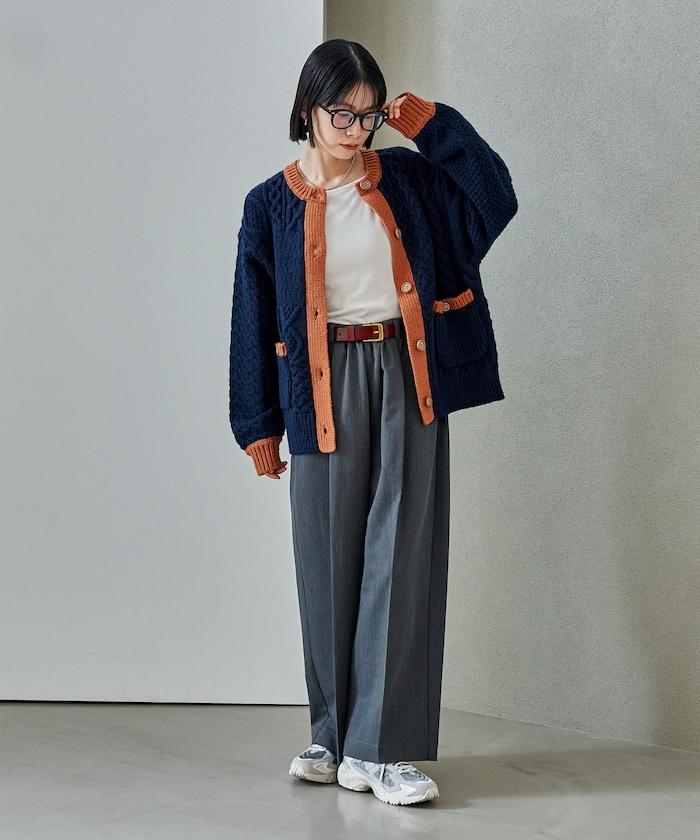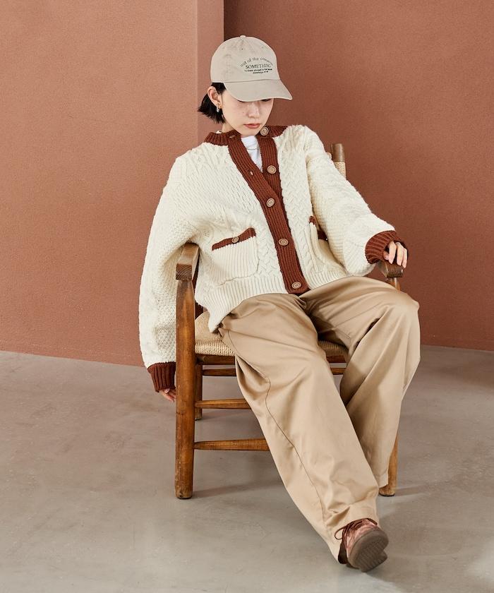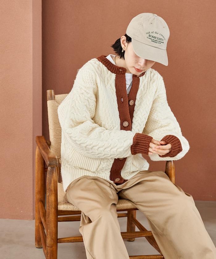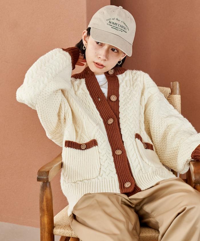 通過調換針織面料,以拼接方式完成的電纜針織衫,並添加了配色設計。
