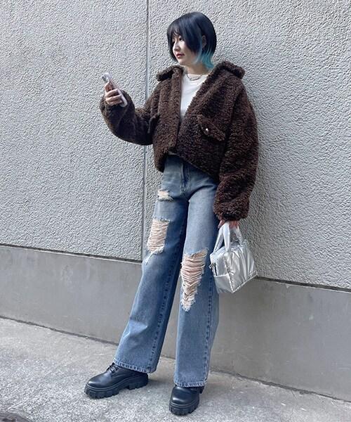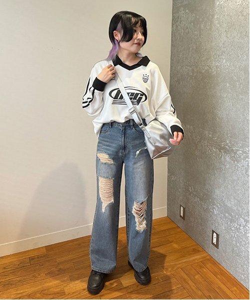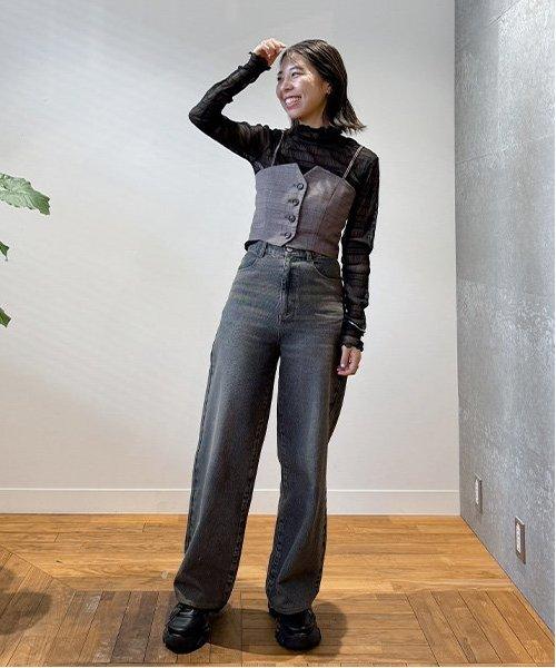 高腰設計使雙腿看起來更修長。有三種顏色可供選擇:標準色、損壞色和染色色。您可以選擇自己喜歡的設計來搭配服裝。