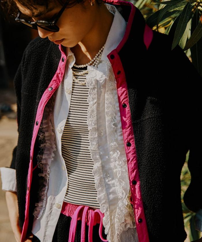 前襟採用按扣代替釦子,復古氣息撲面而來。