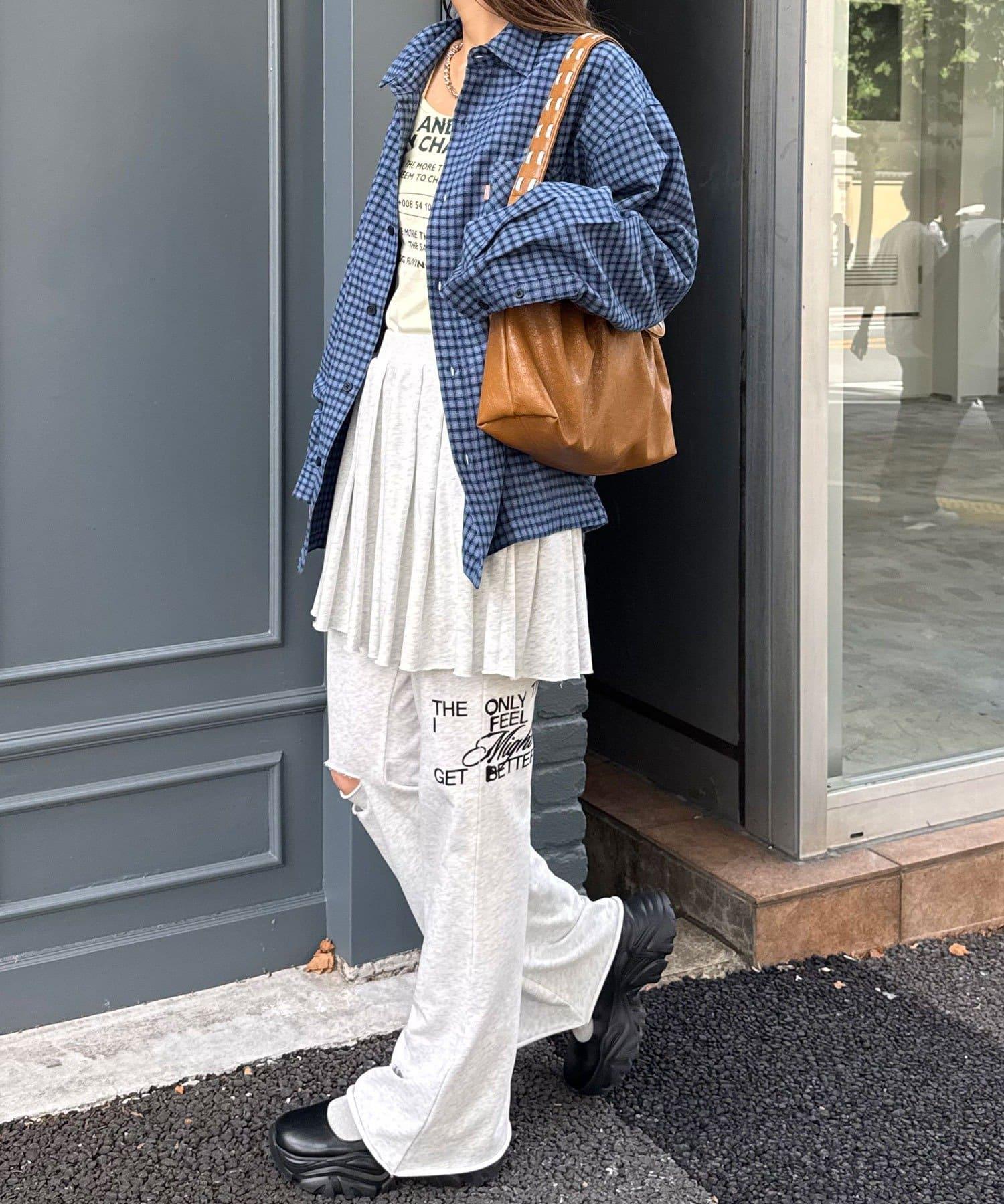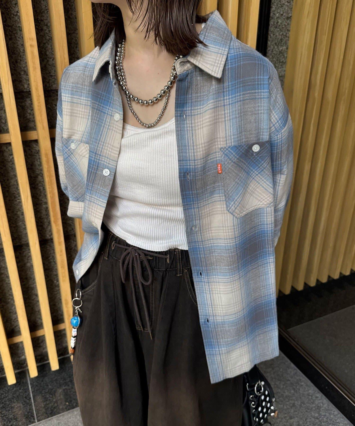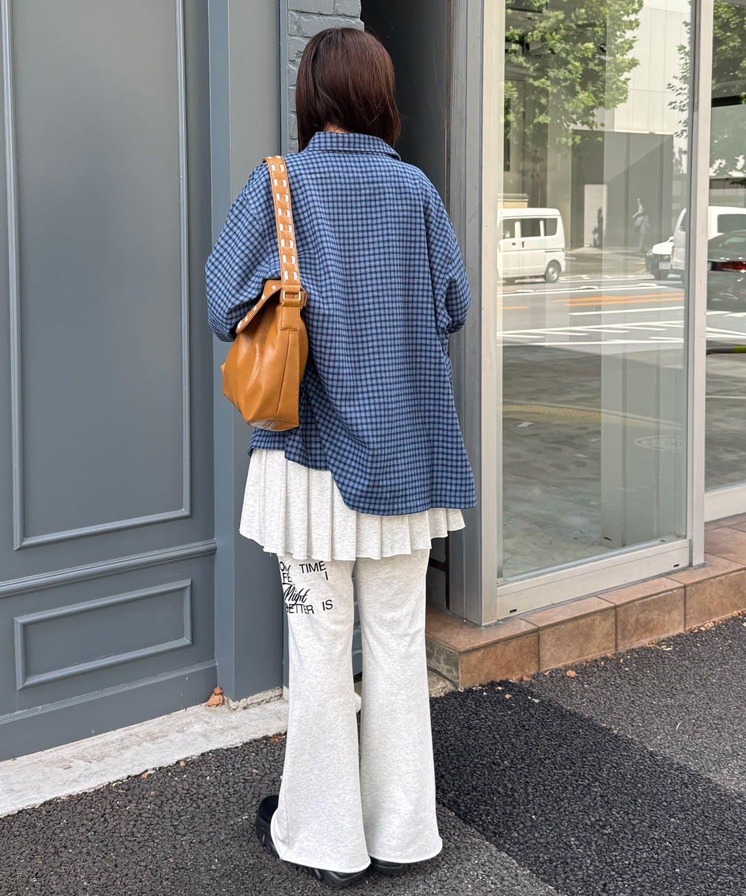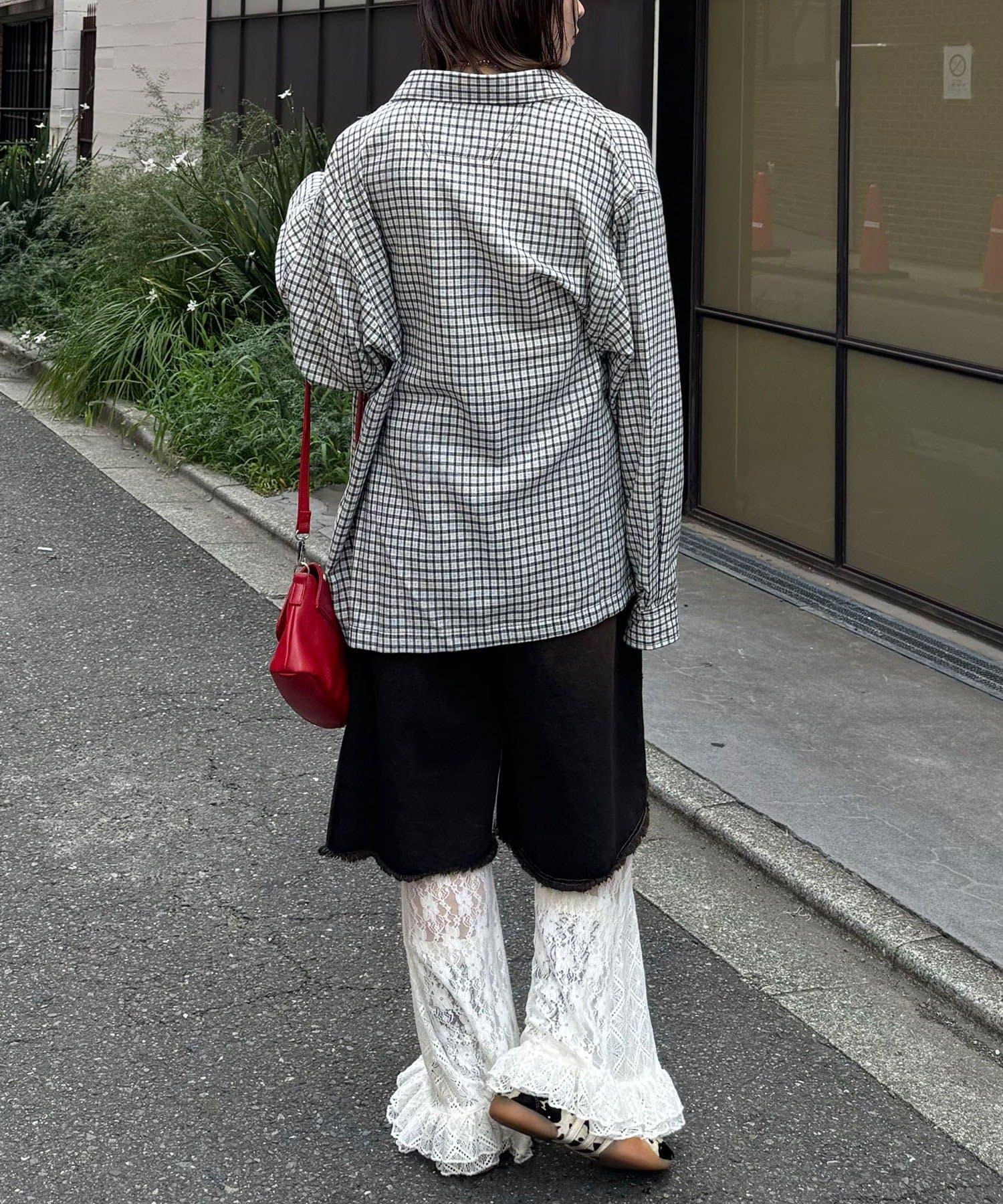 以休閒格紋圖案為基礎,採用適度寬鬆的剪裁,增添了輕鬆的感覺。