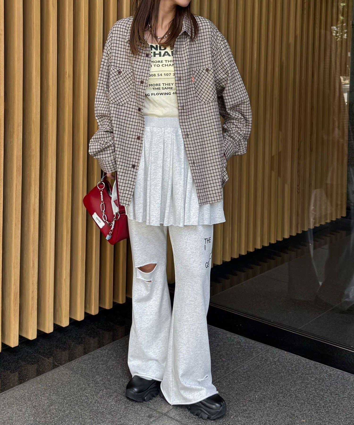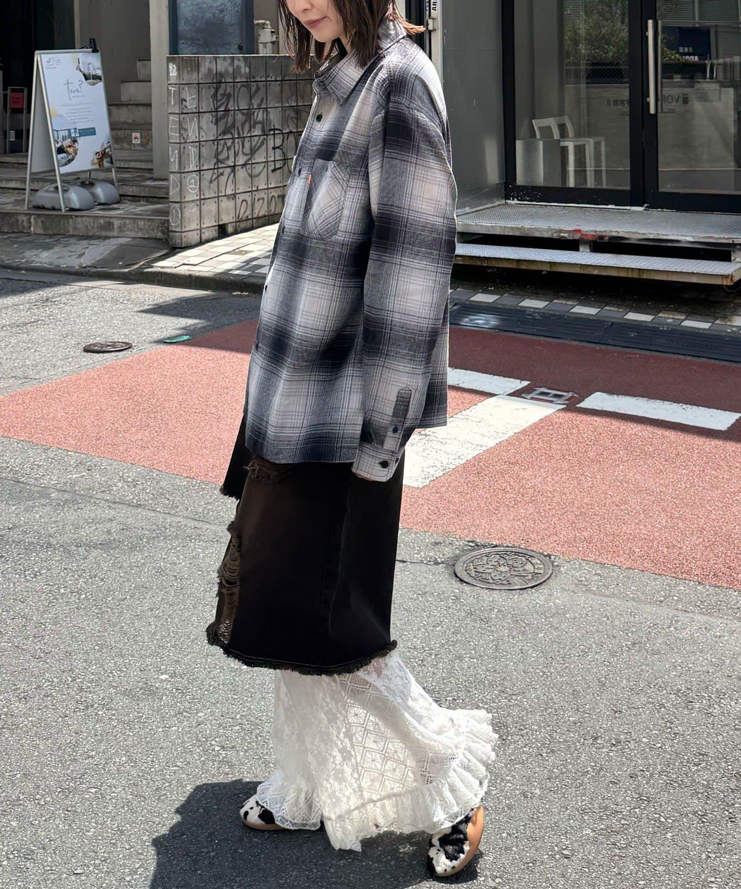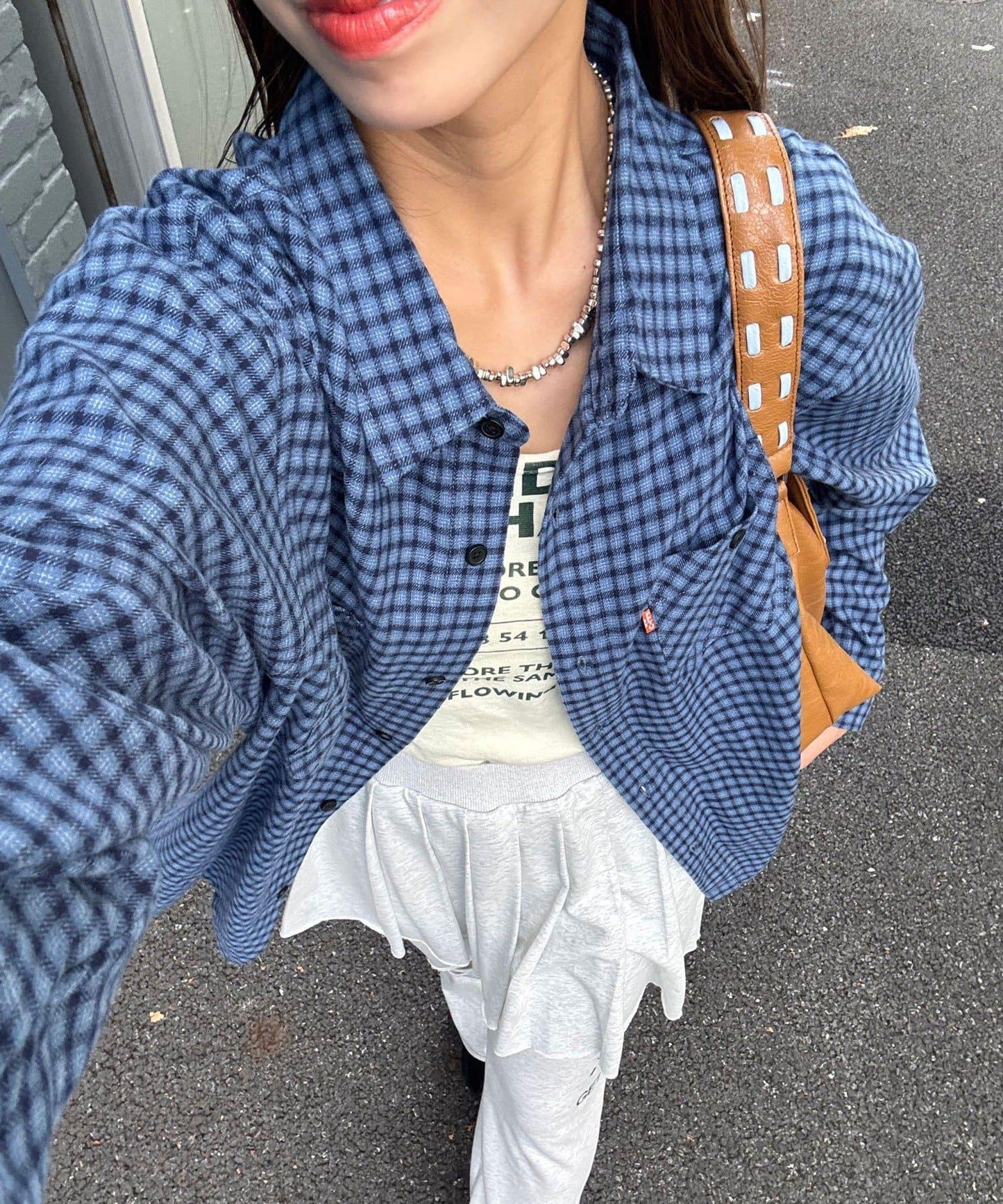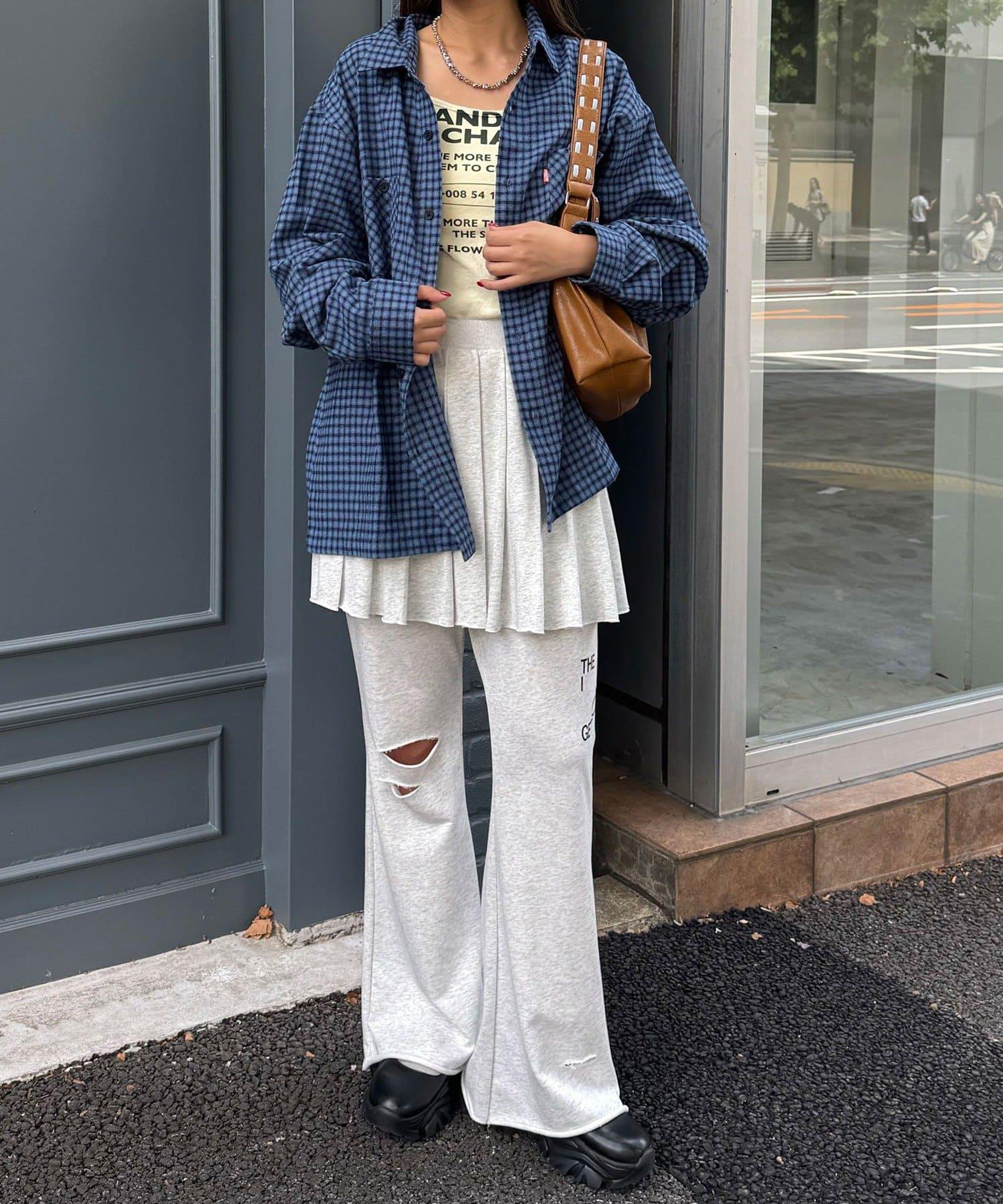 以休閒格紋圖案為基礎,採用適度寬鬆的剪裁,增添了輕鬆的感覺。