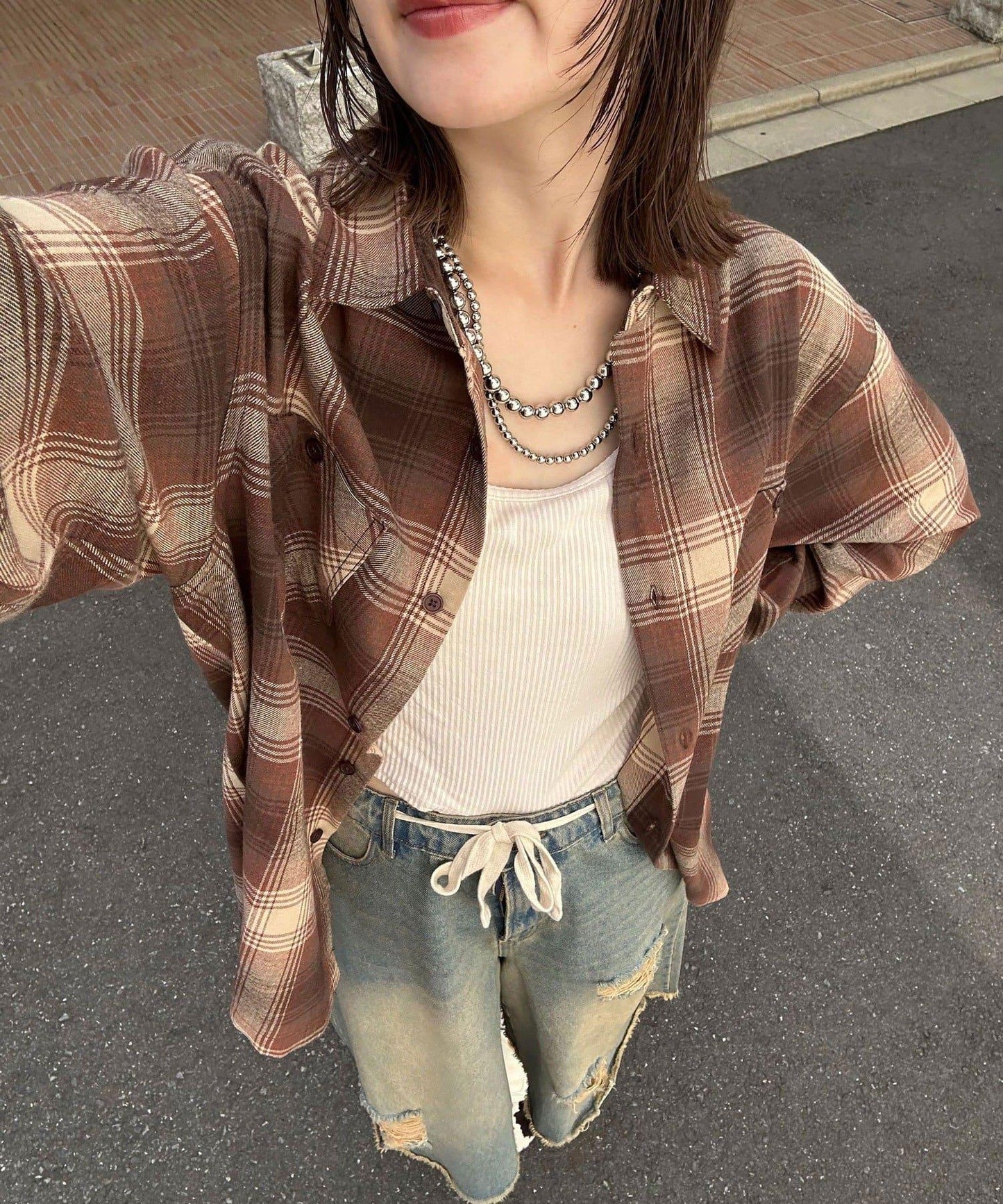 百搭格紋襯衫,可寬鬆編織