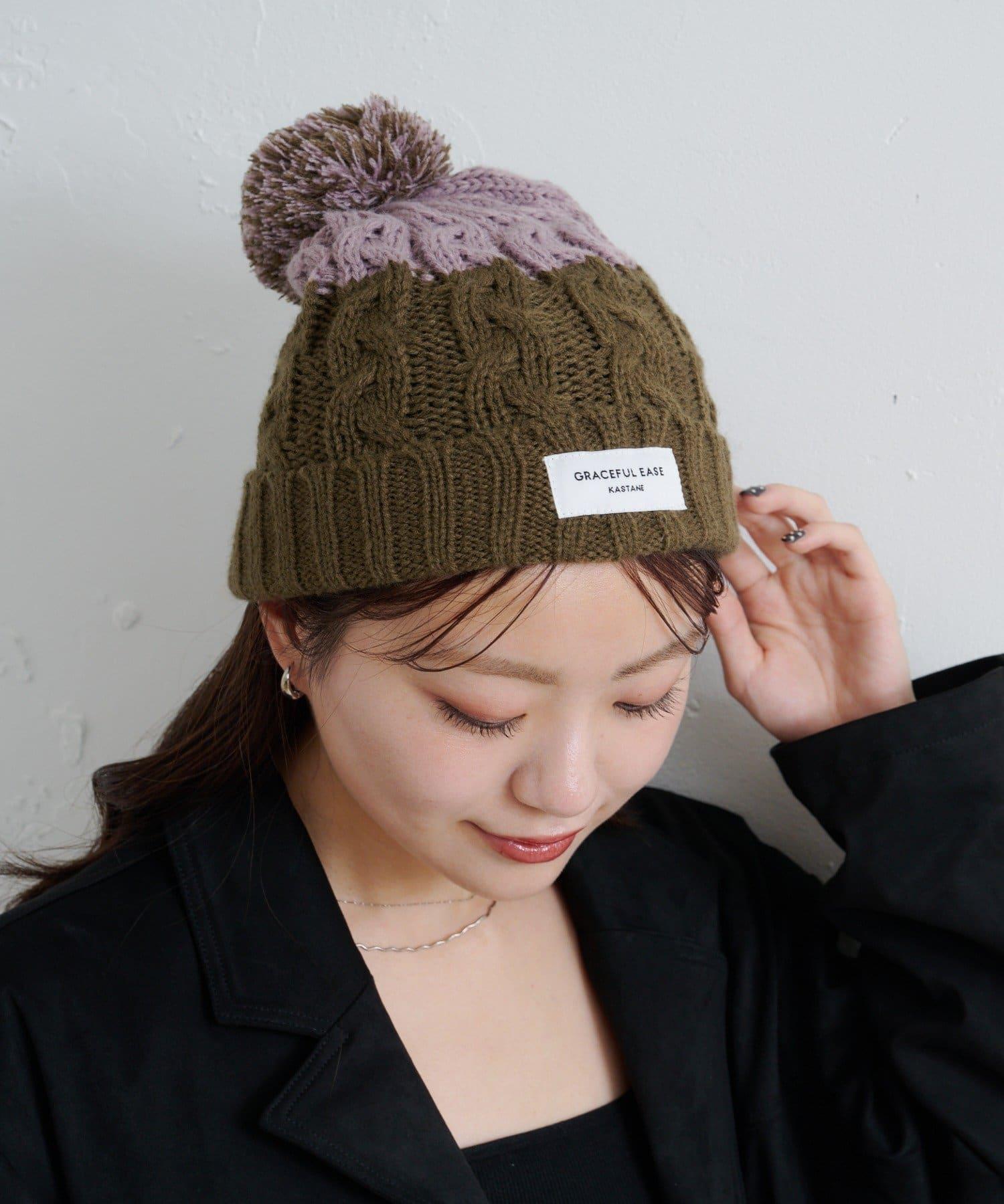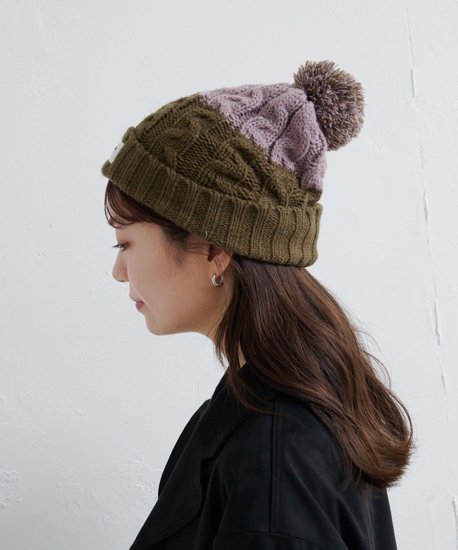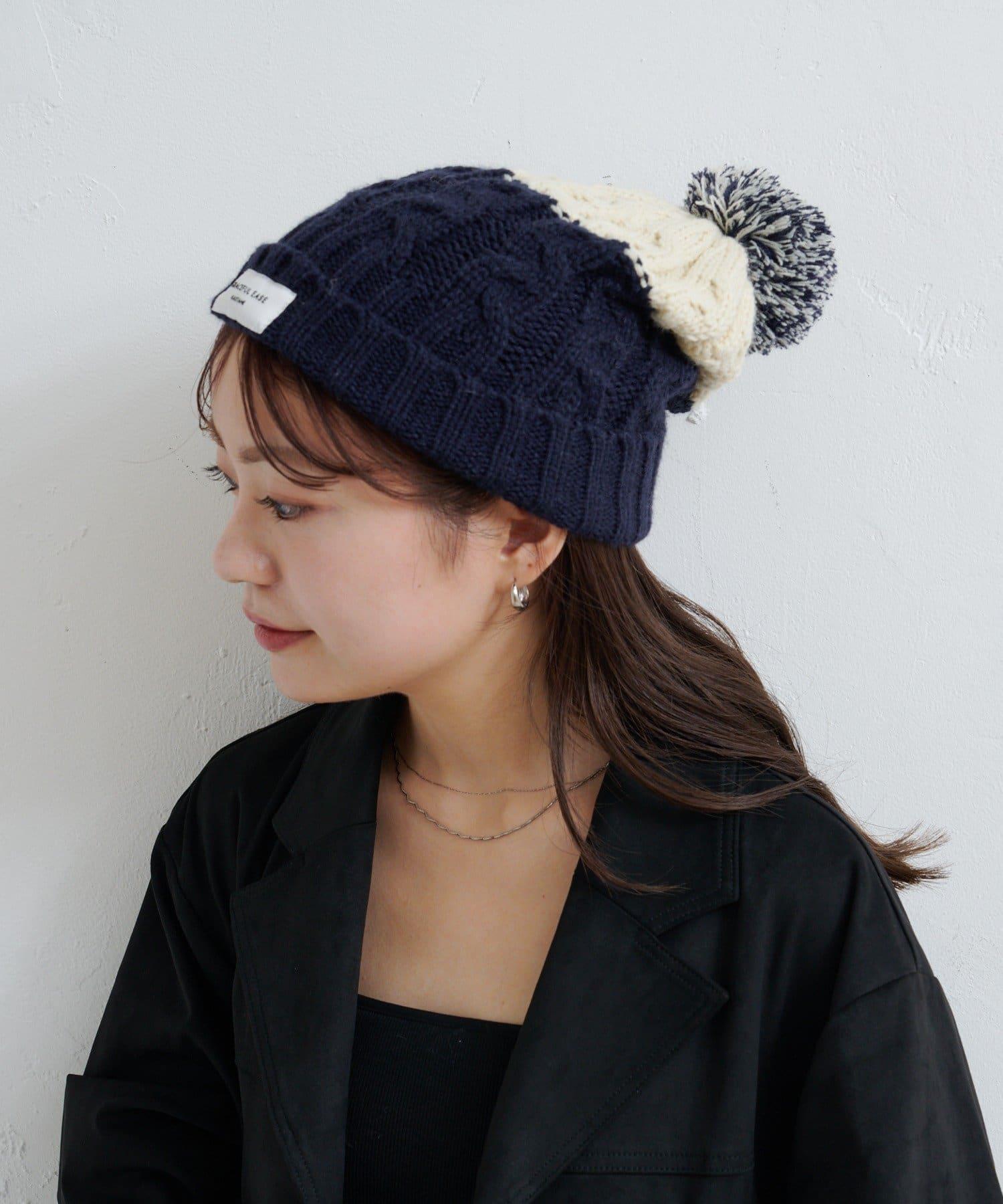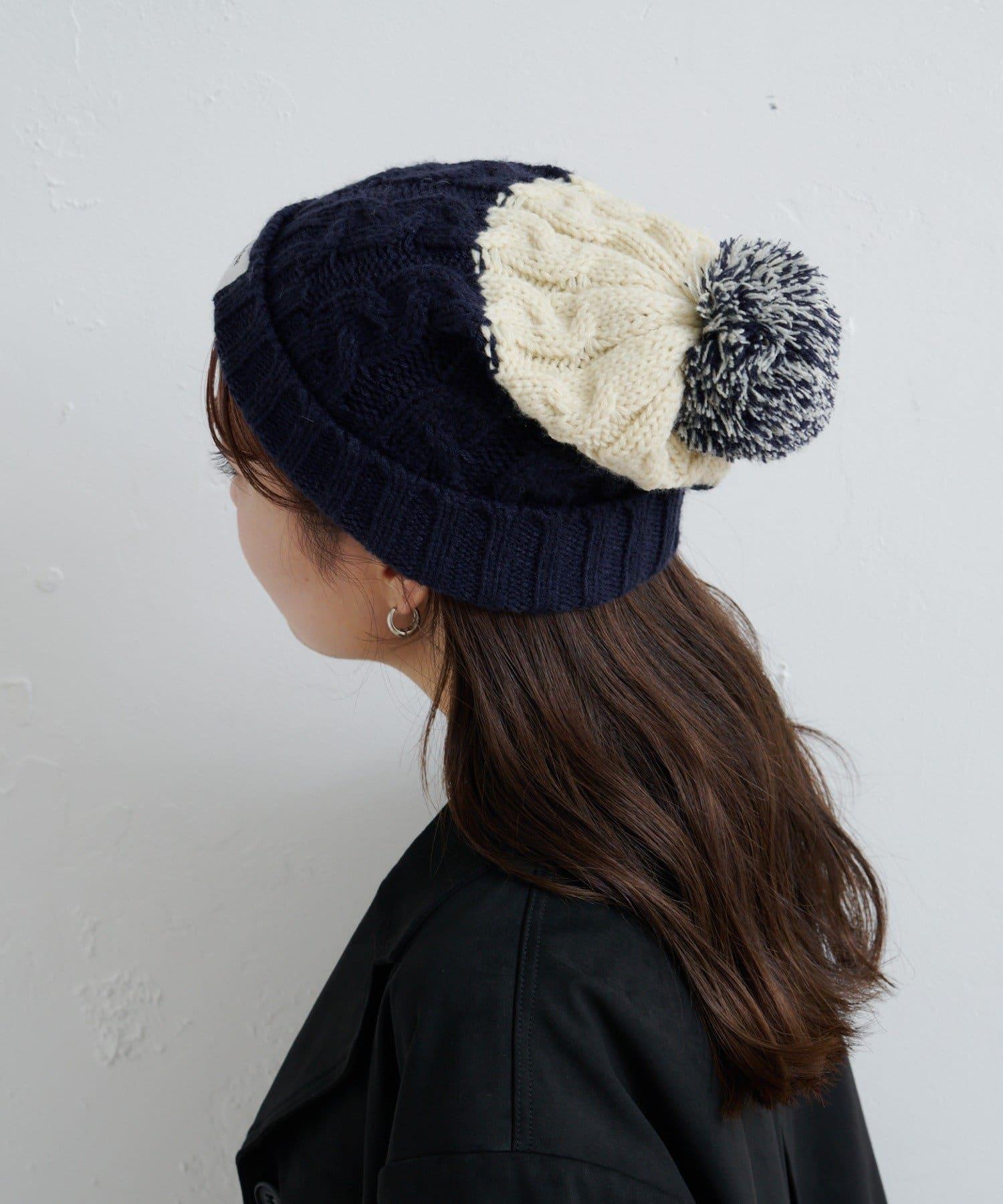 絨球小帽採用柔軟的電纜編織,有兩種不同的顏色。