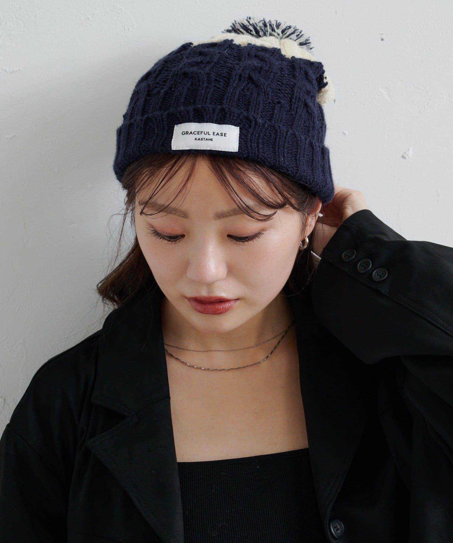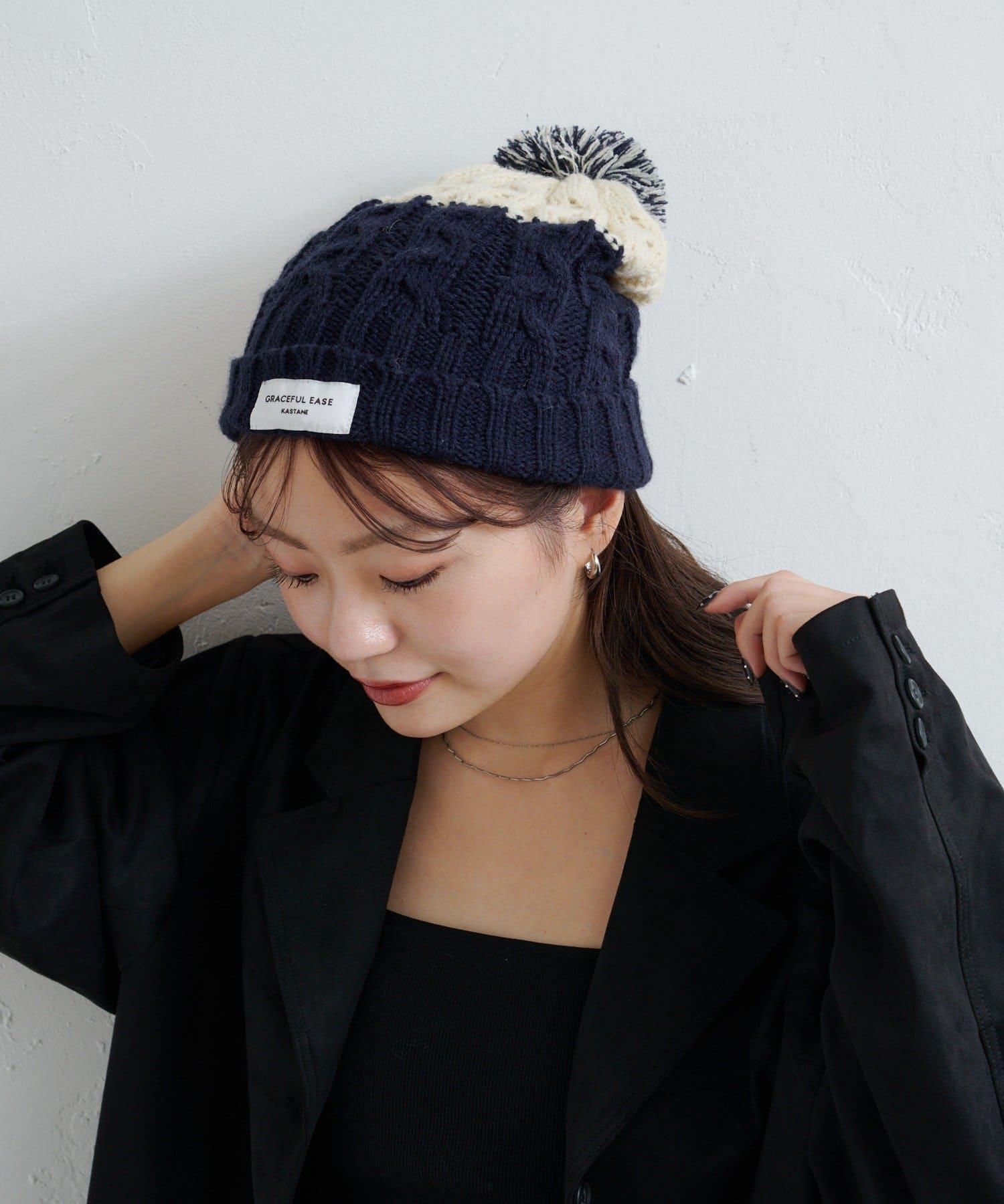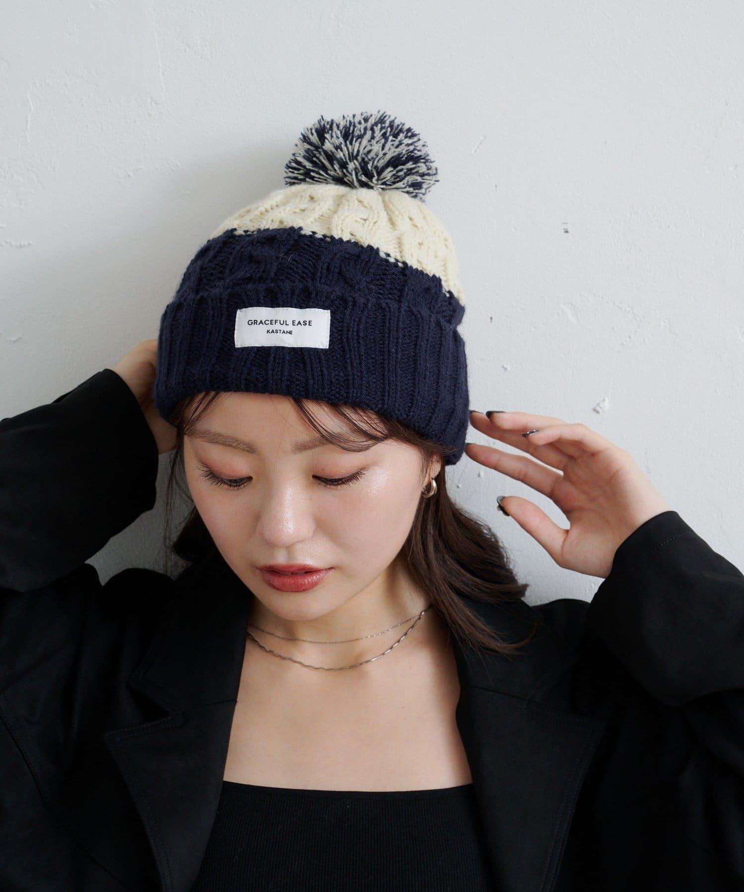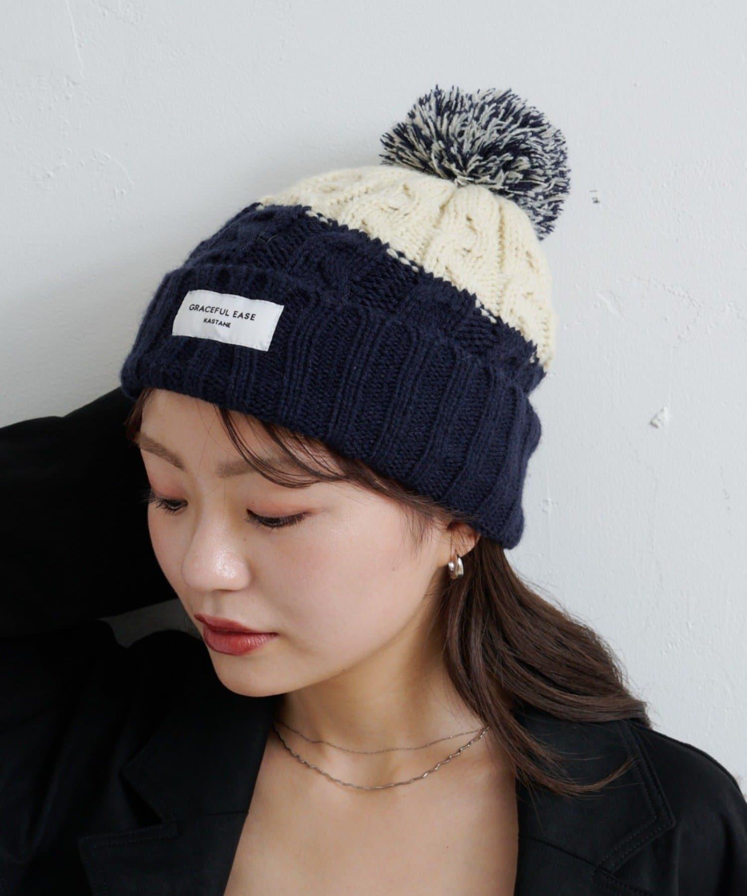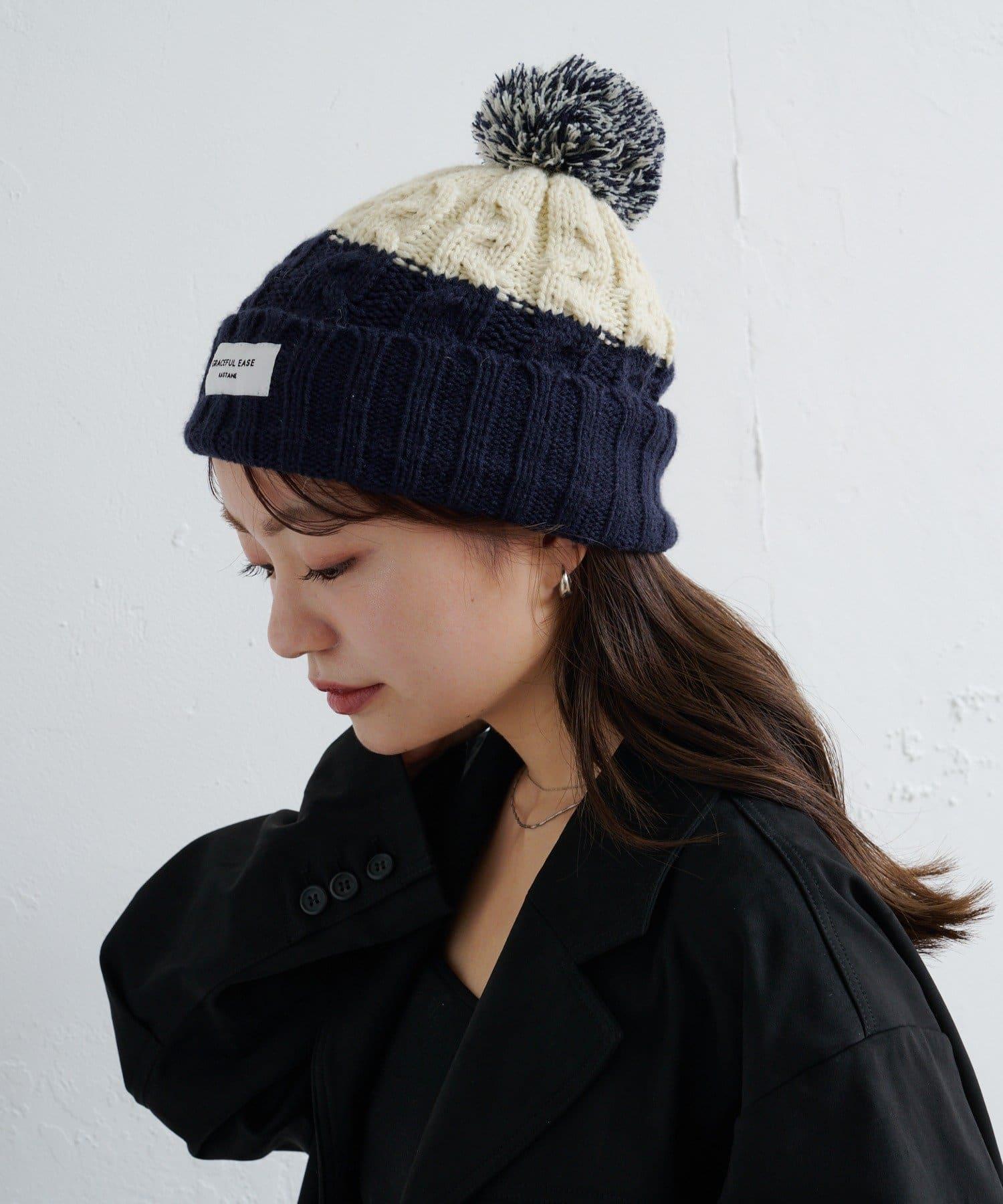 絨球小帽採用柔軟的電纜編織,有兩種不同的顏色。