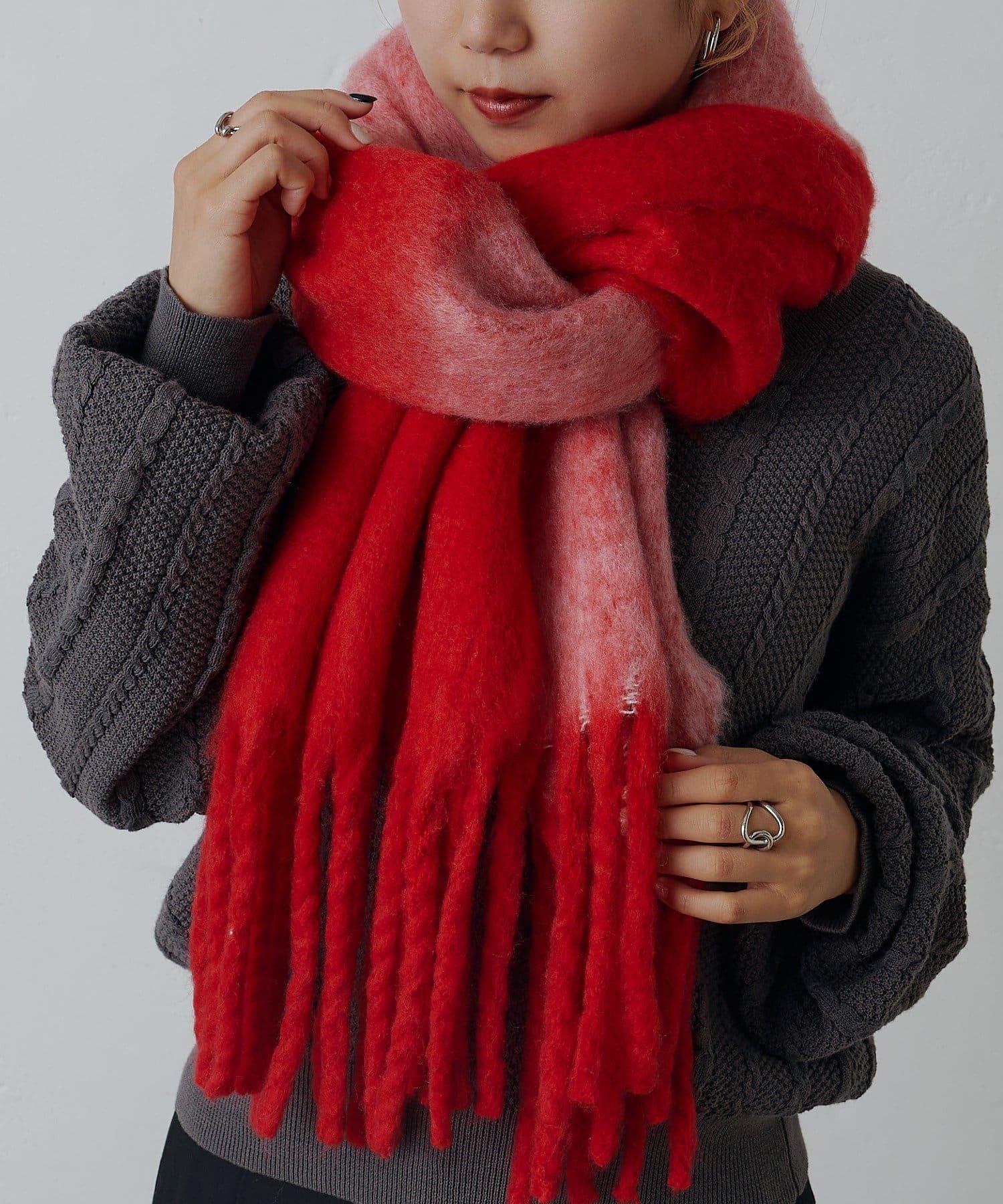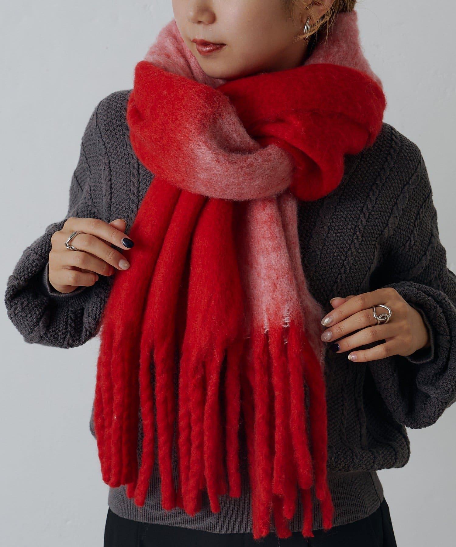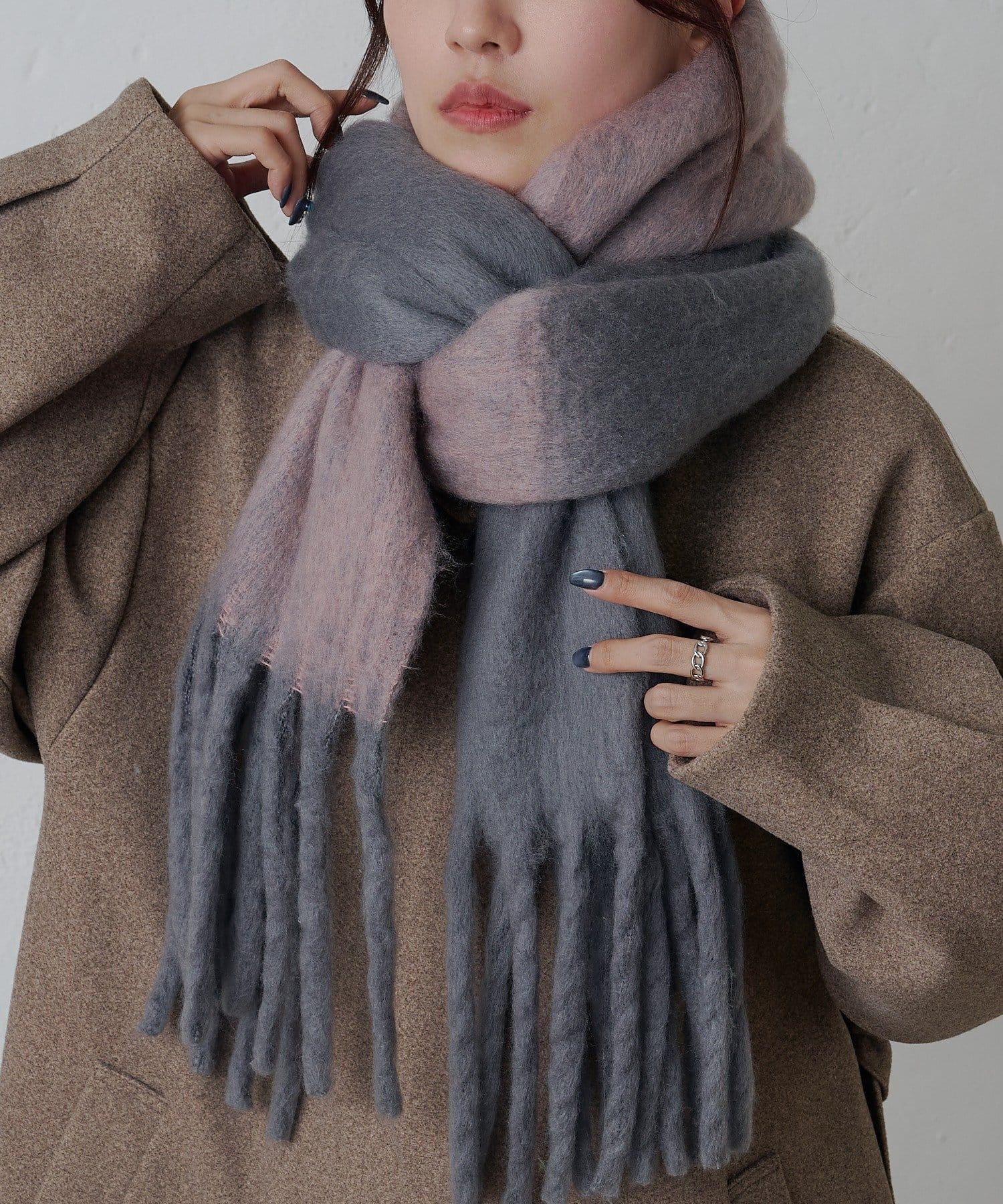這是一款輕盈、溫暖、柔軟的混色圍巾。
