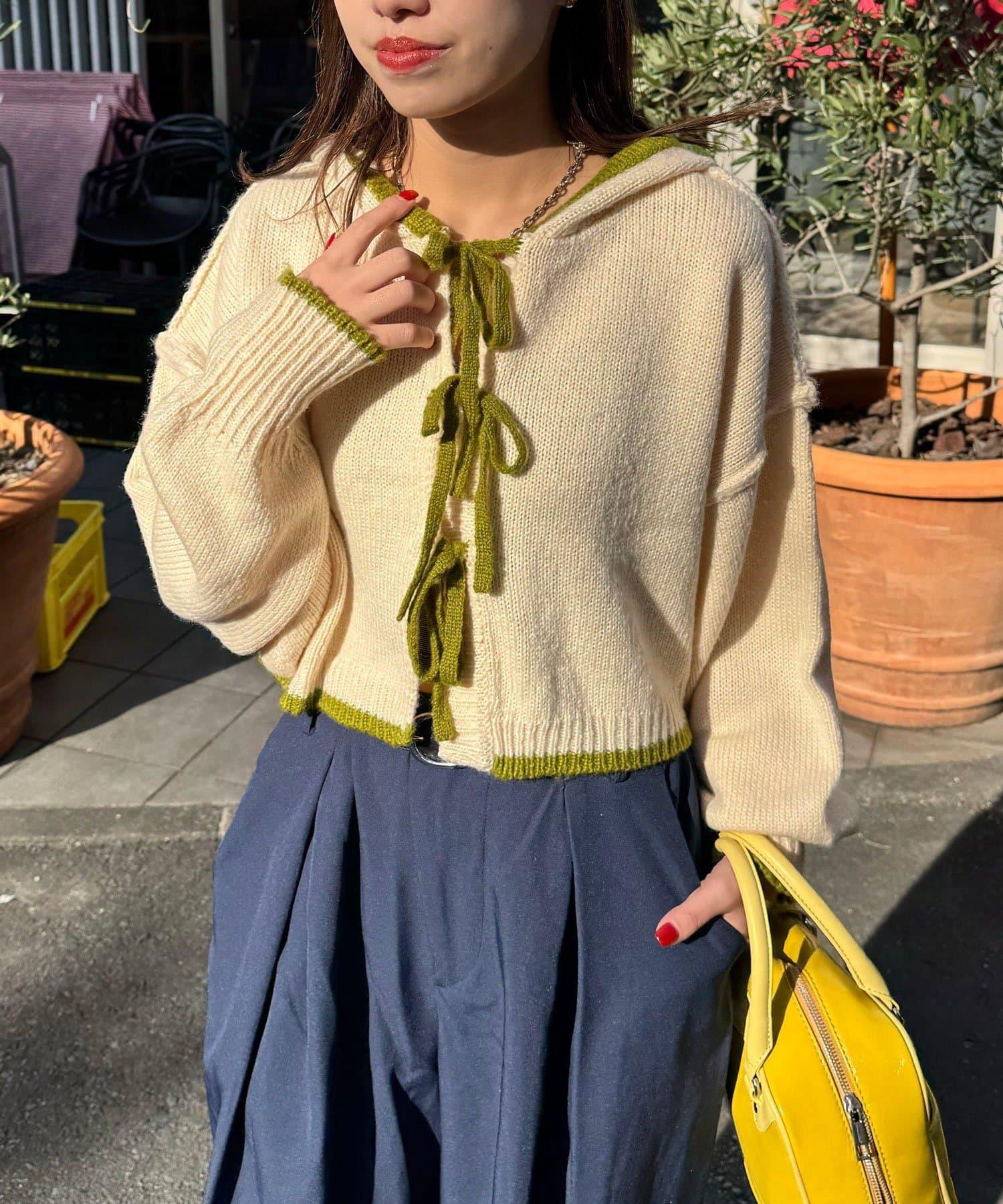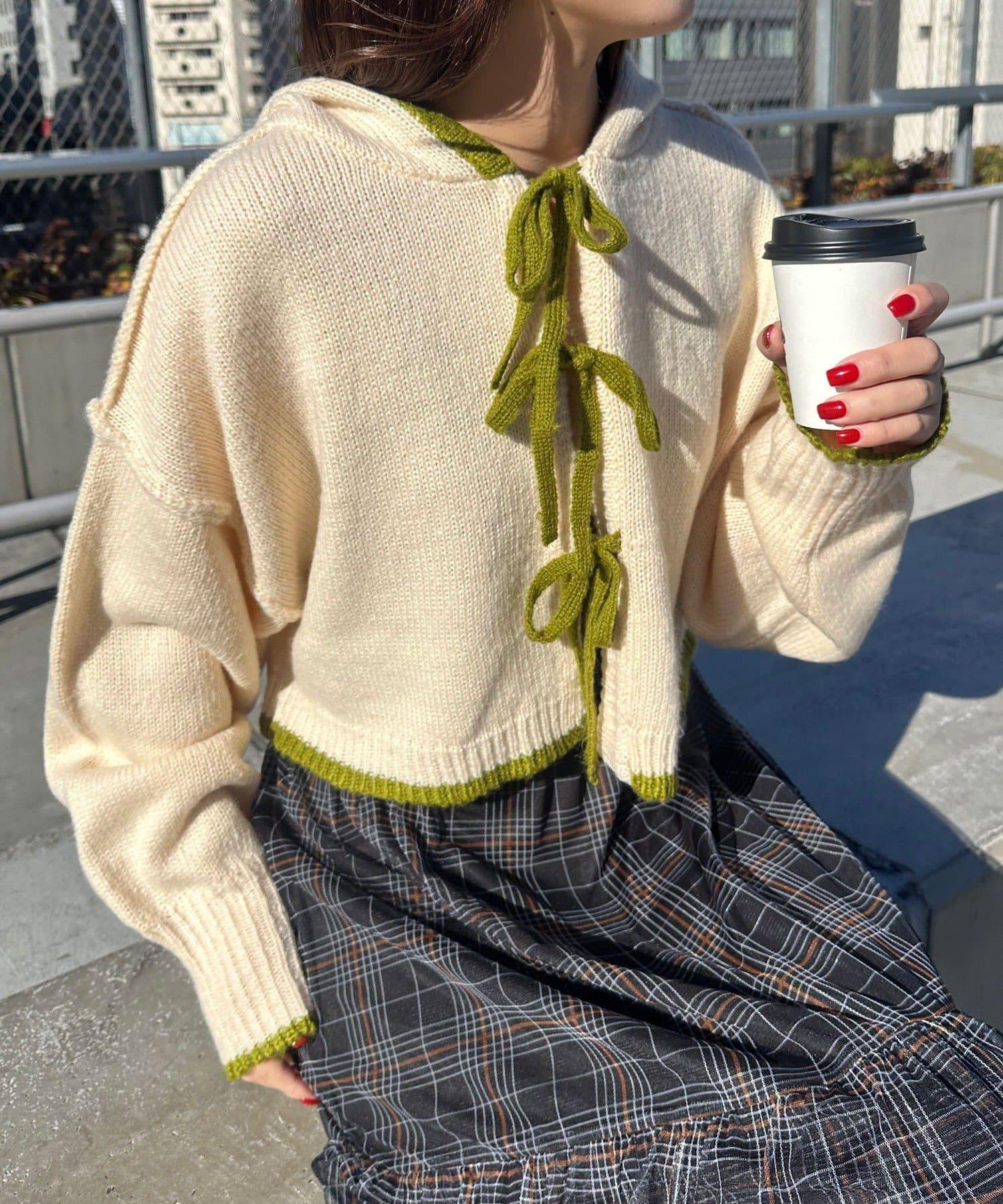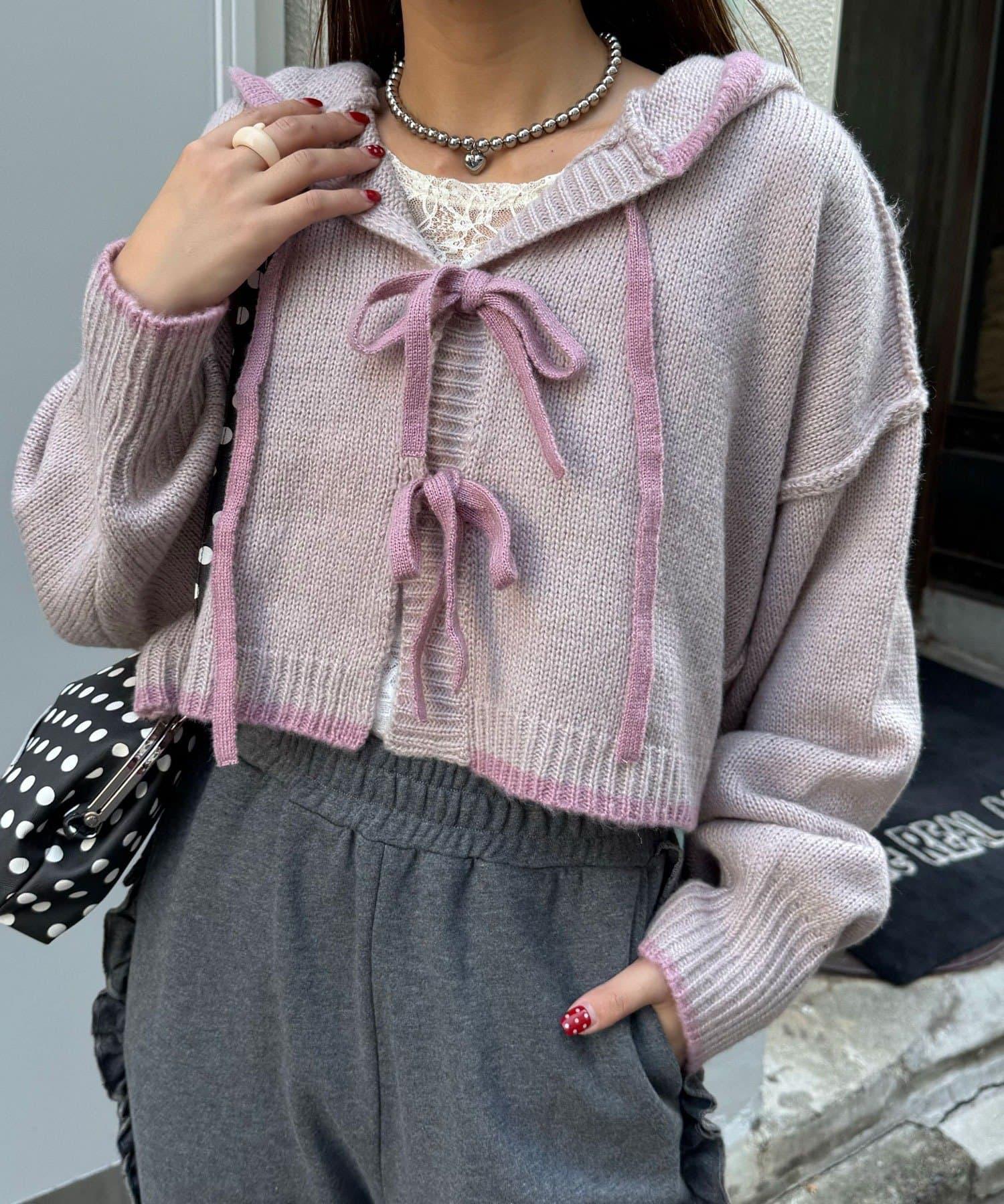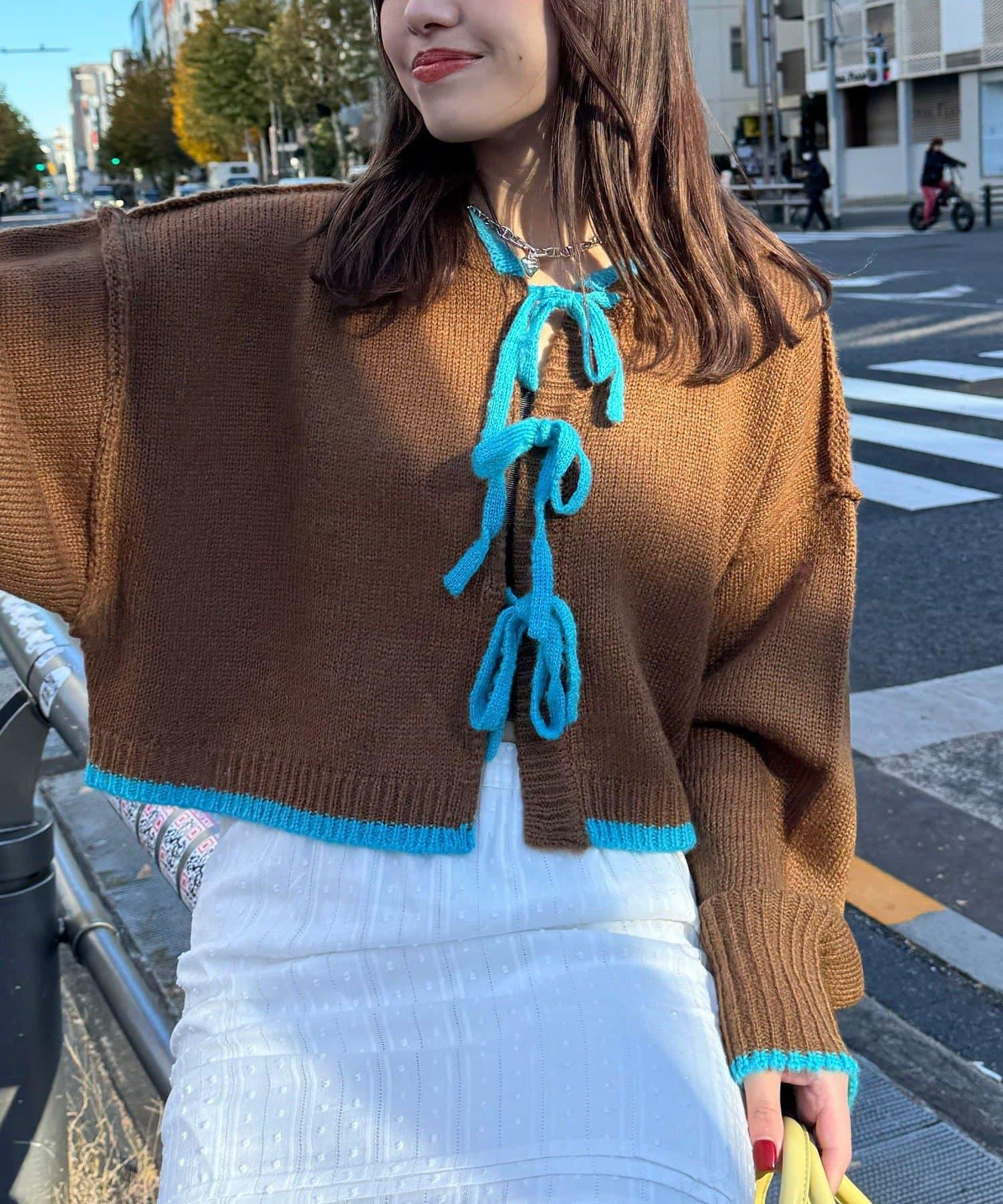前襟的絲帶和寬大的袖子增添了甜美的印象!