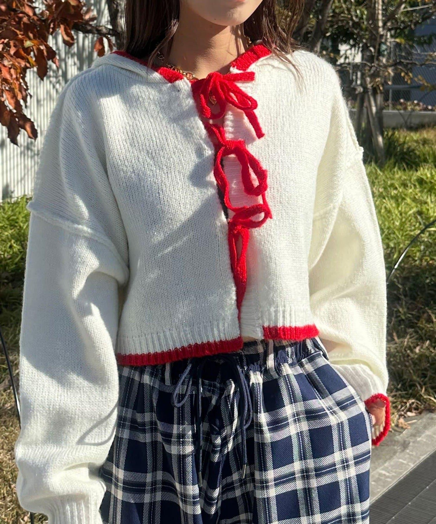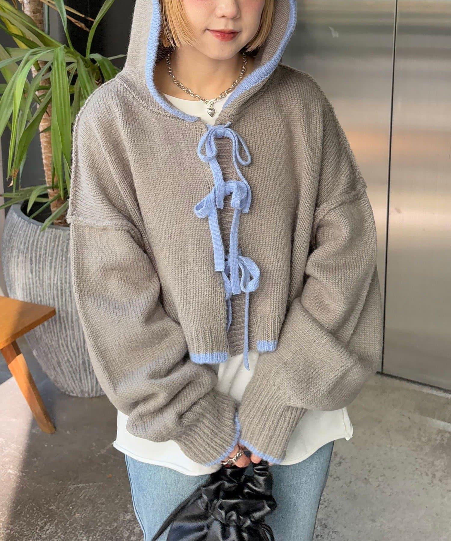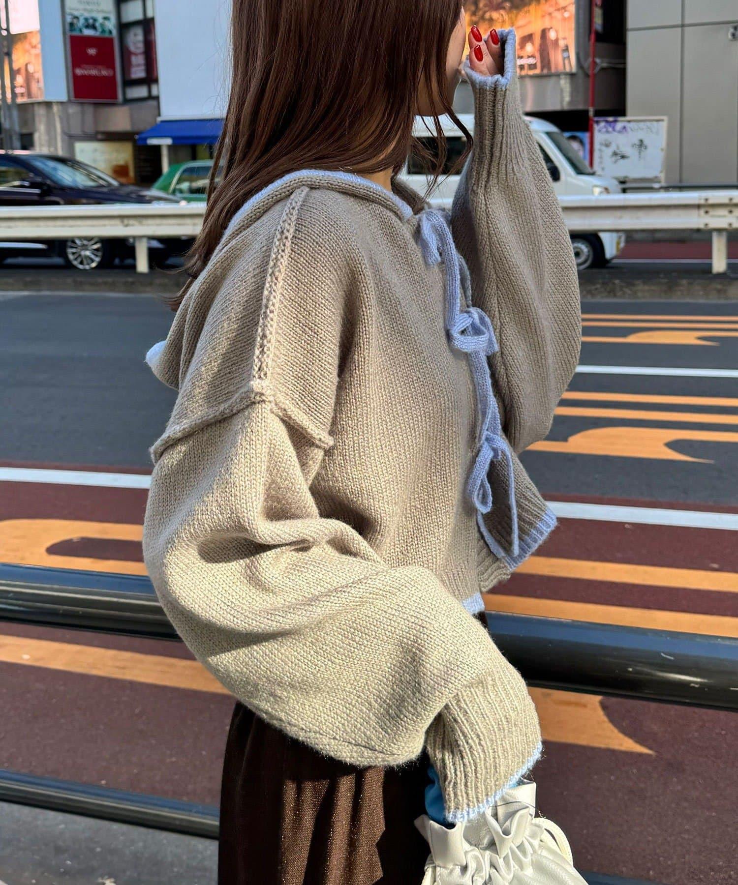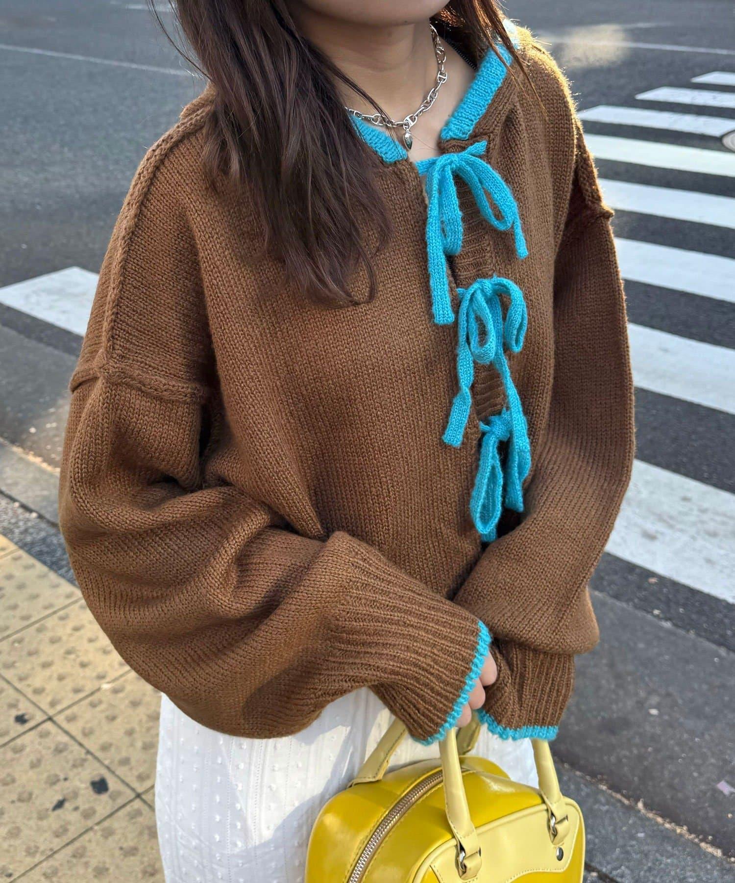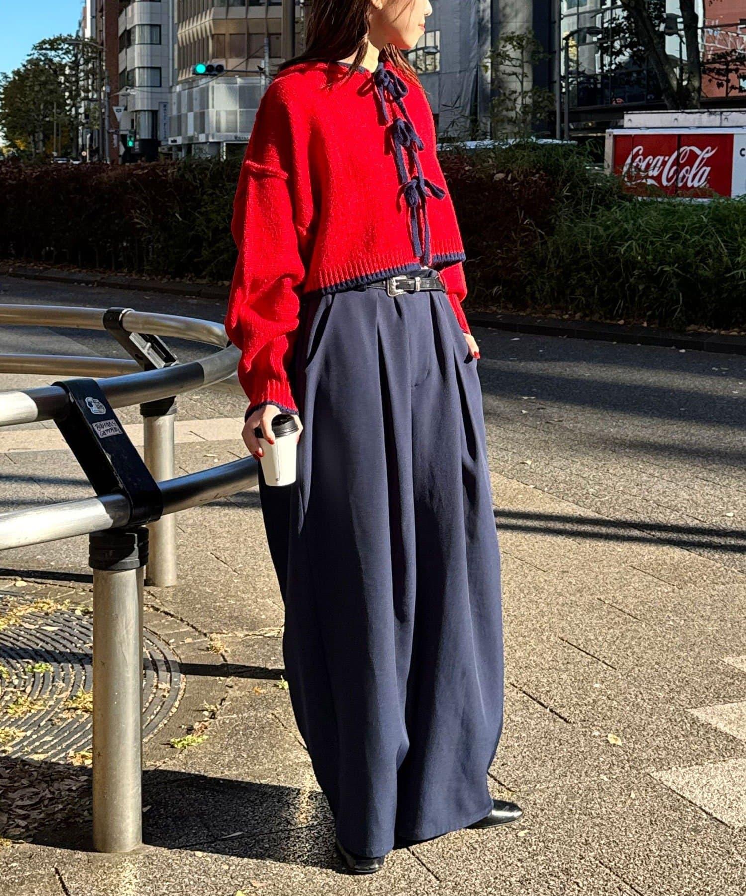 前襟的絲帶和寬大的袖子增添了甜美的印象!