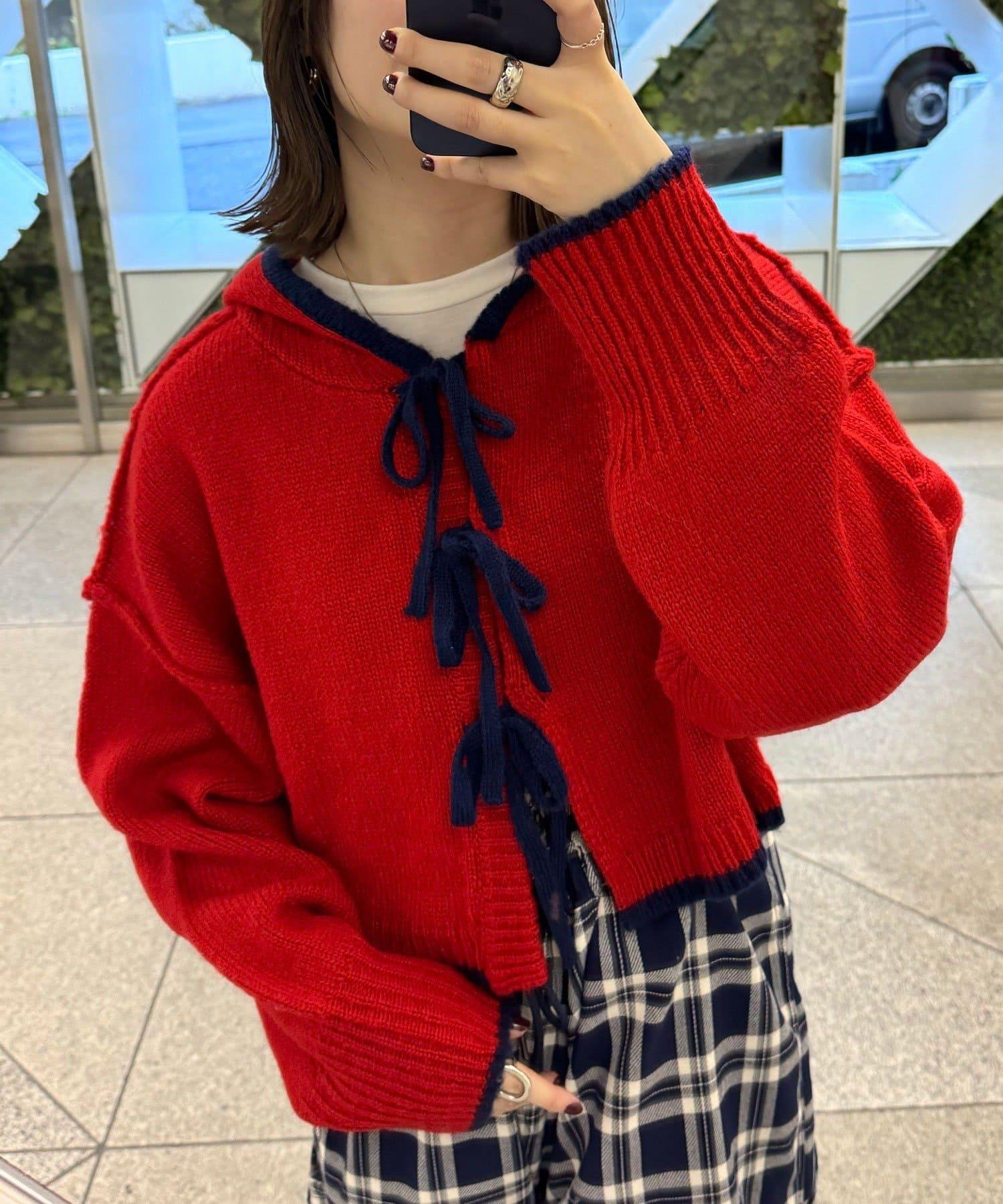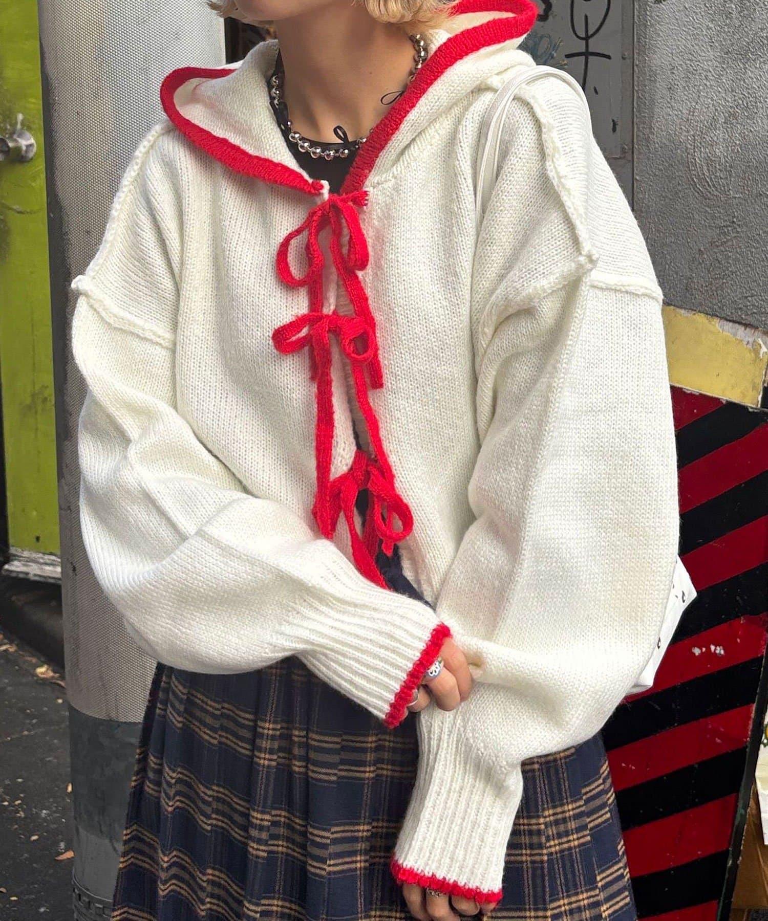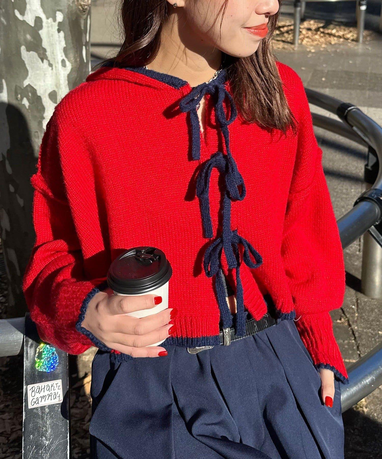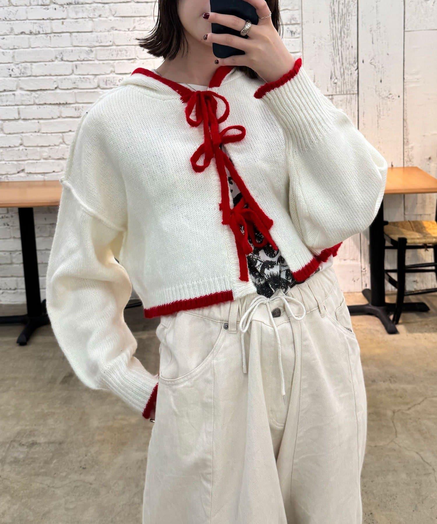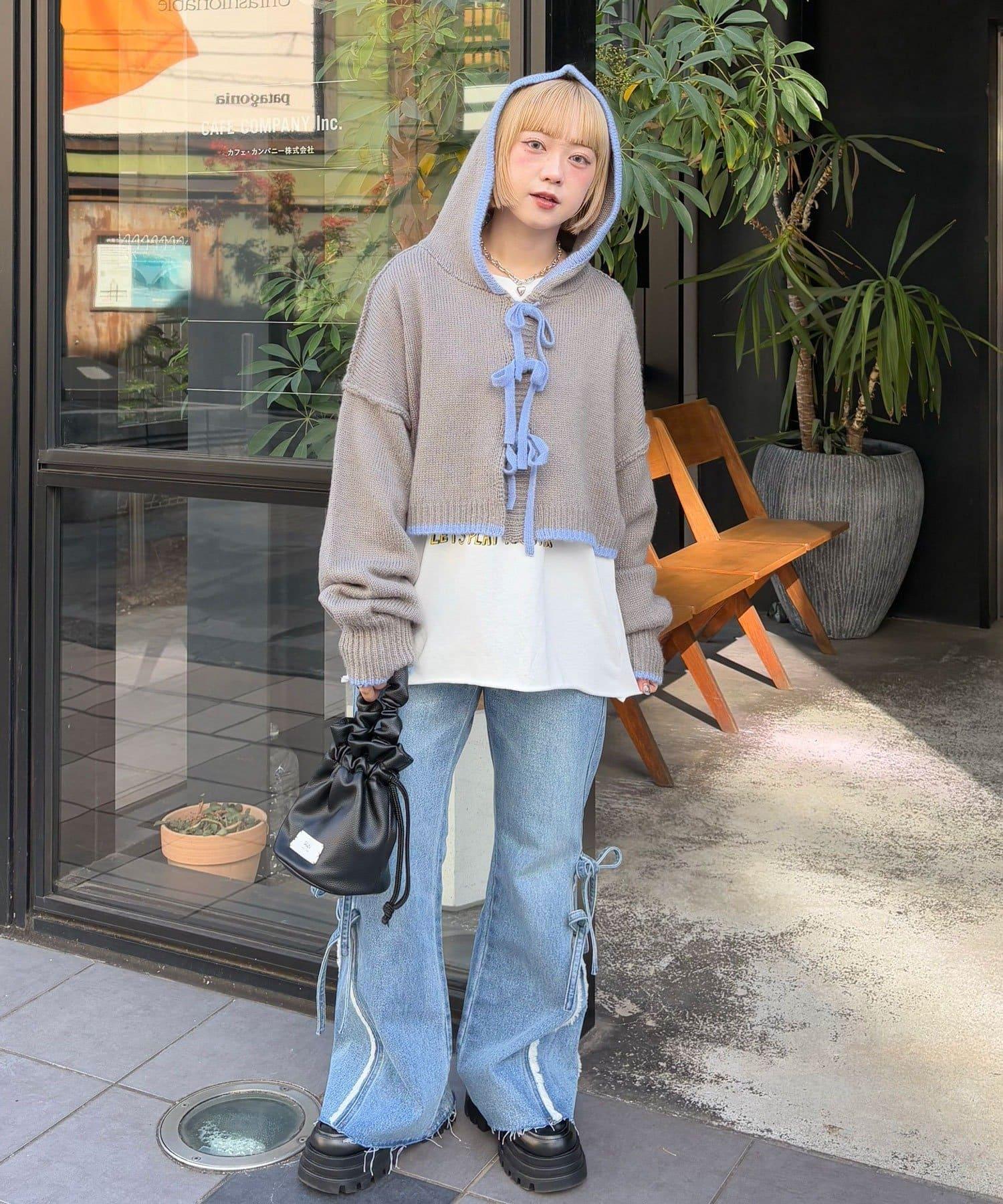 前襟的絲帶和寬大的袖子增添了甜美的印象!