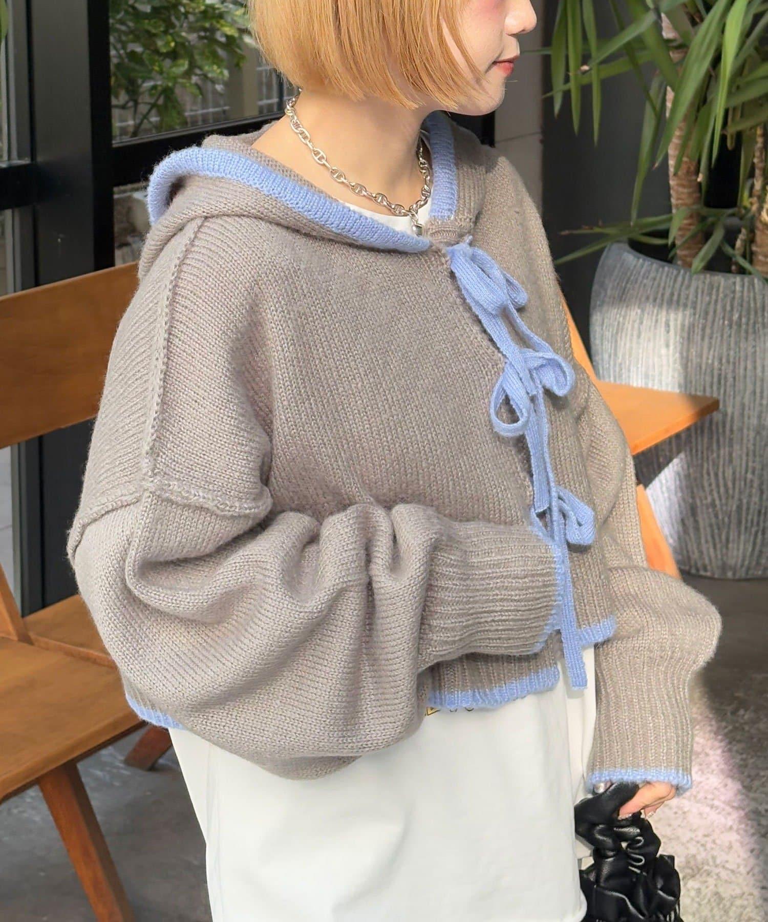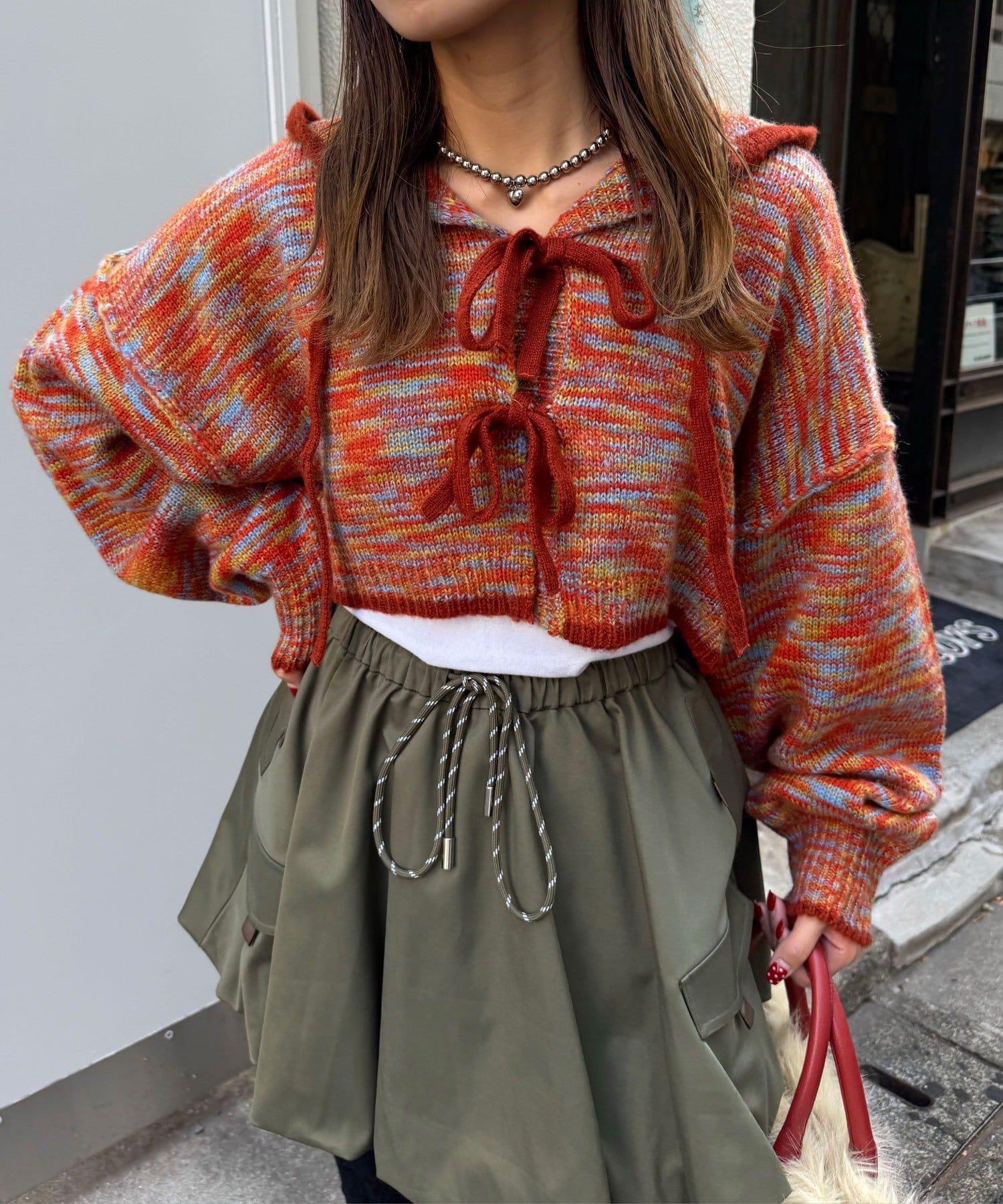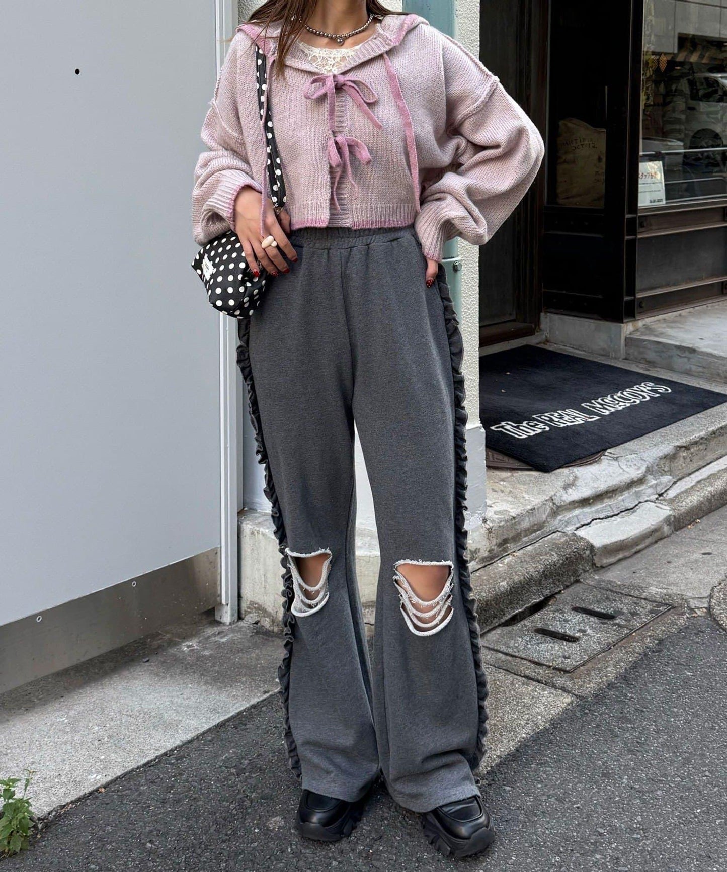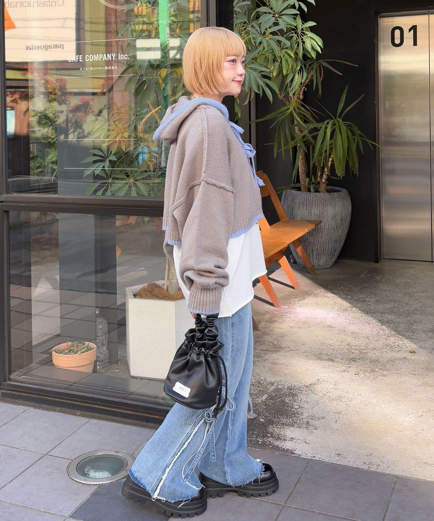 前襟的絲帶和寬大的袖子增添了甜美的印象!