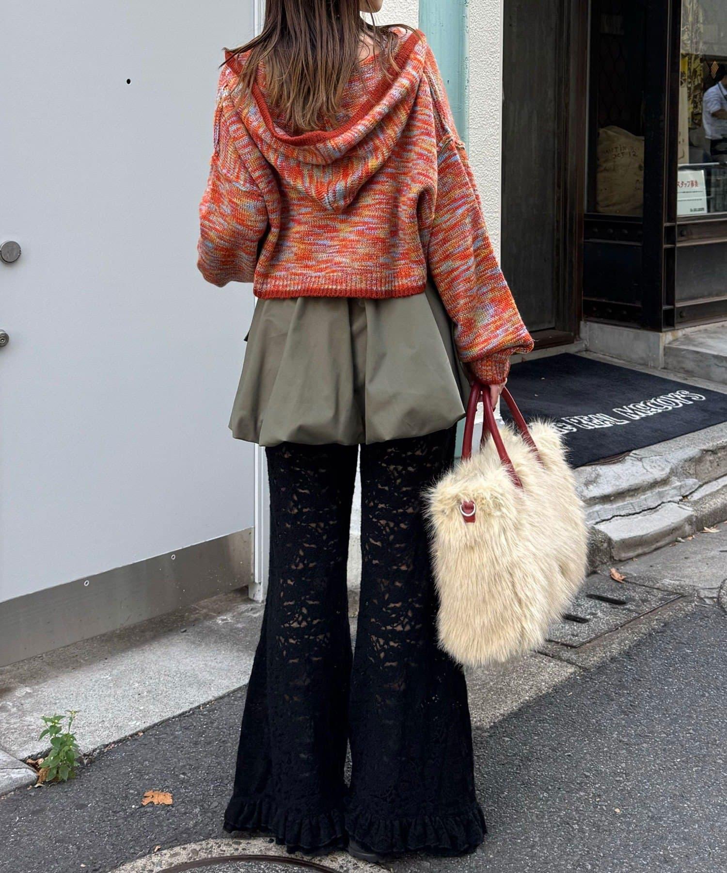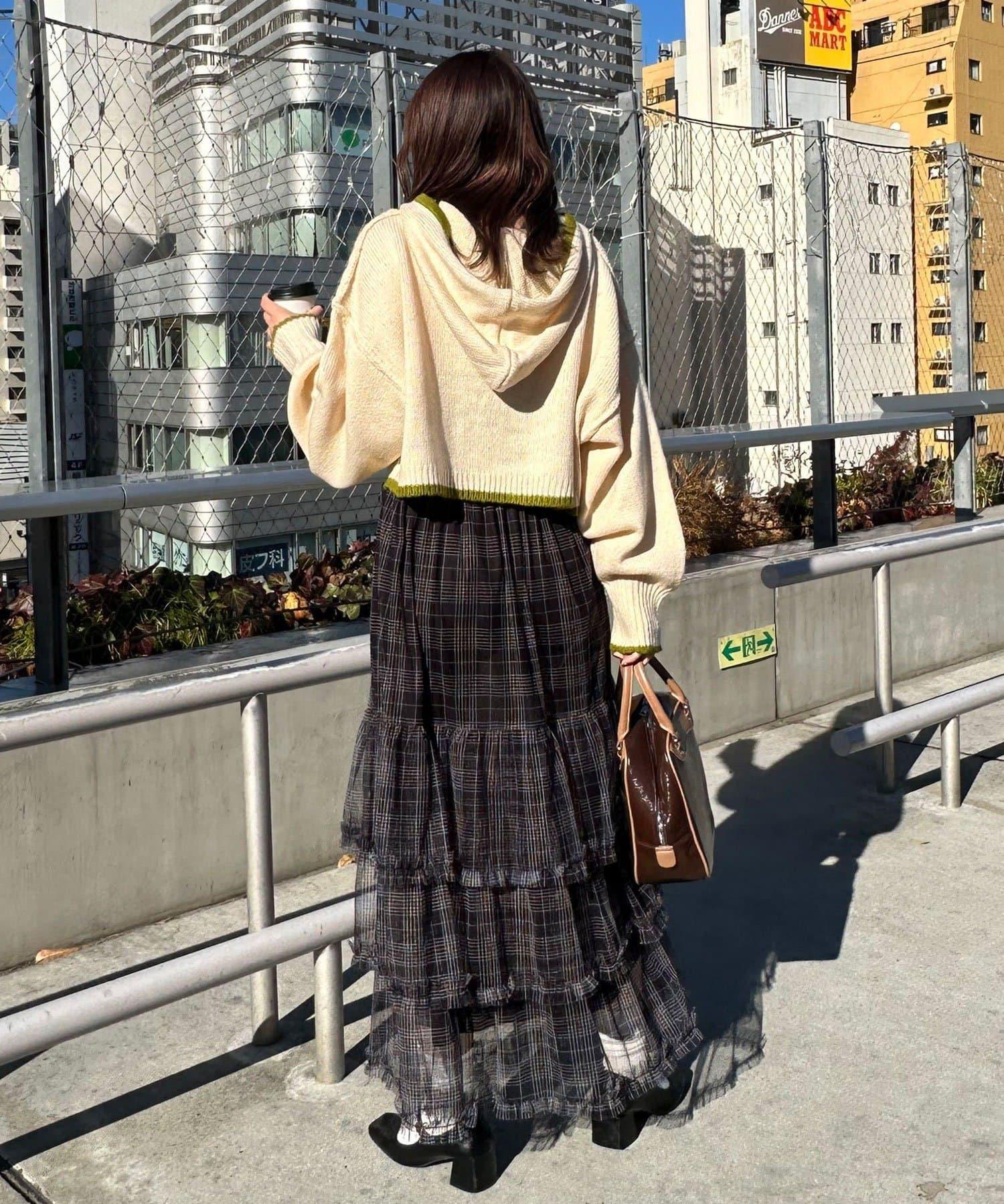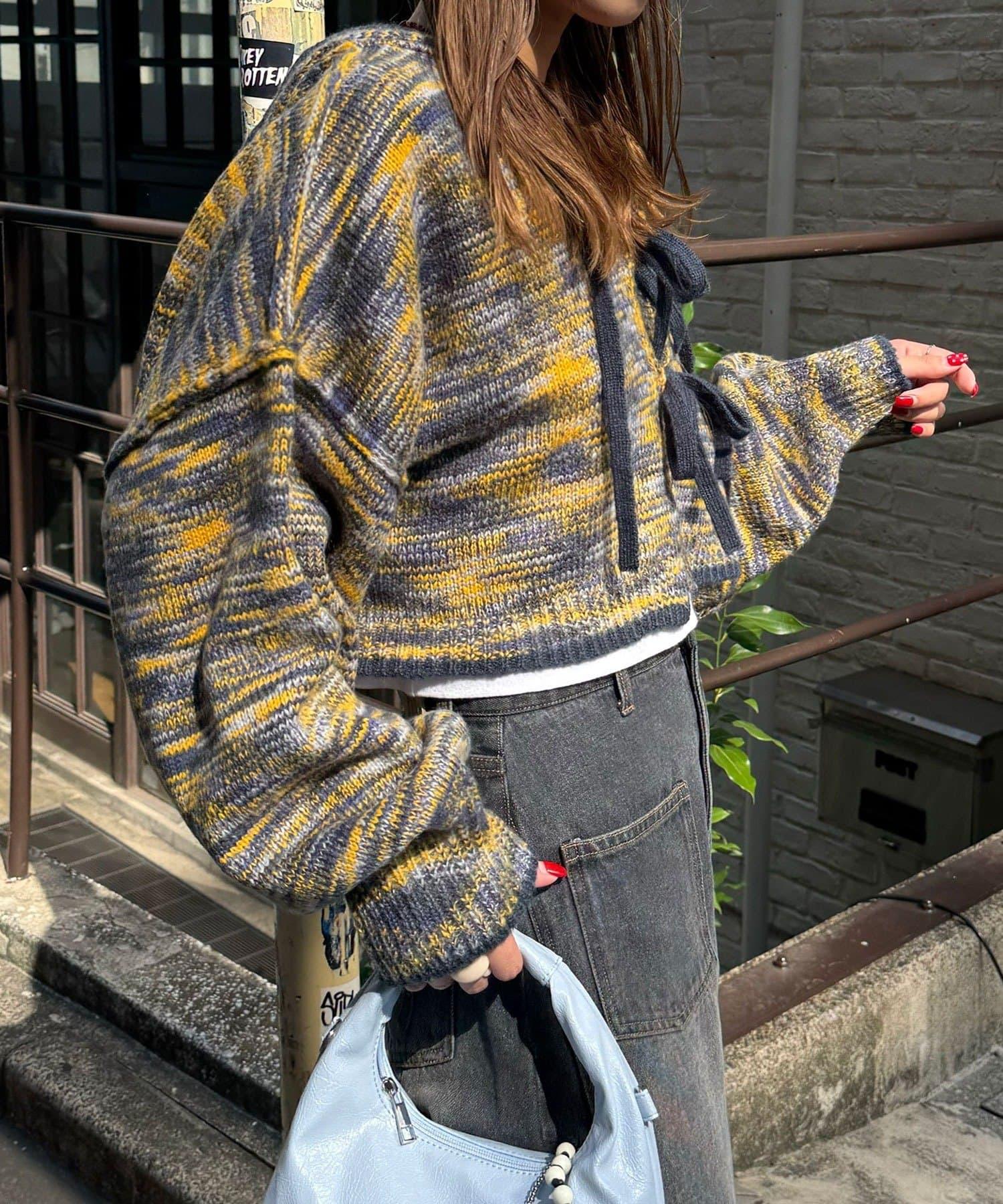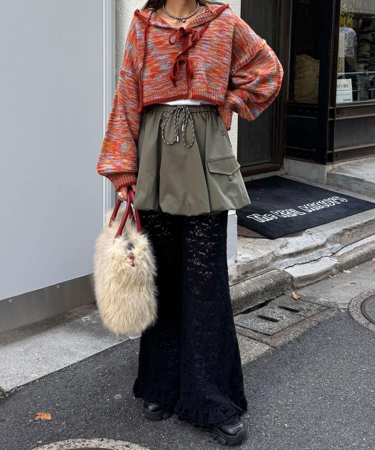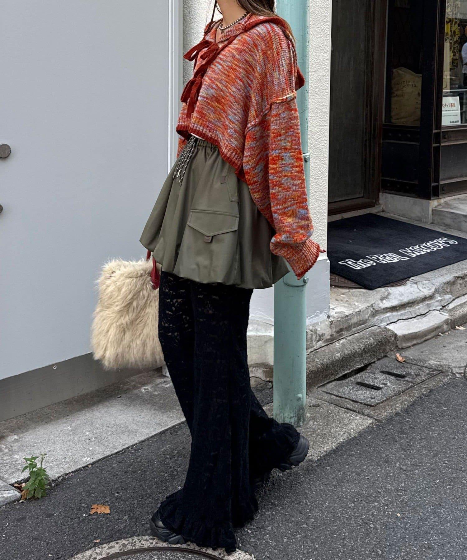 前襟的絲帶和寬大的袖子增添了甜美的印象!