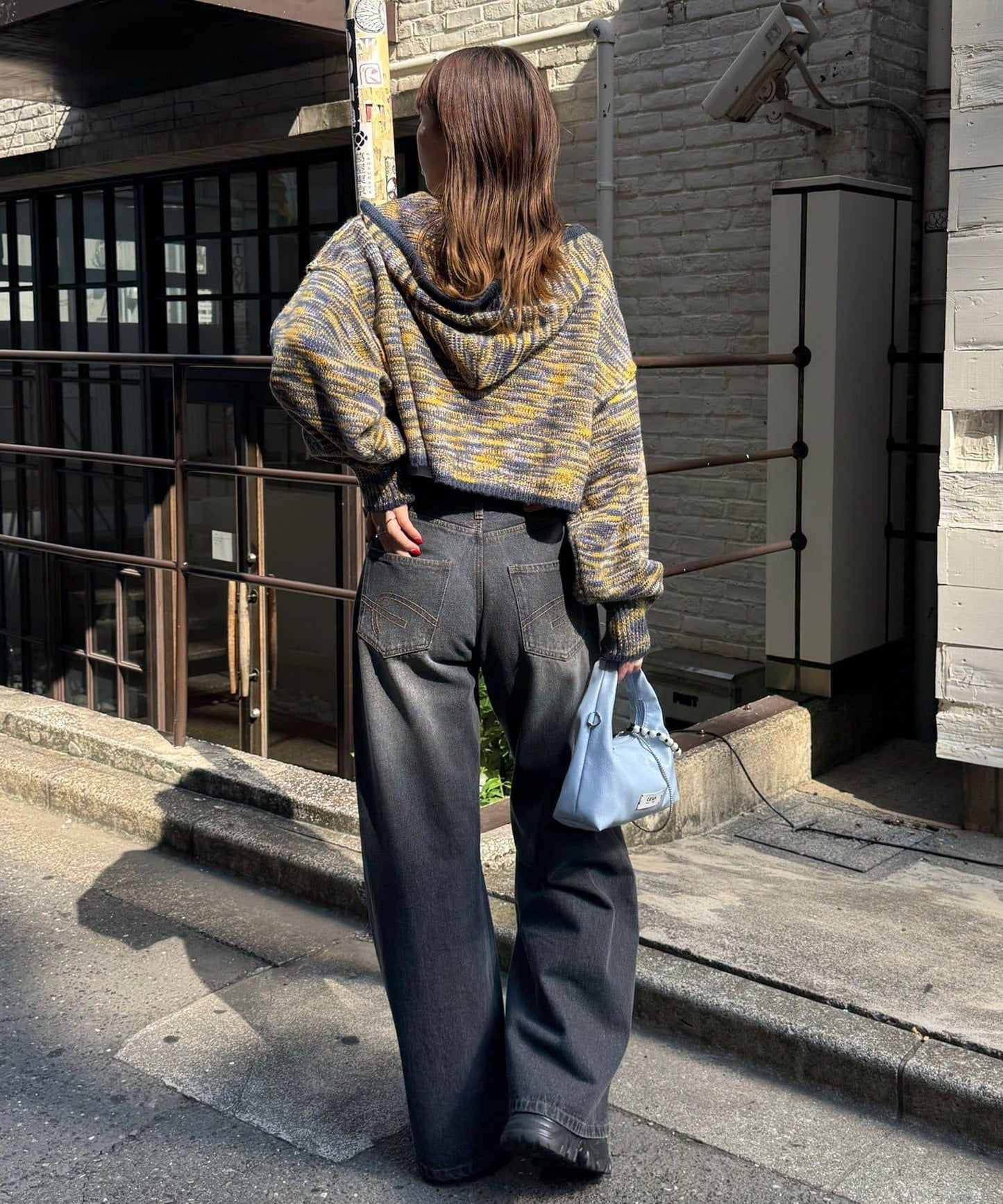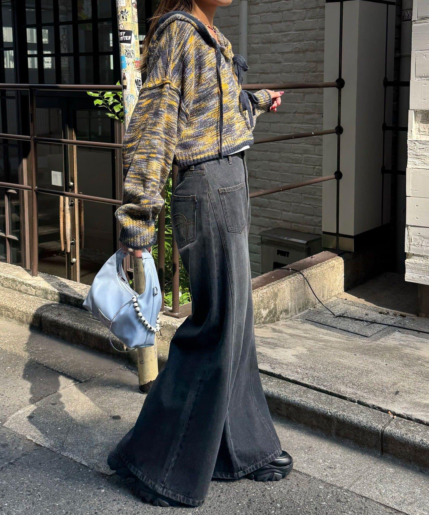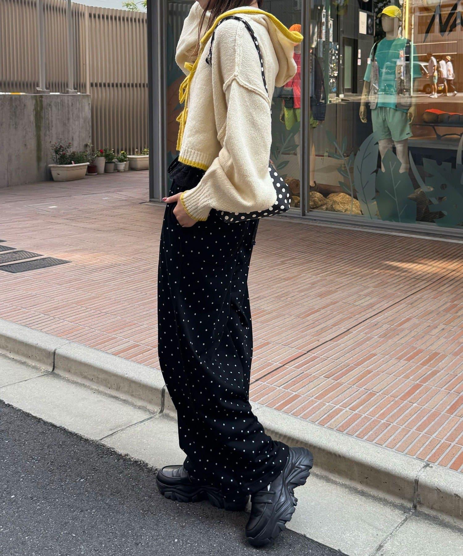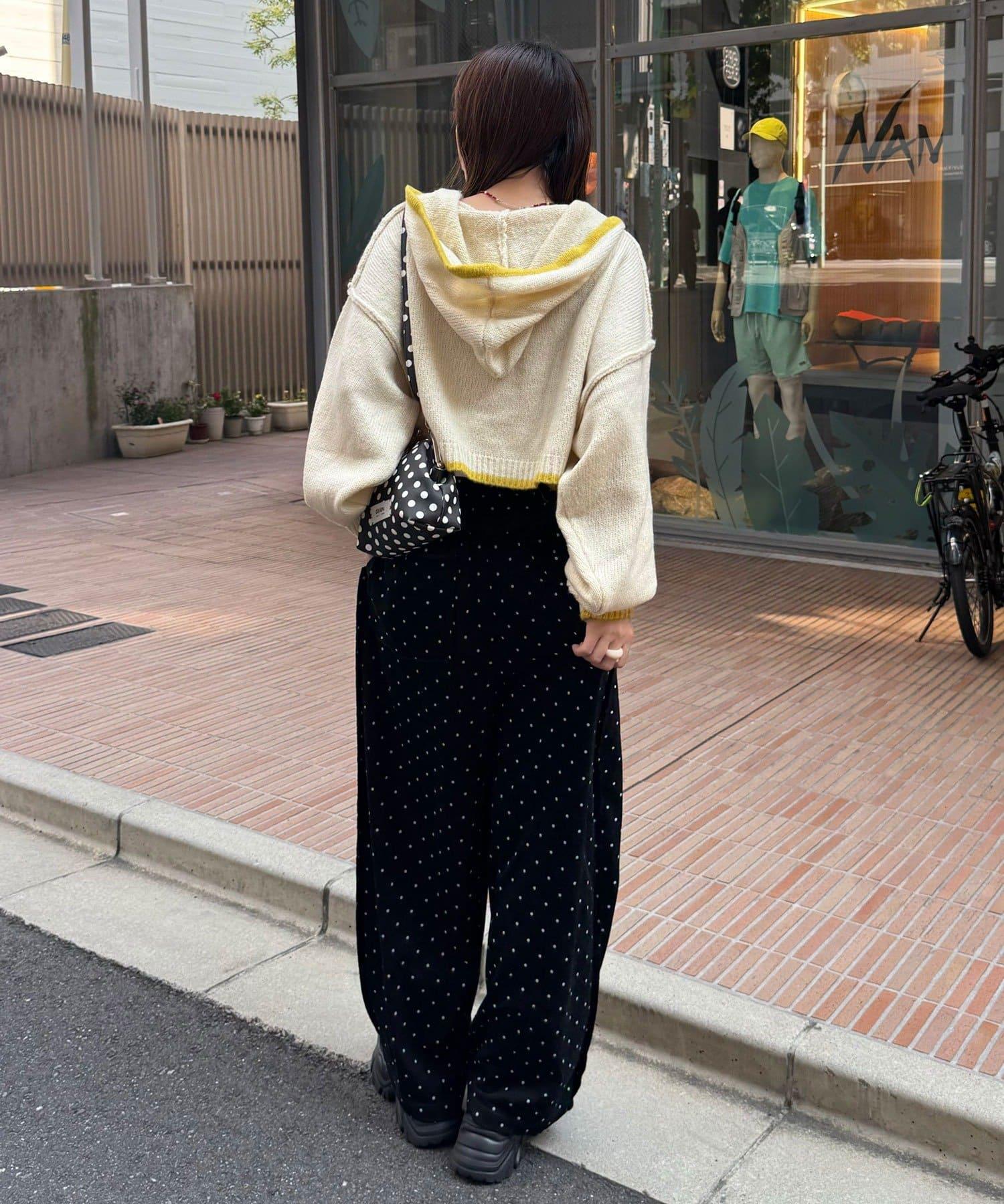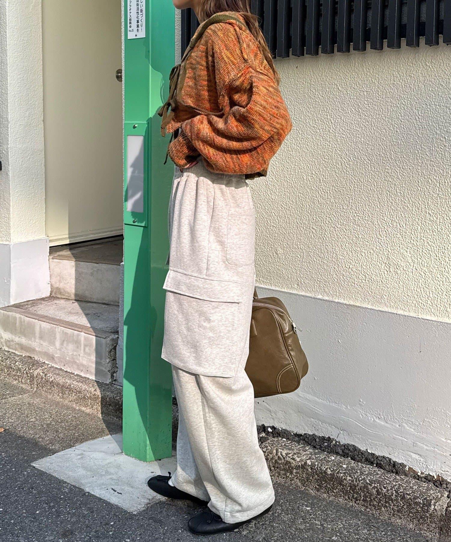 貨郎褲的寬鬆感和針織衫的緊湊感營造出時尚的輪廓。