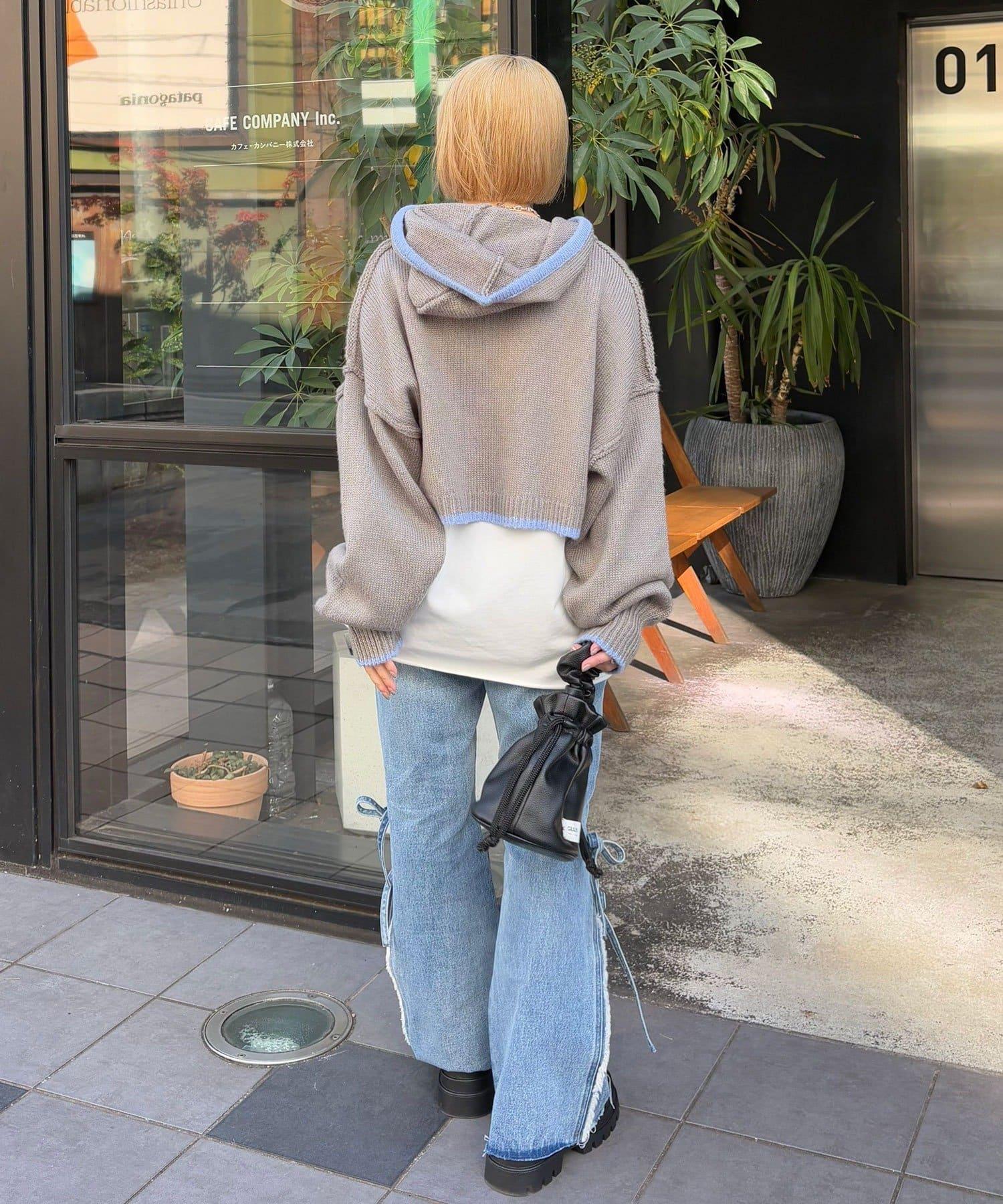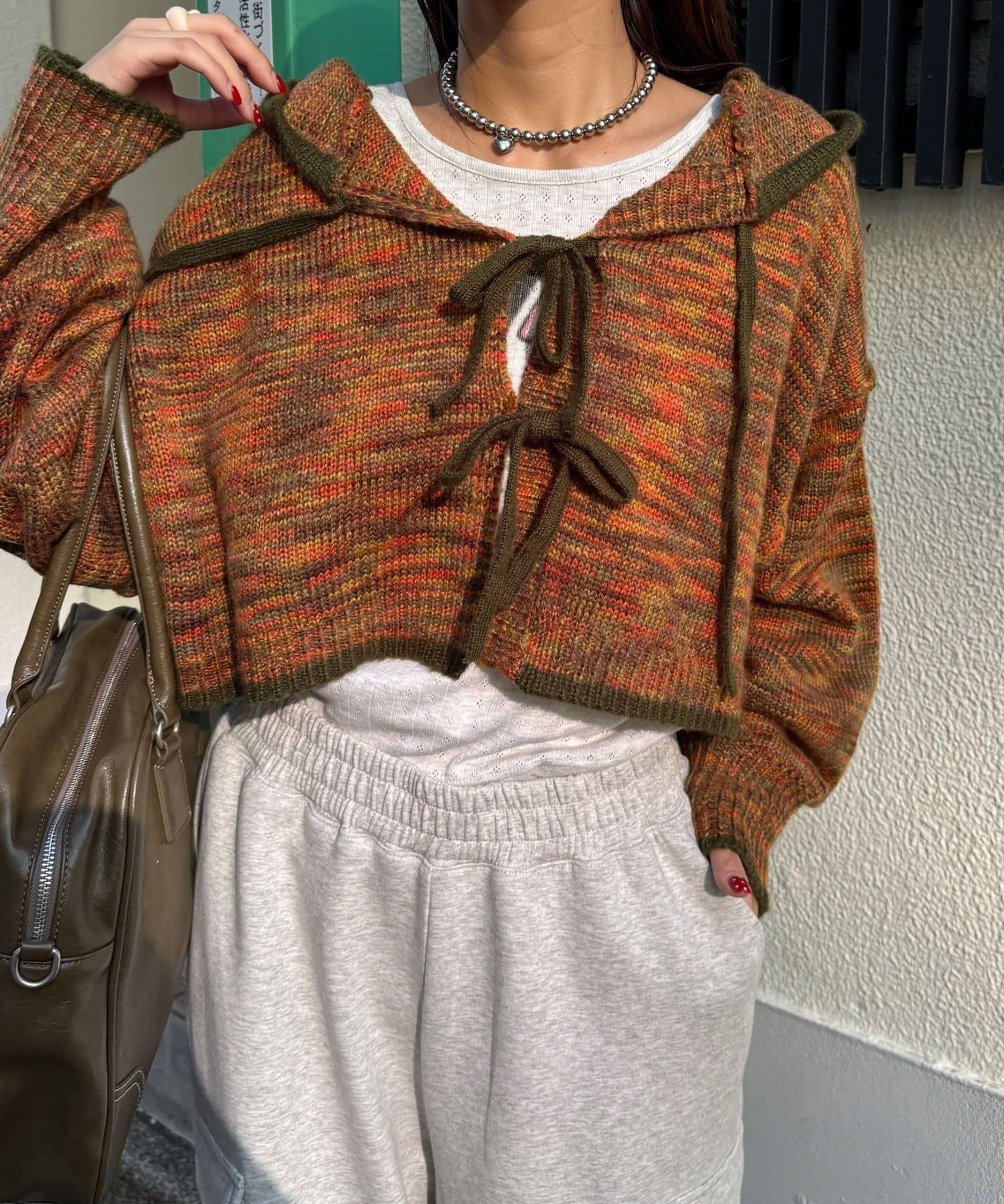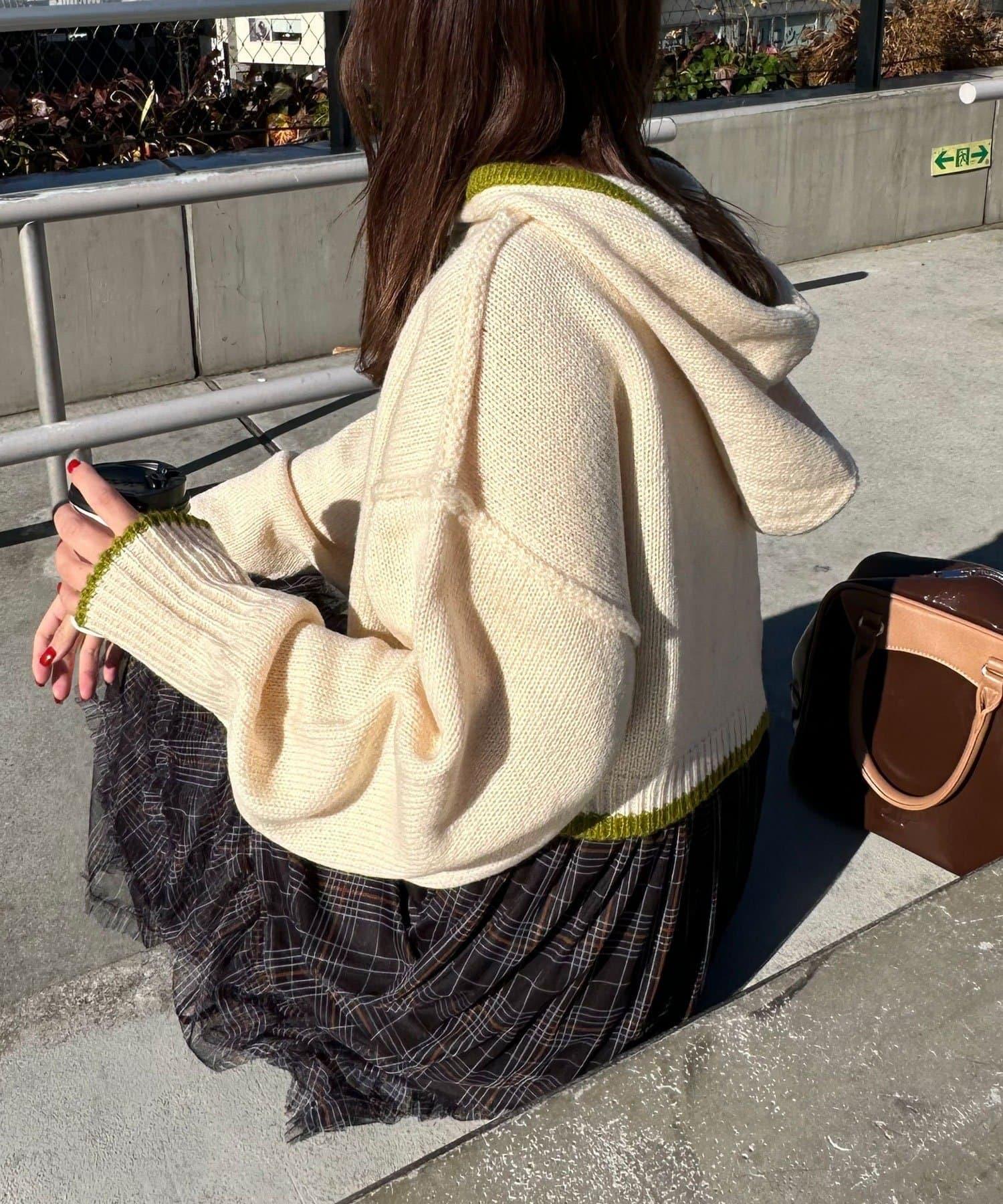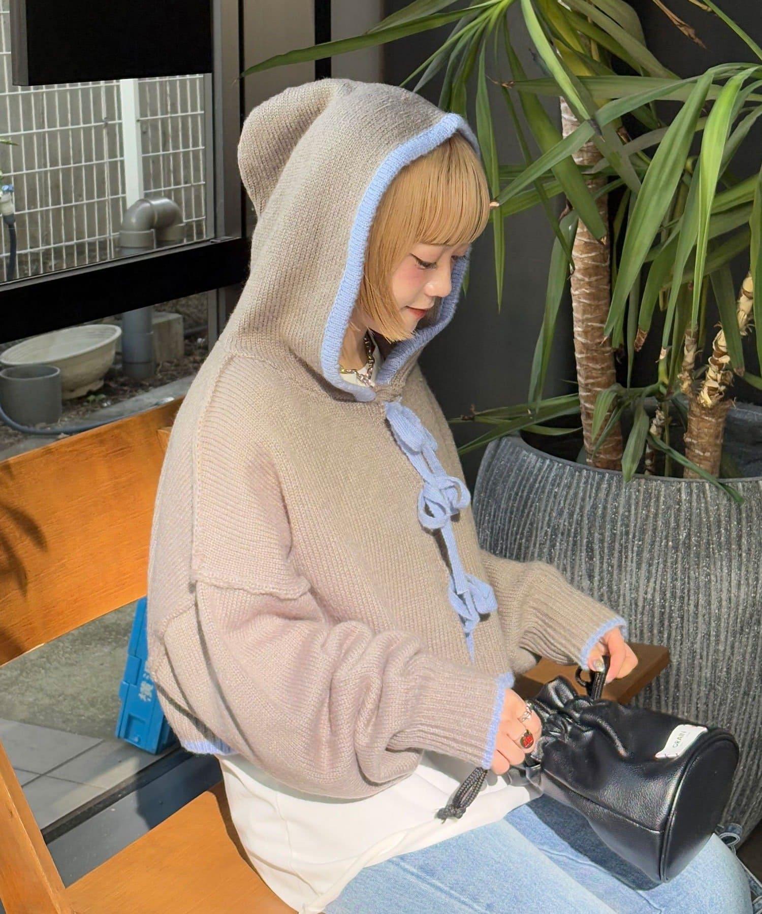 這款針織連帽衫採用短款剪裁,具有出色的時尚效果。