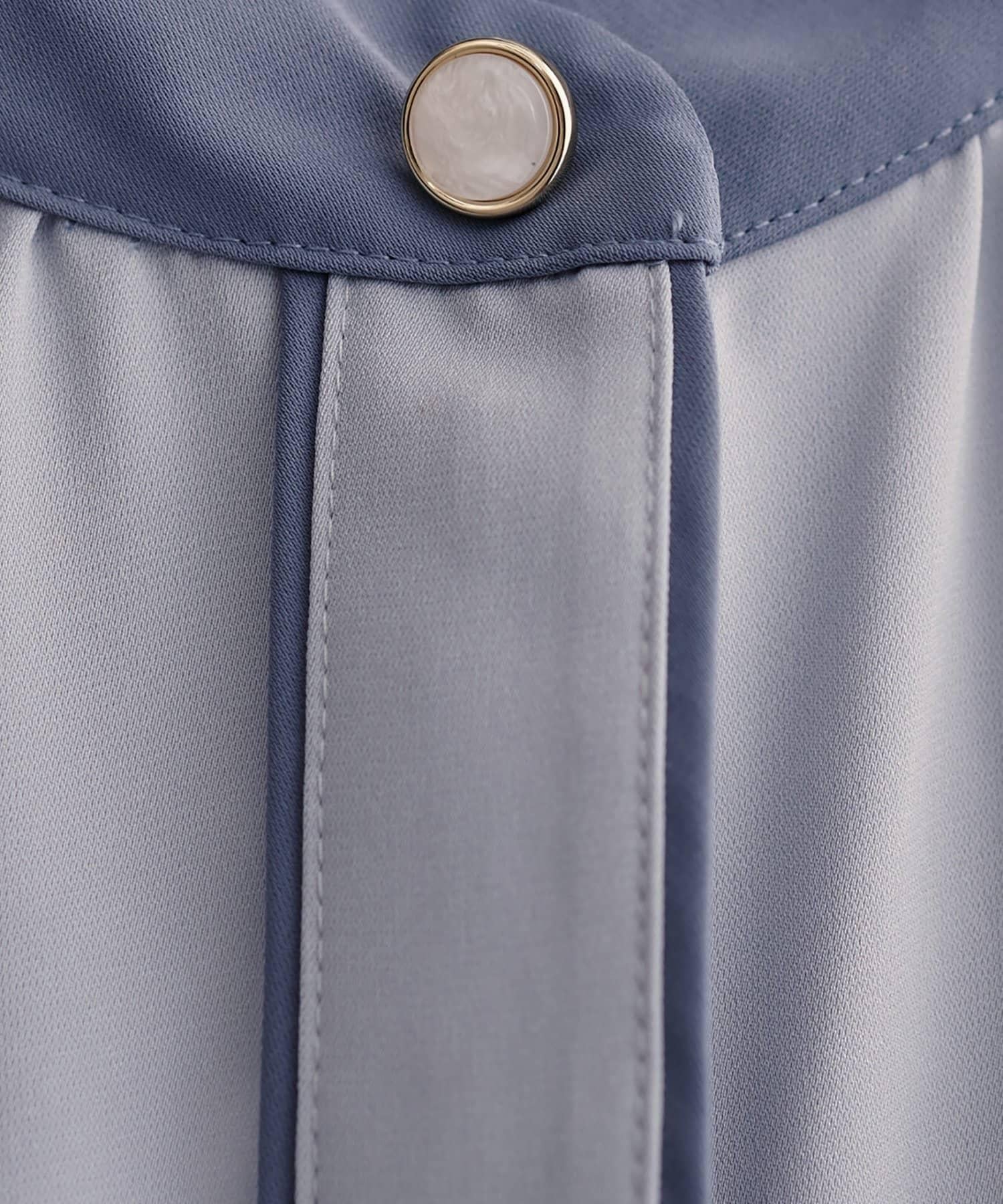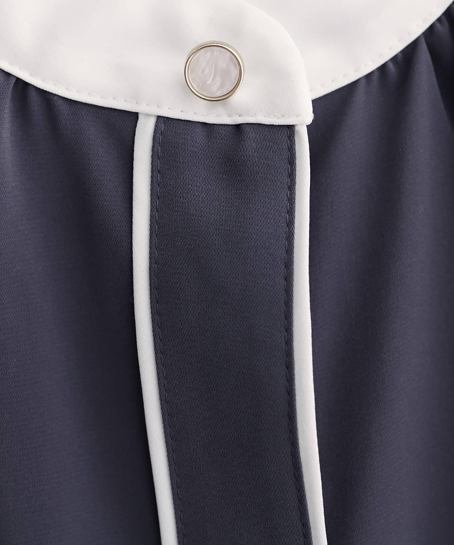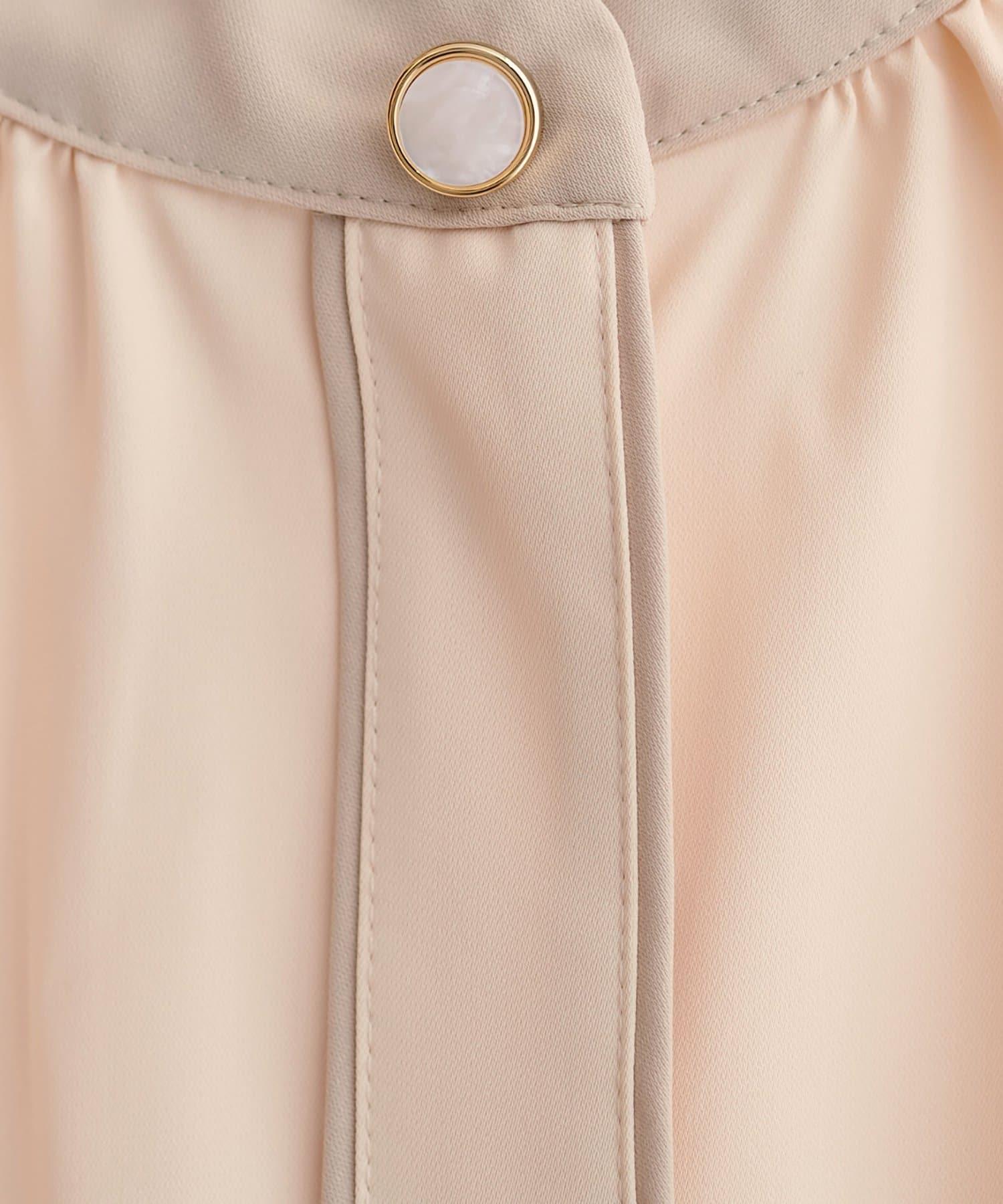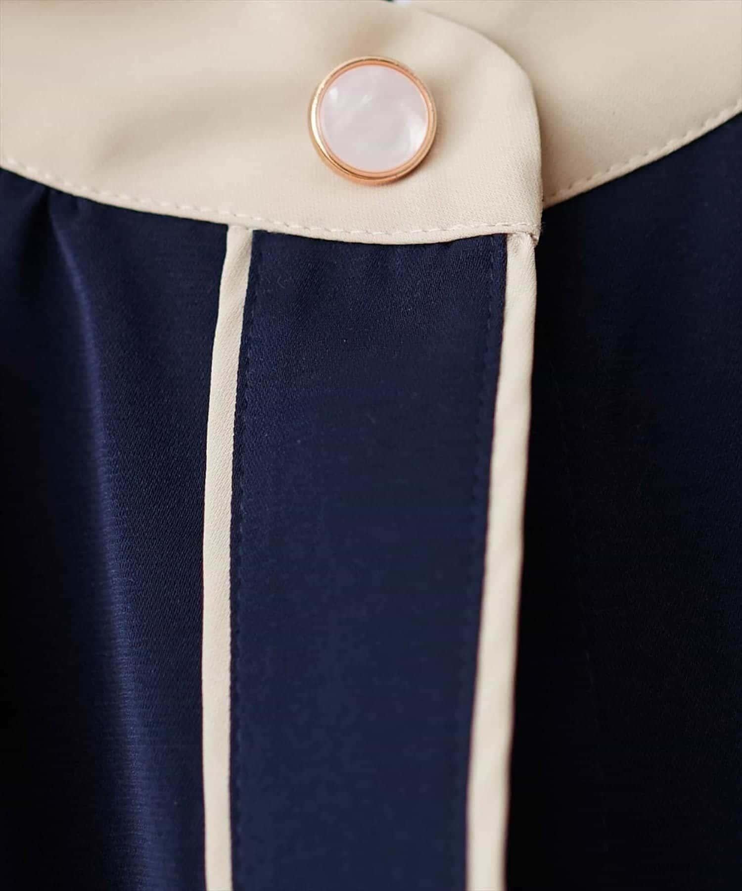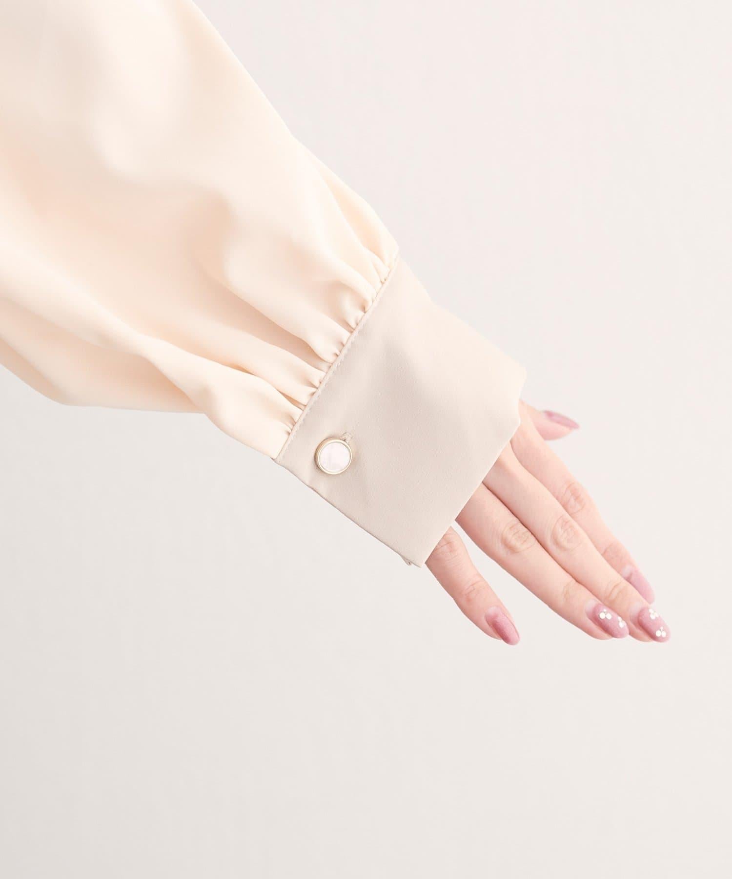這款上衣的領口和袖口採用貝殼材料和金色相結合的紐扣,給人一種優雅的印象、