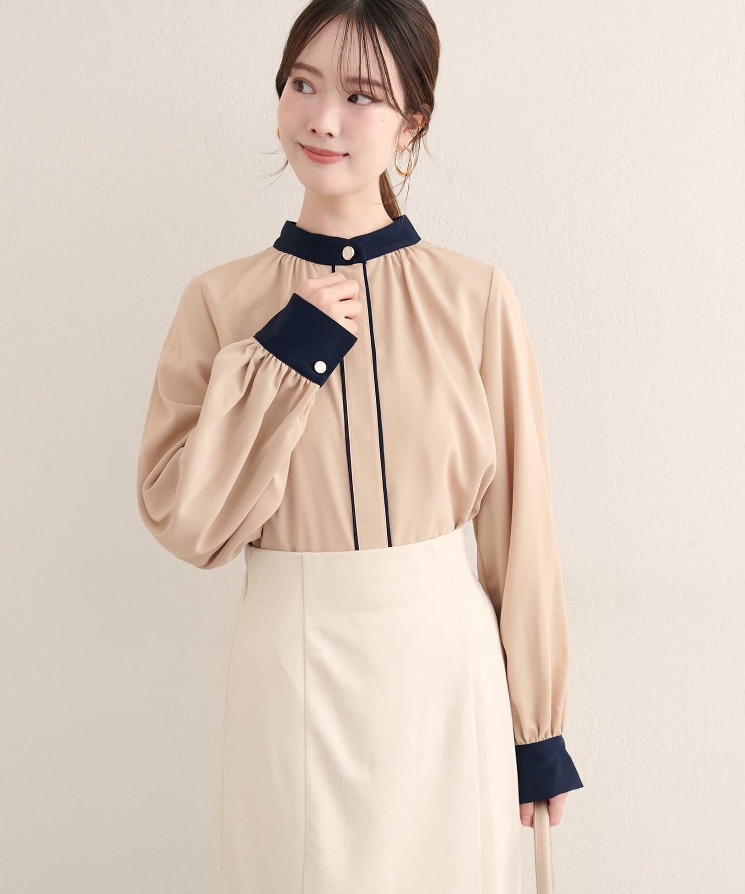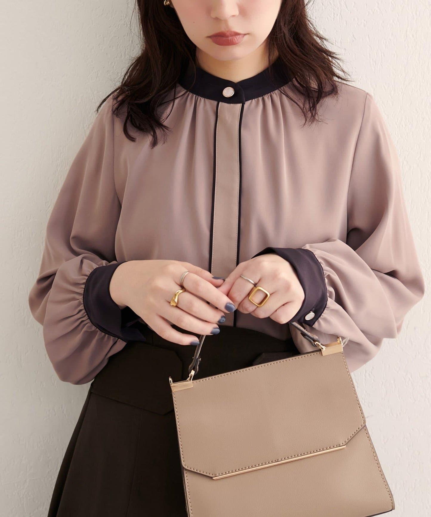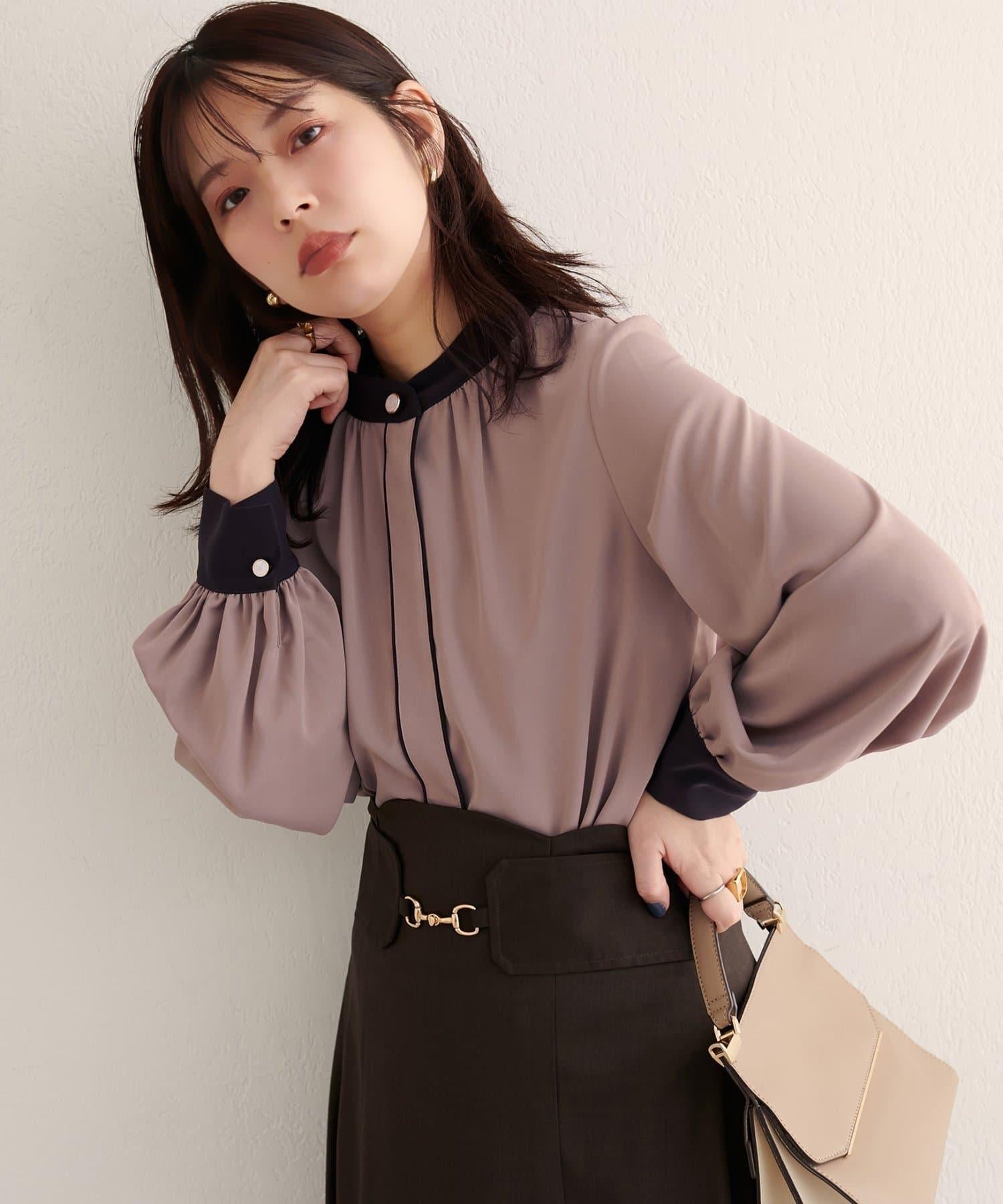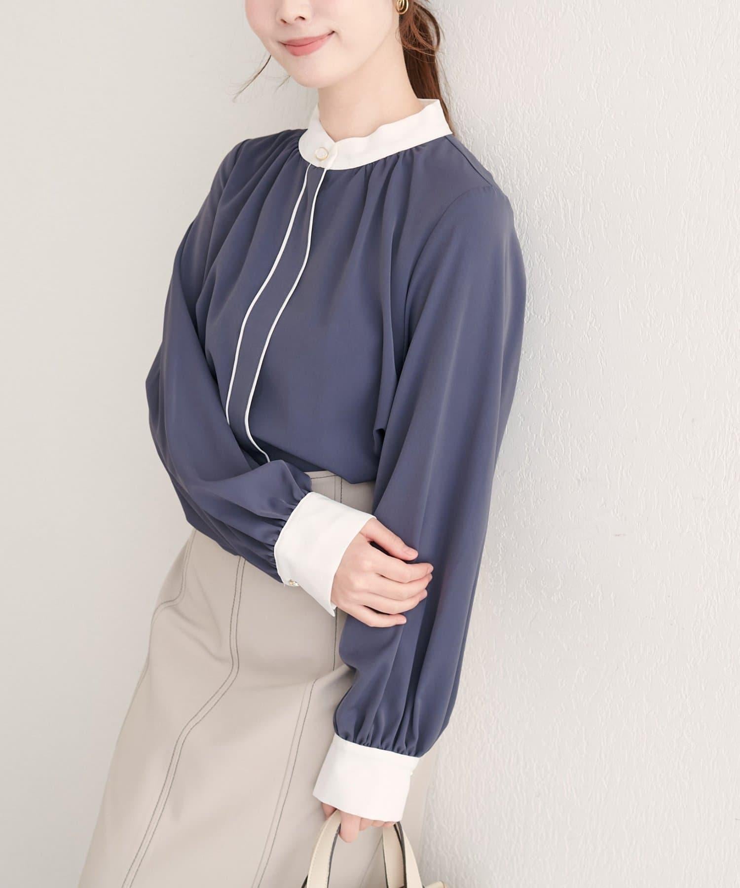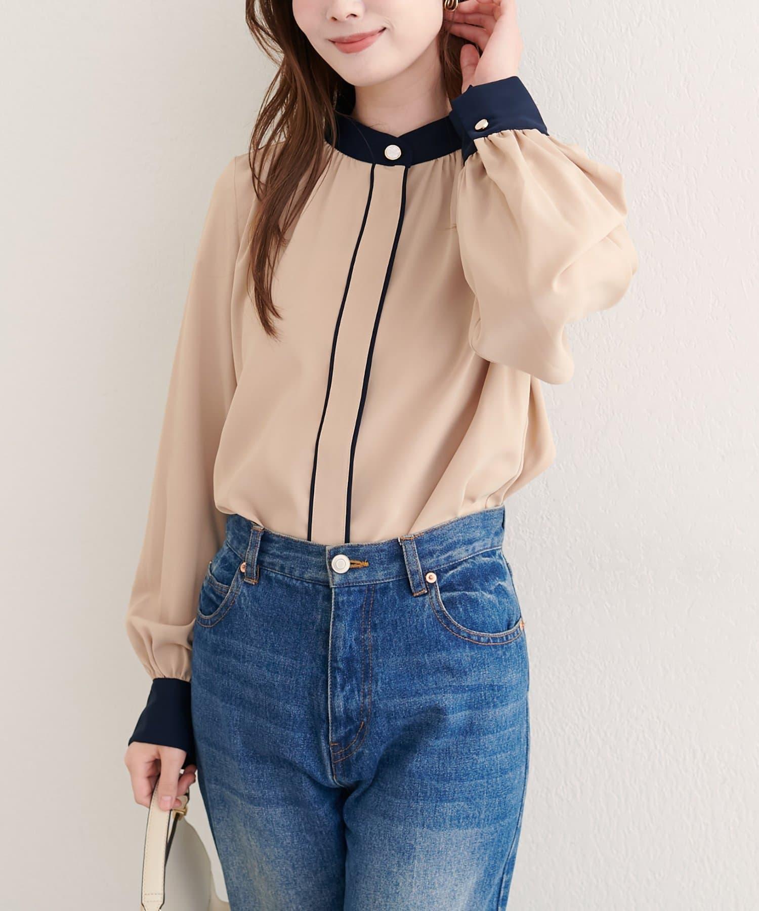 這款上衣的領口和袖口採用貝殼材料和金色相結合的紐扣,給人一種優雅的印象、