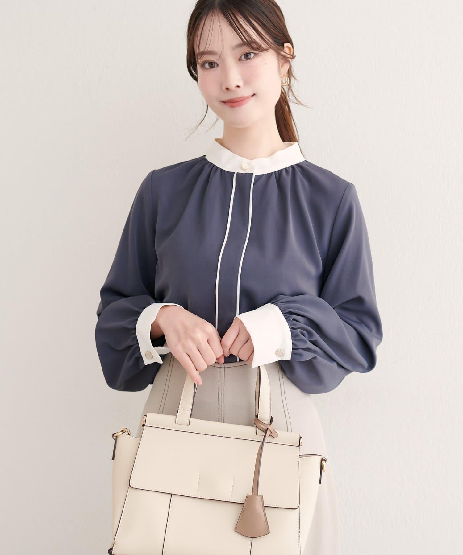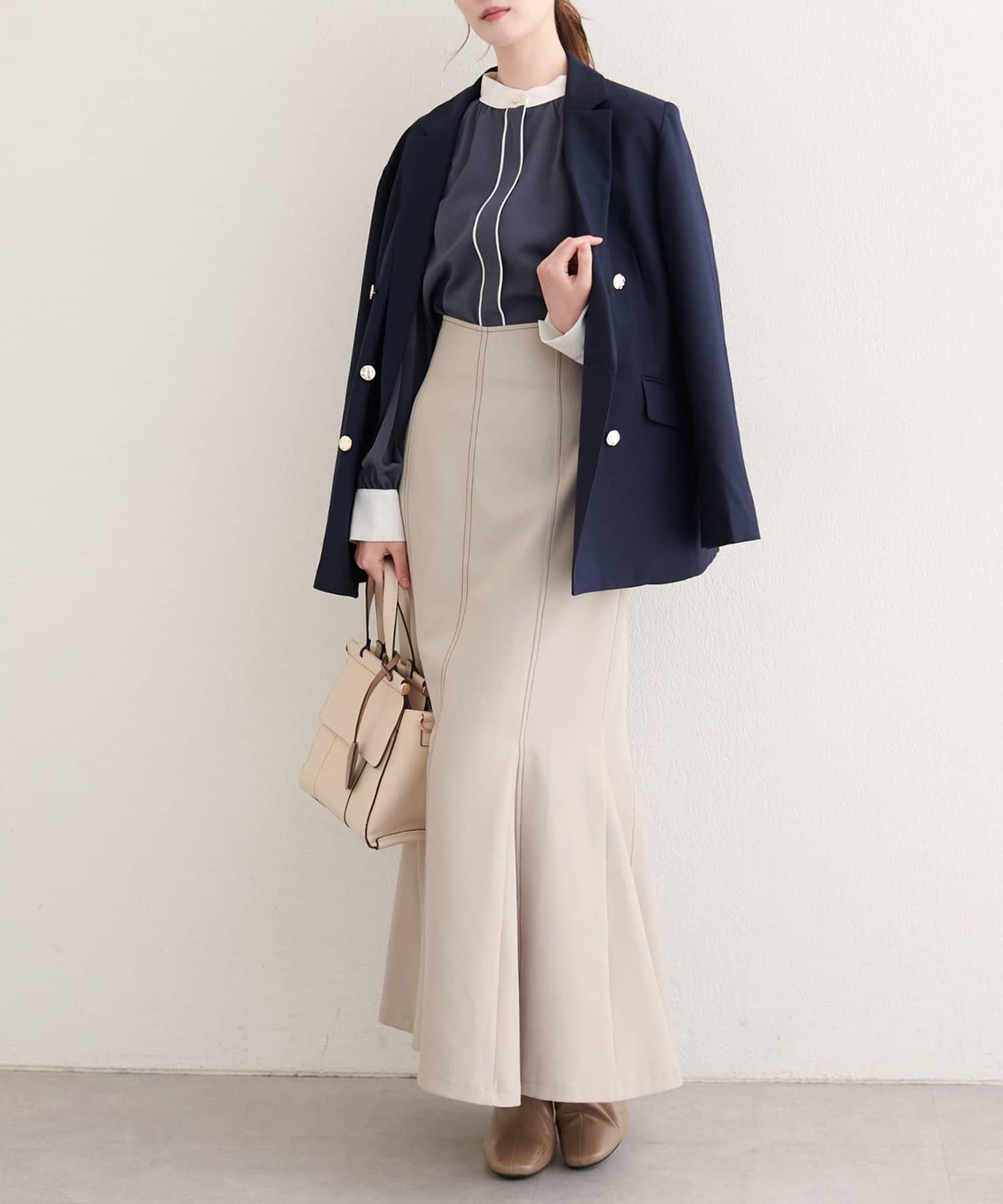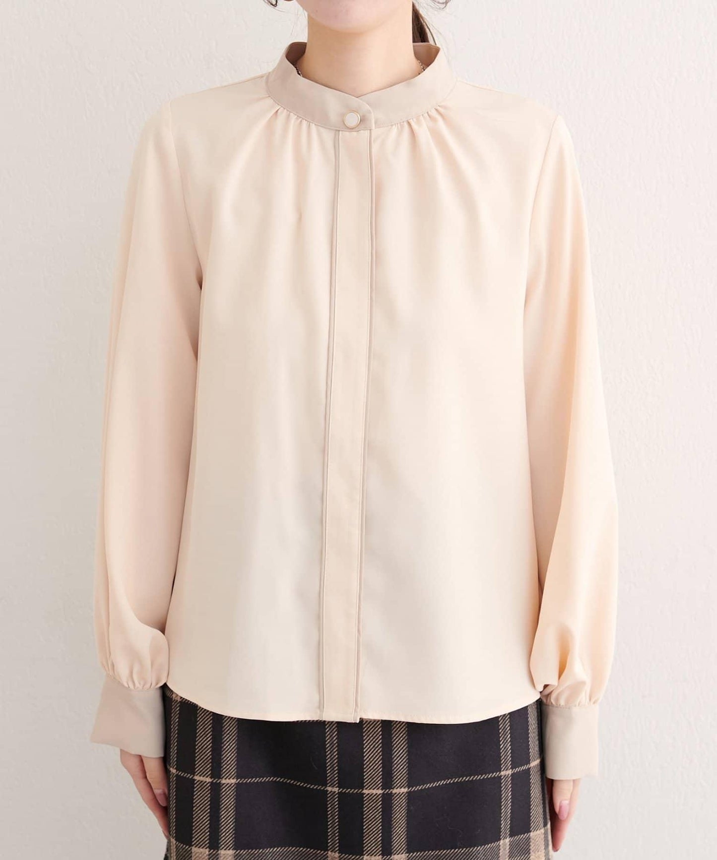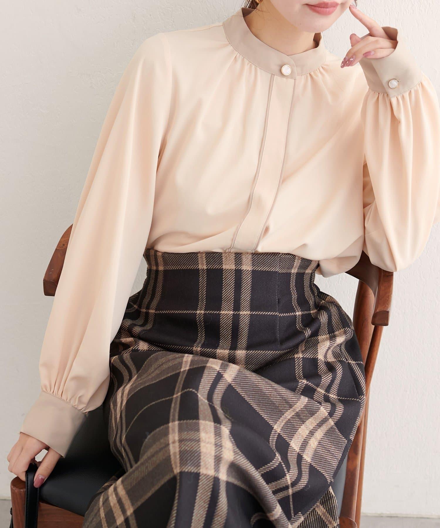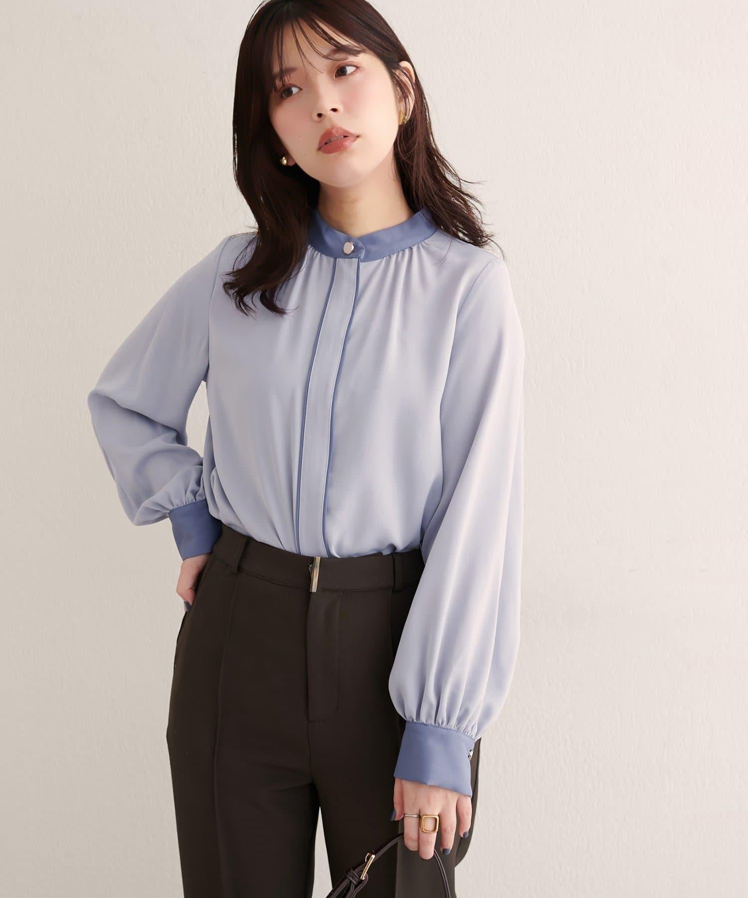 這款上衣的領口和袖口採用貝殼材料和金色相結合的紐扣,給人一種優雅的印象、