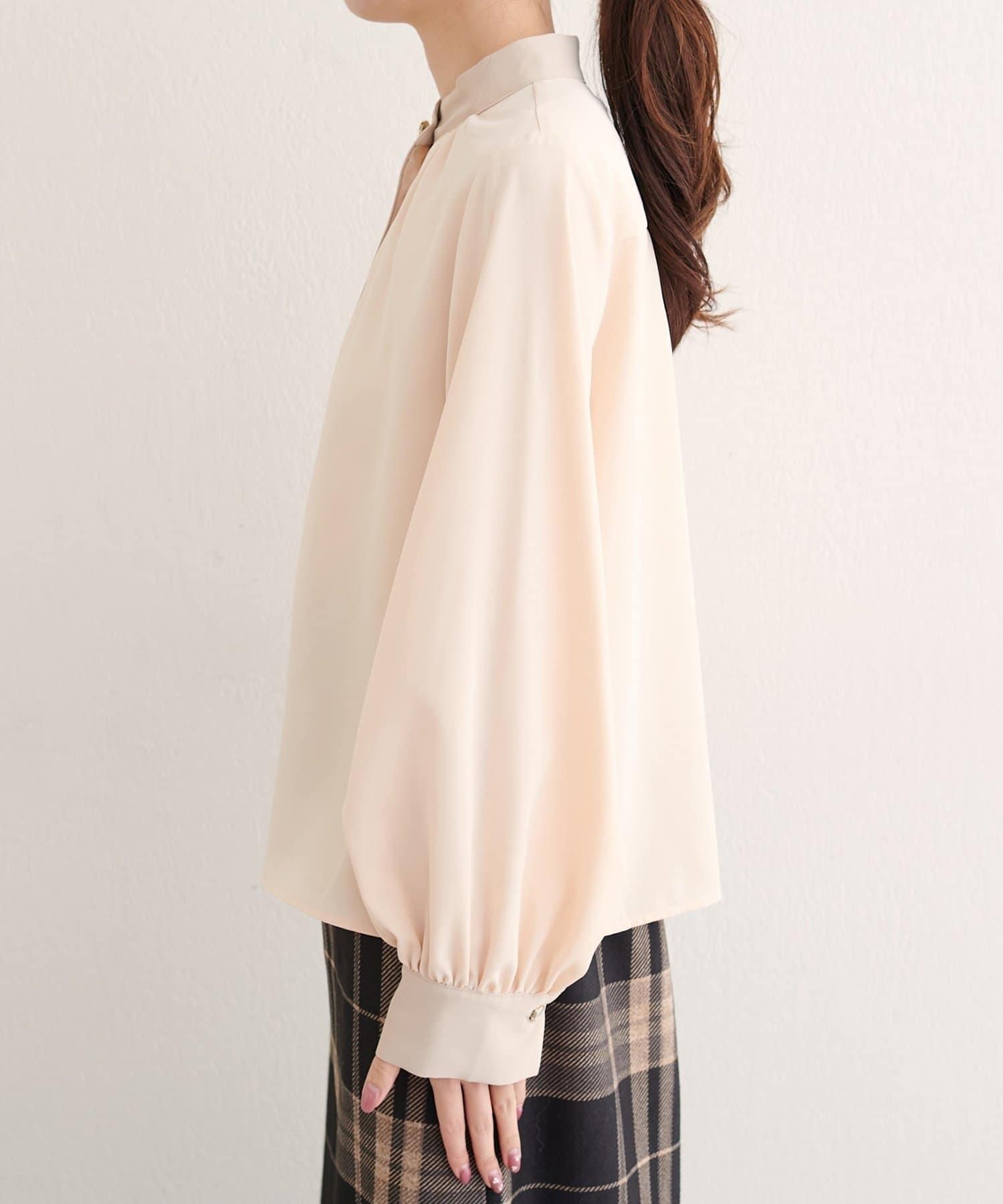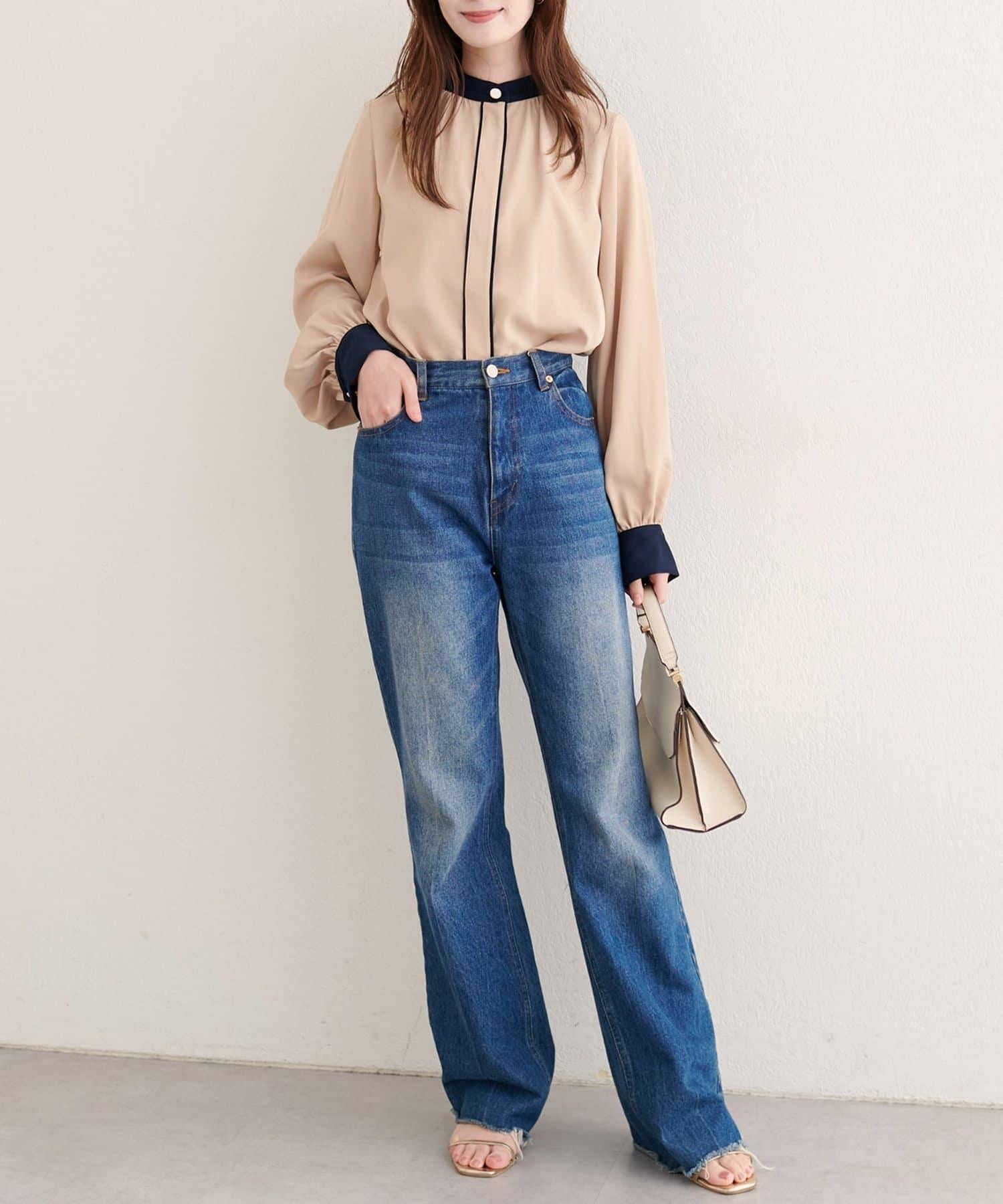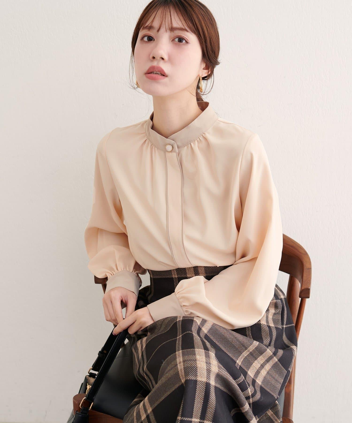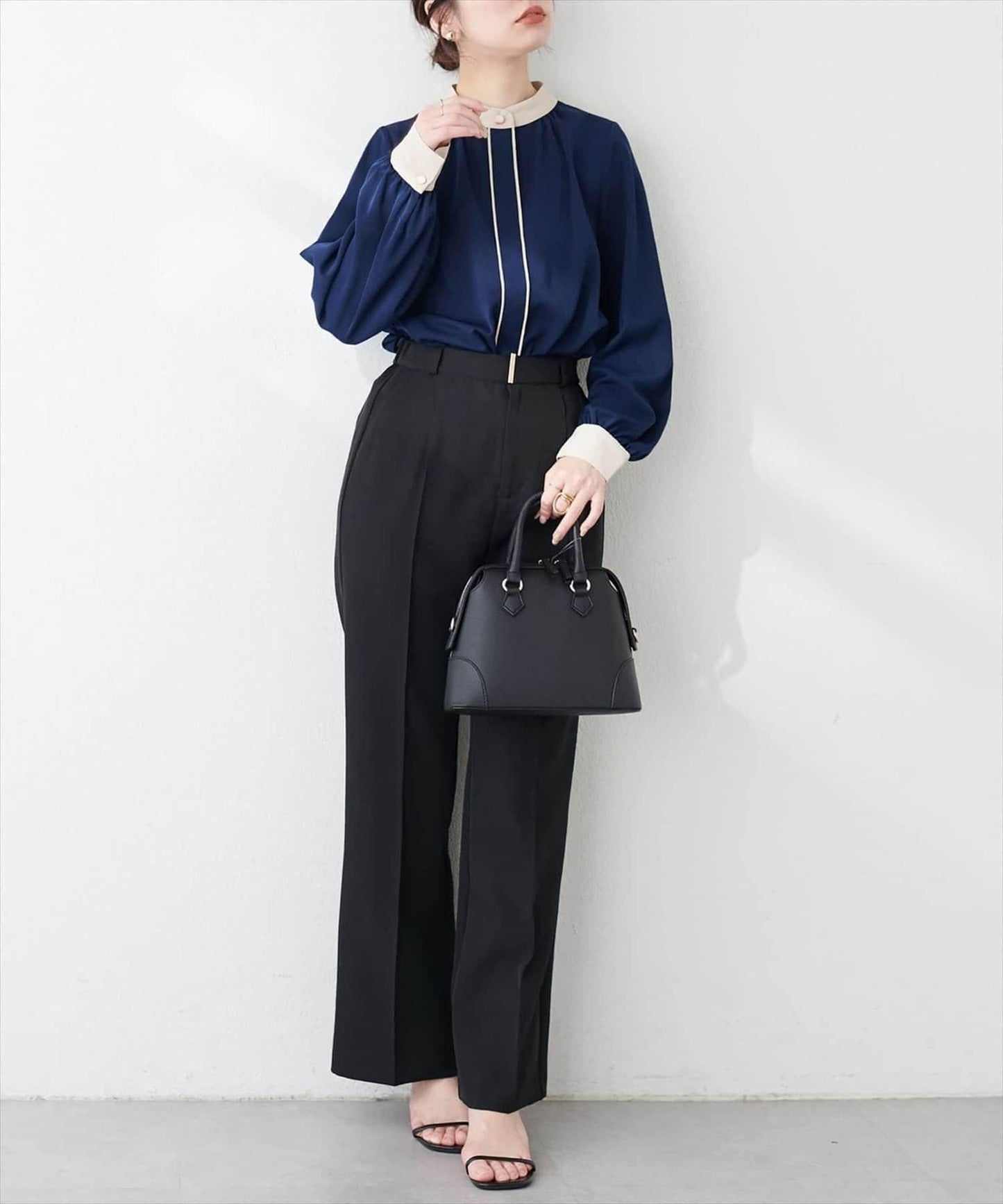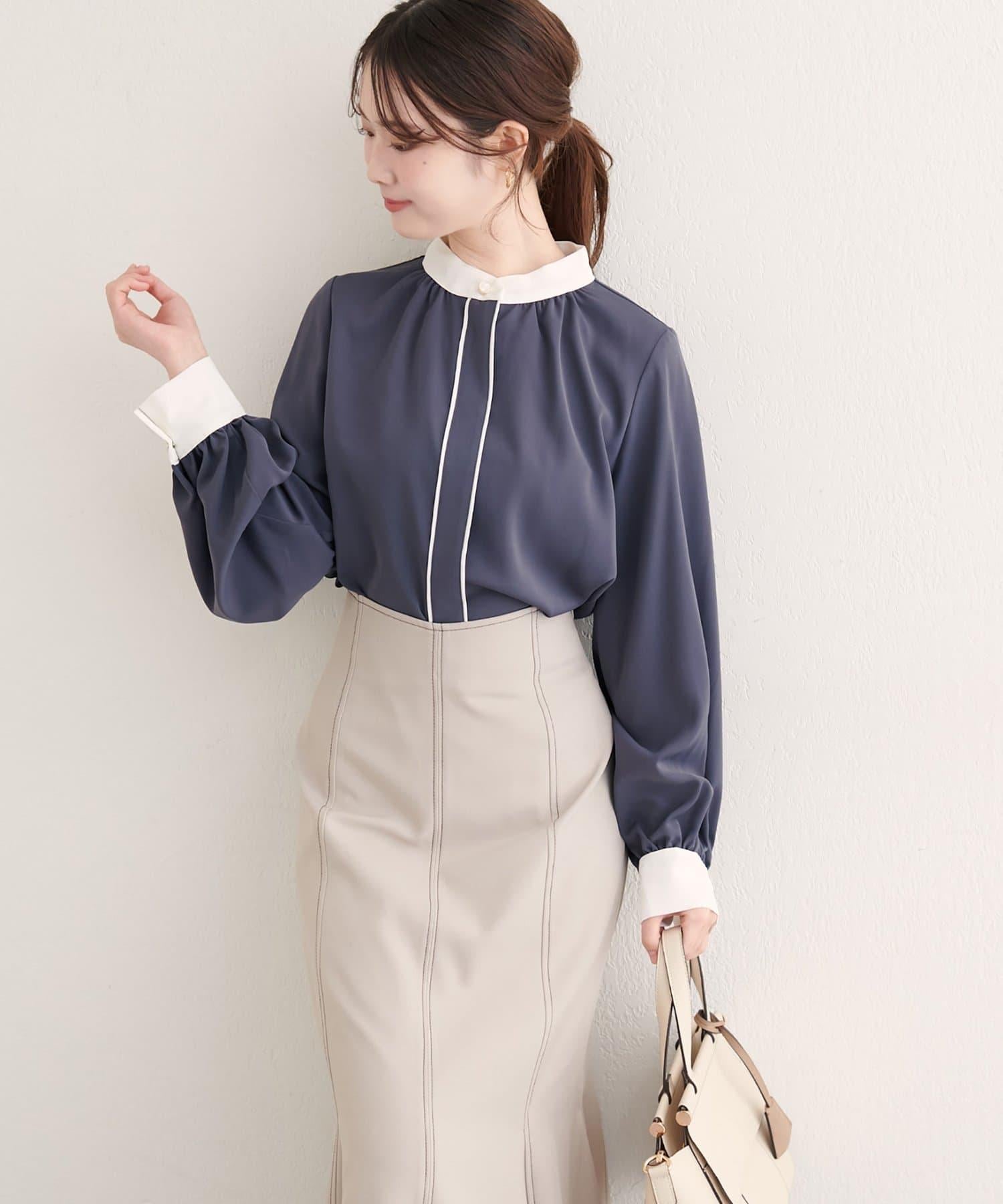 這款上衣的領口和袖口採用貝殼材料和金色相結合的紐扣,給人一種優雅的印象、
