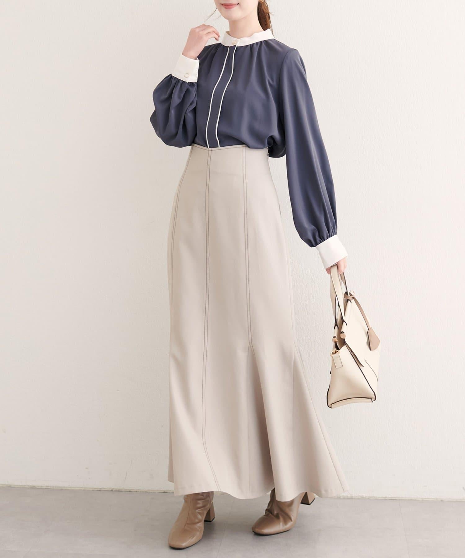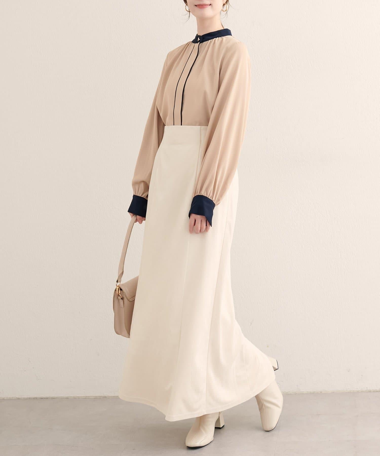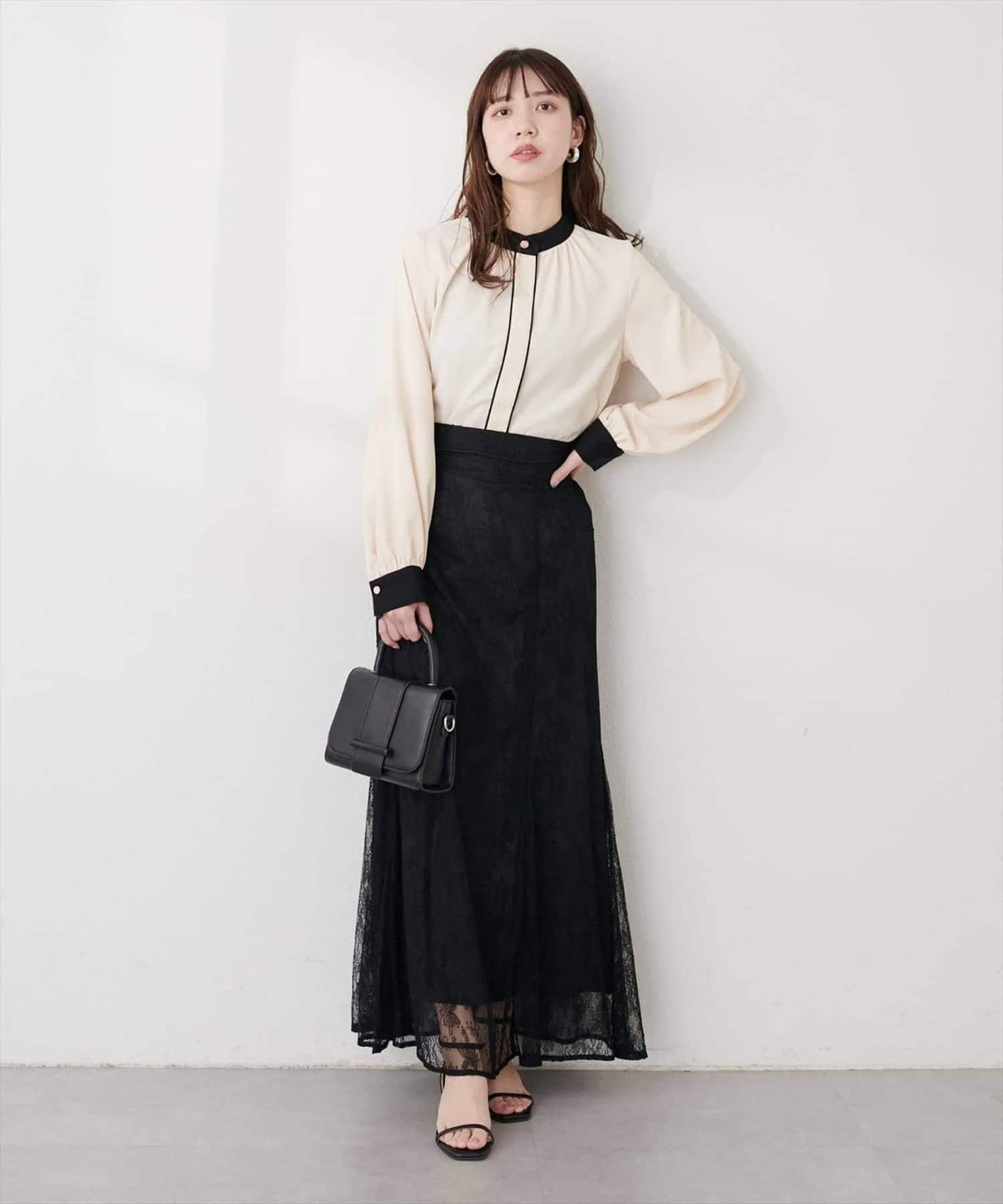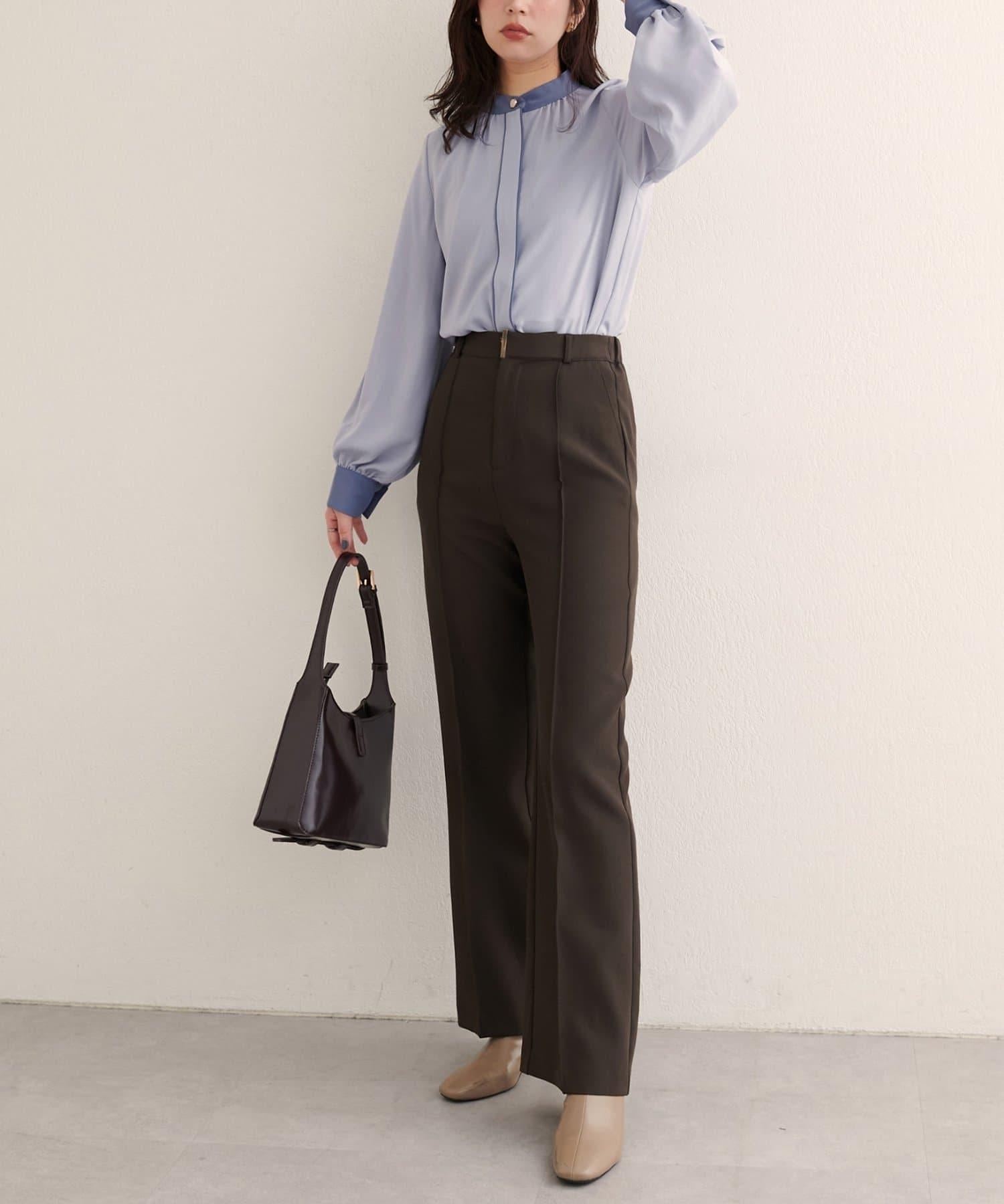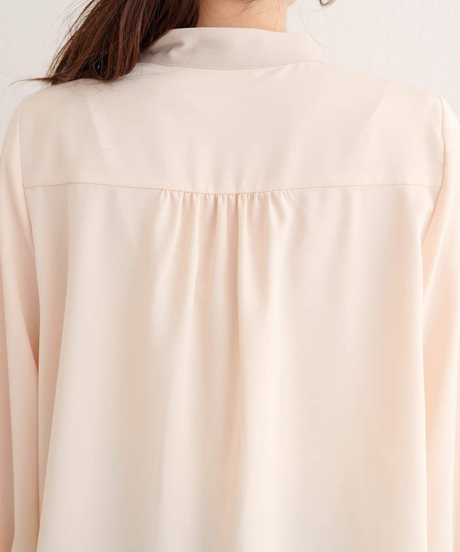 這款上衣的領口和袖口採用貝殼材料和金色相結合的紐扣,給人一種優雅的印象、