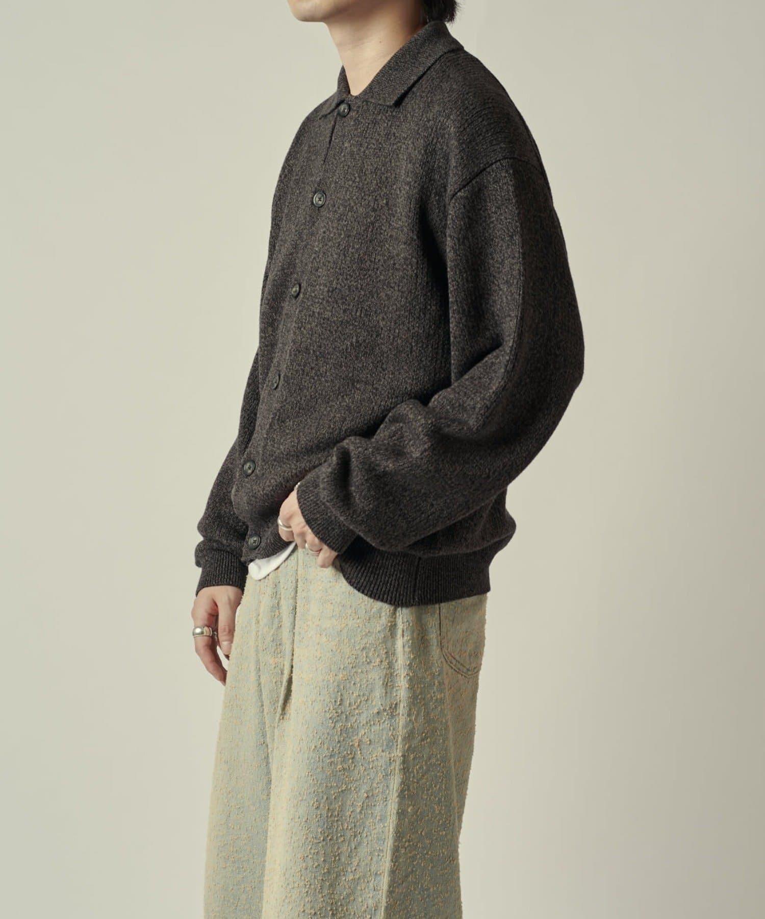 廓形不會太大,穿著時很合身。以襯衫為基礎,設計成開襟羊毛衫。
