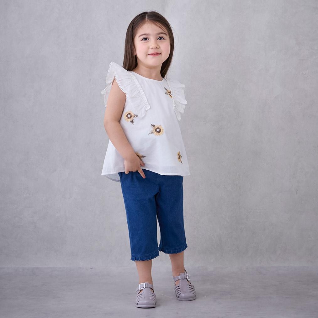 【接觸冷感】七分褶皺荷葉邊褲