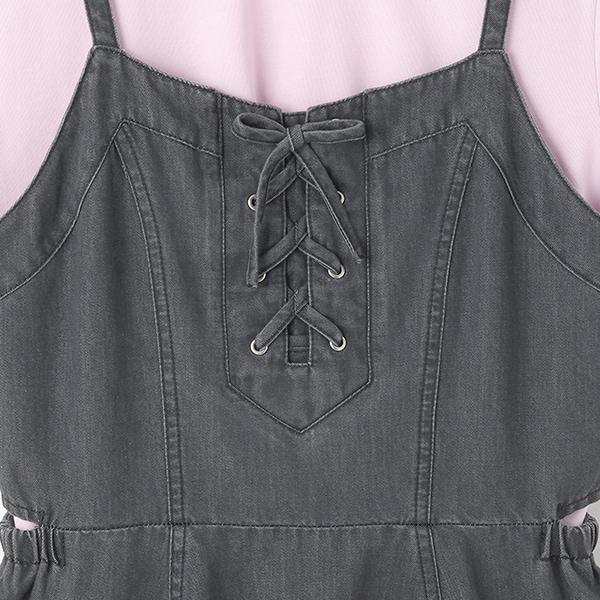 【接觸冷感】側開衩繫帶吊帶裙套裝
