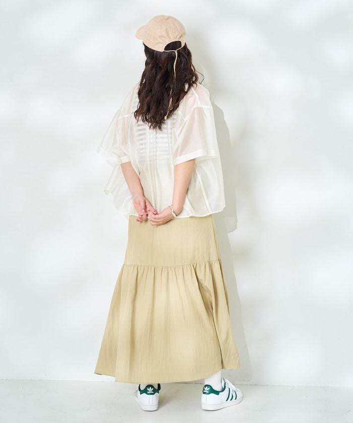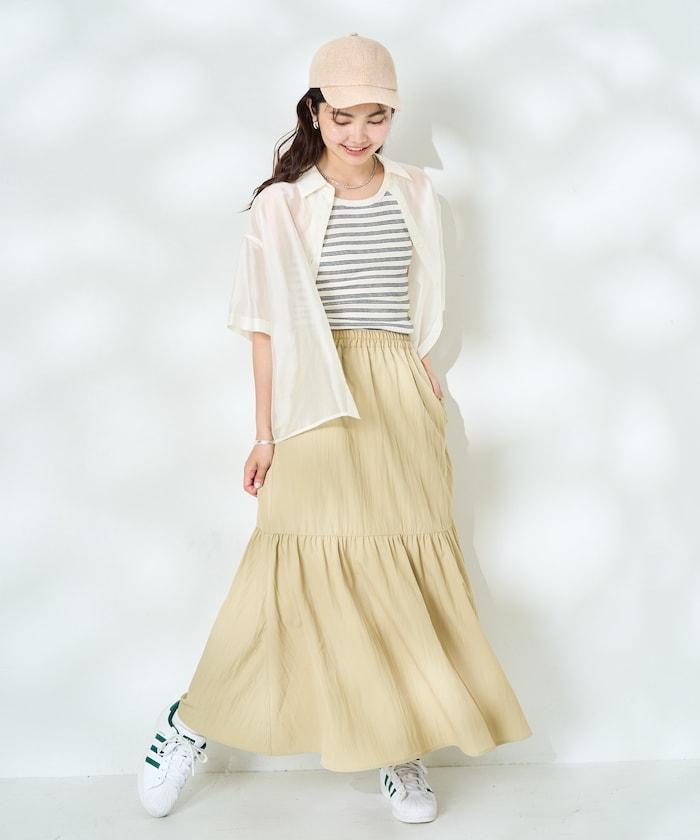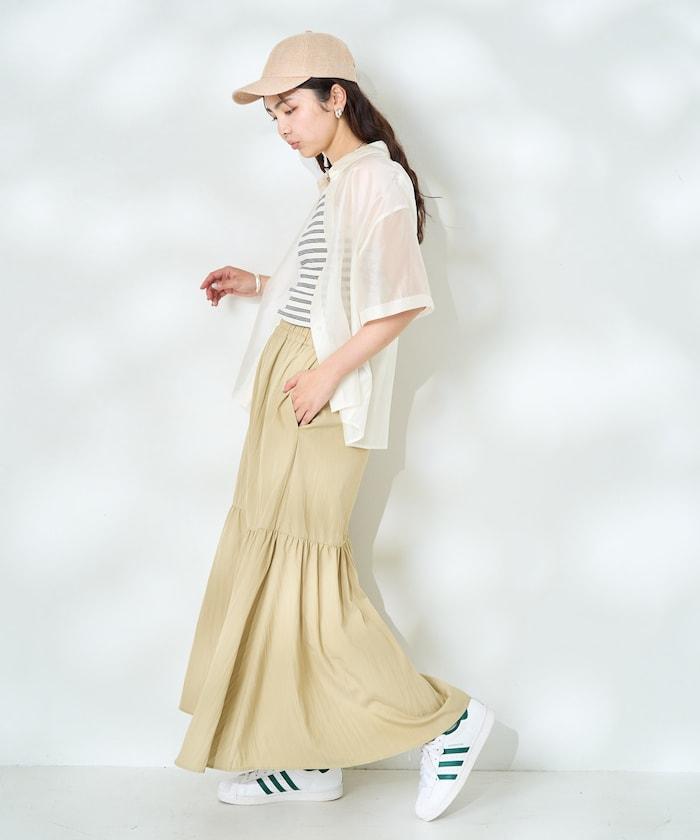 搭配印花 T 恤或背心,給人休閒又不失女人味的印象。