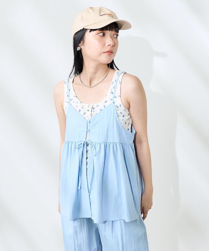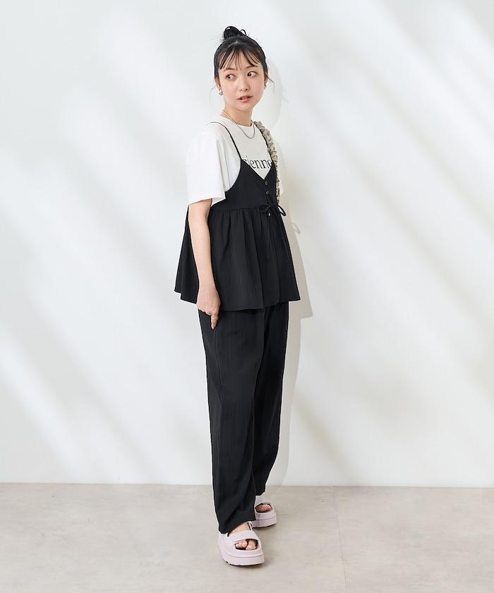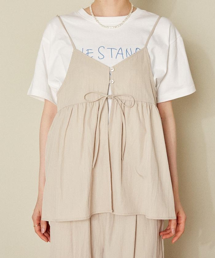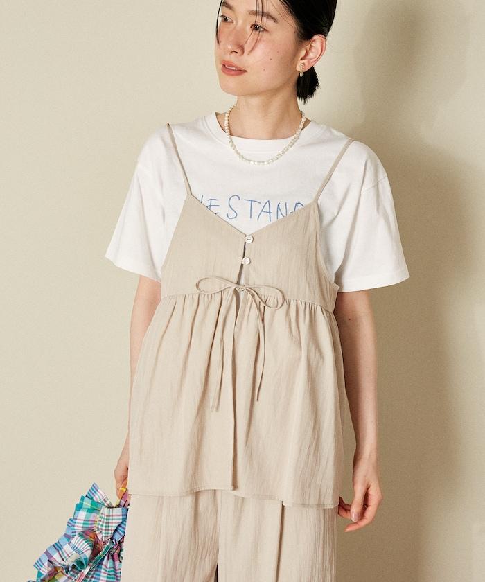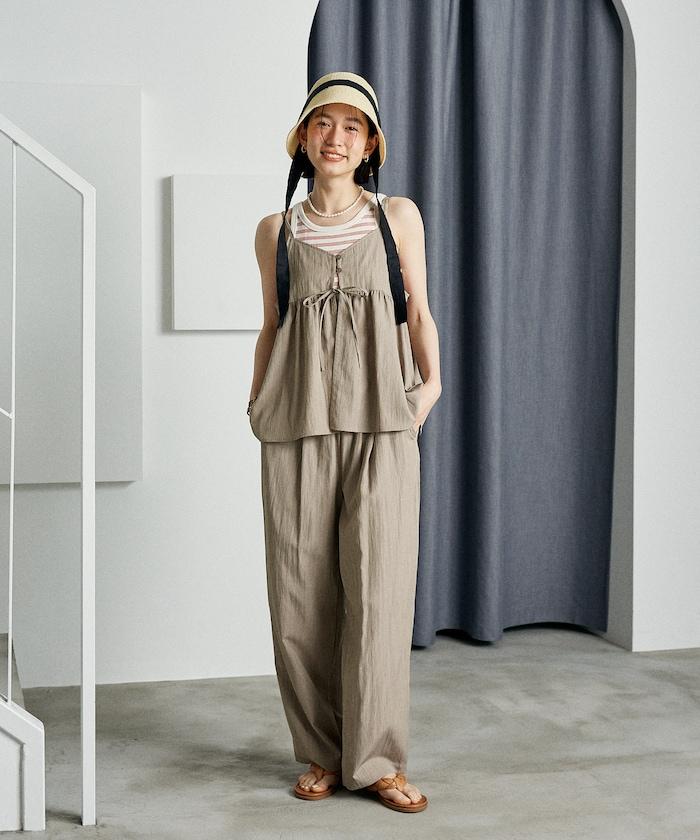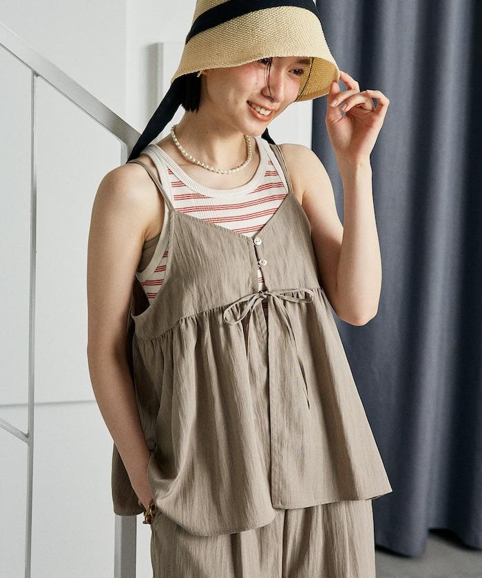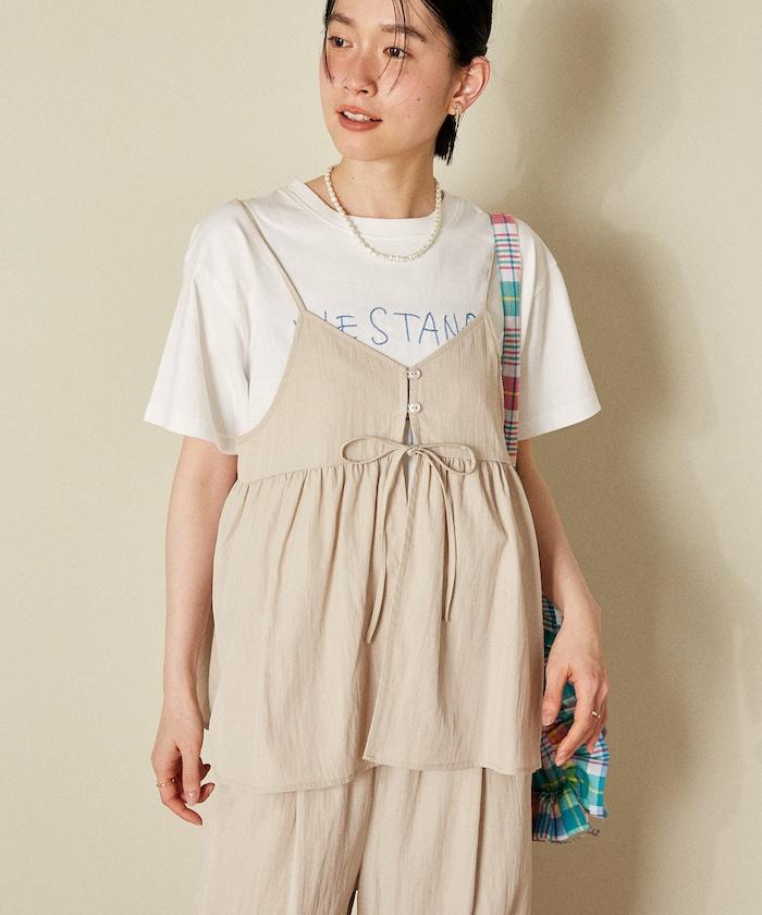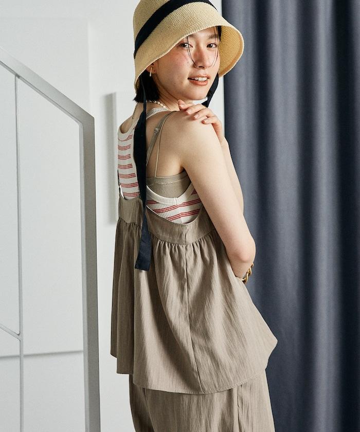 <接觸冷感> 帶蝴蝶結的吊帶背心套裝