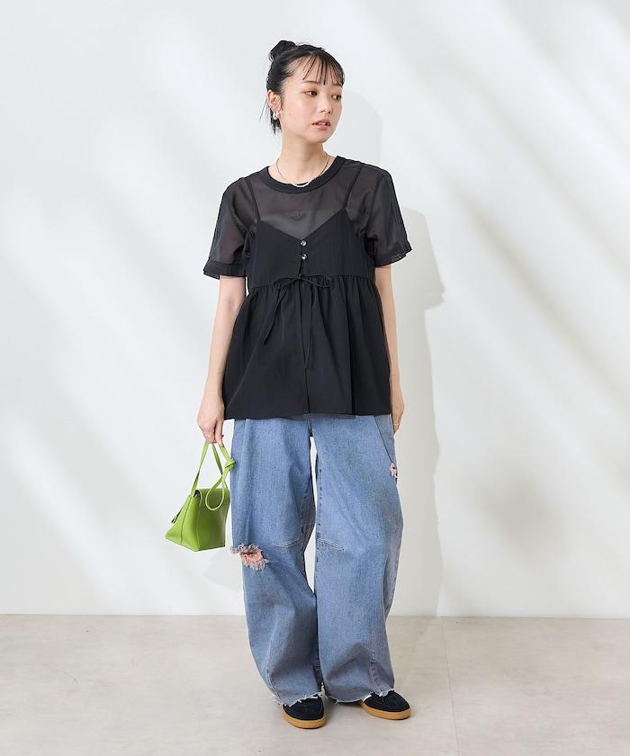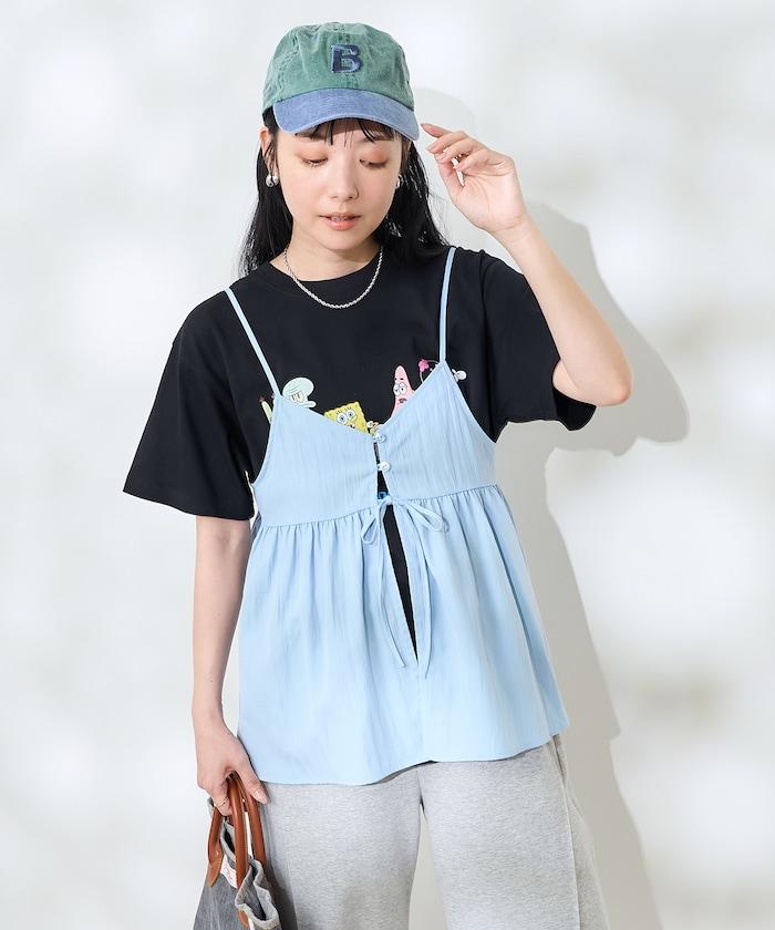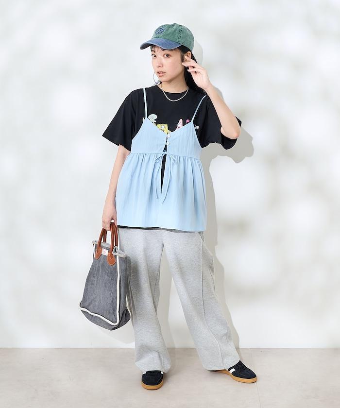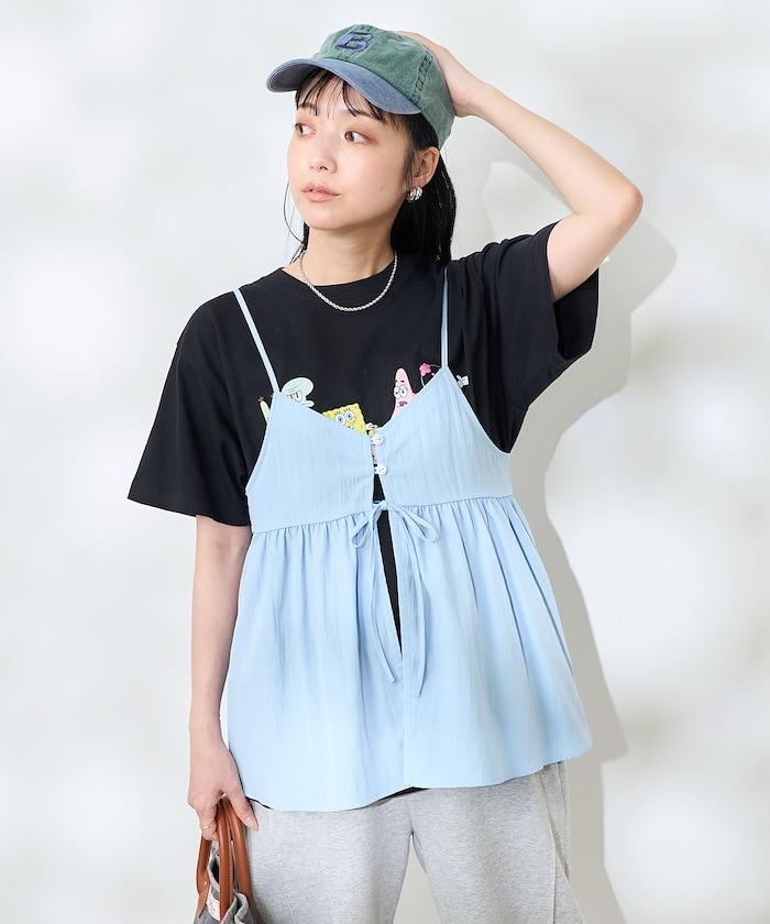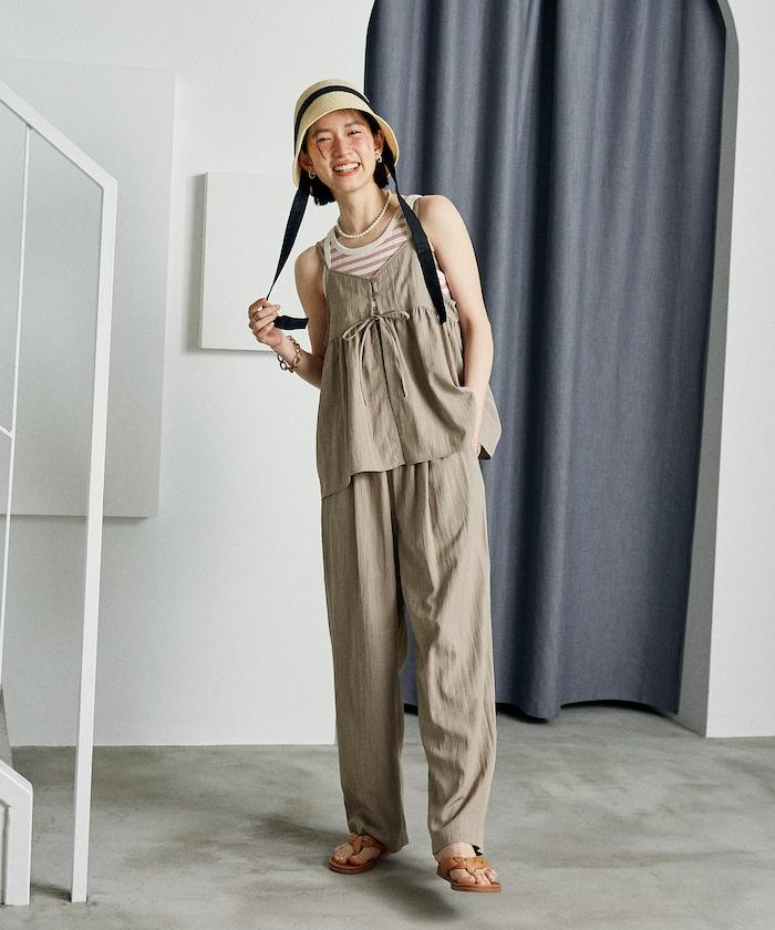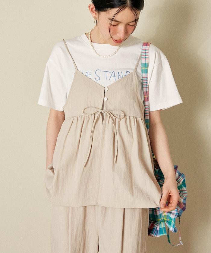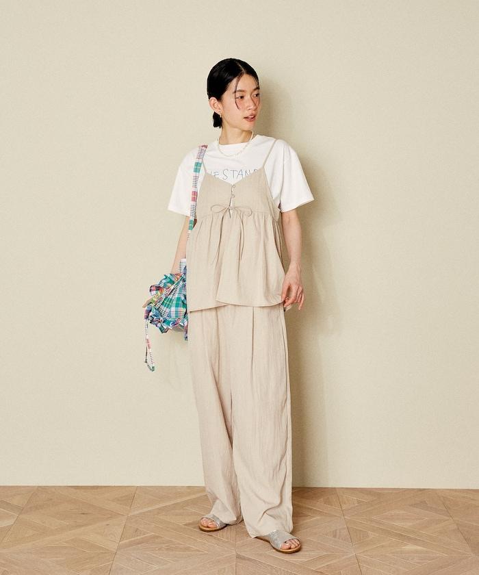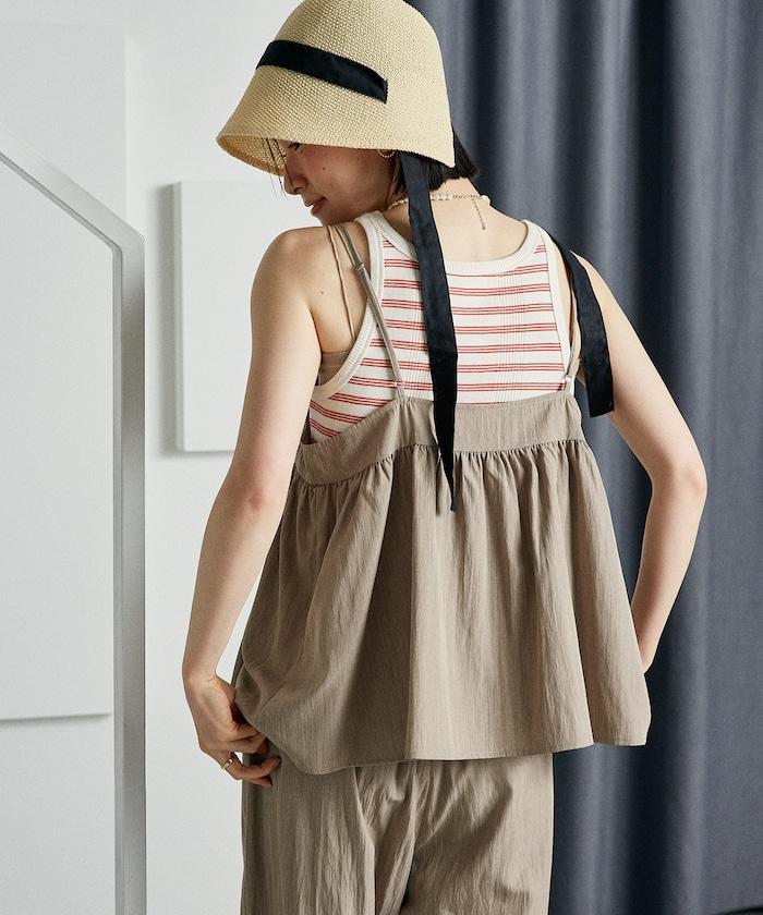 <接觸冷感> 帶蝴蝶結的吊帶背心套裝