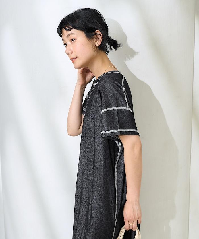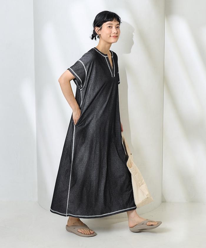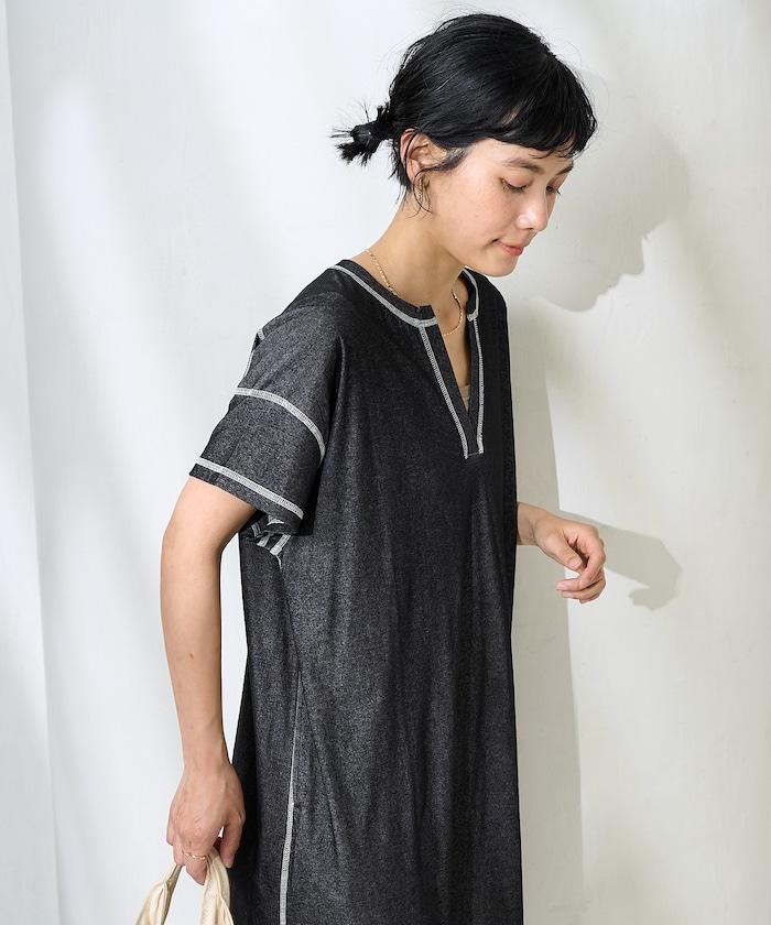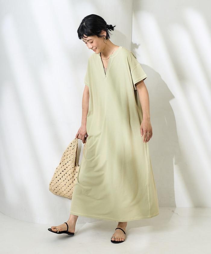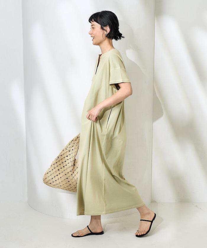 <接觸冷感>混紡立領連衣裙
