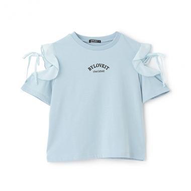 【接觸冷感】肩部蝴蝶結後背愛心T恤