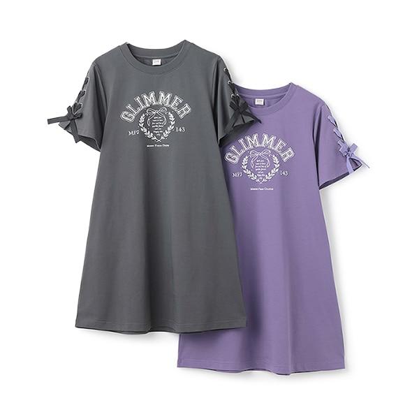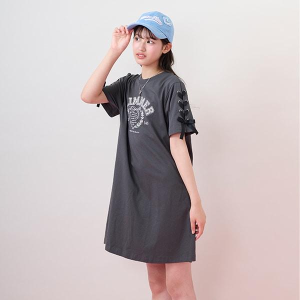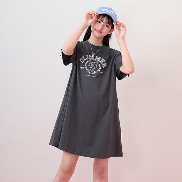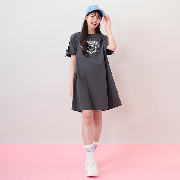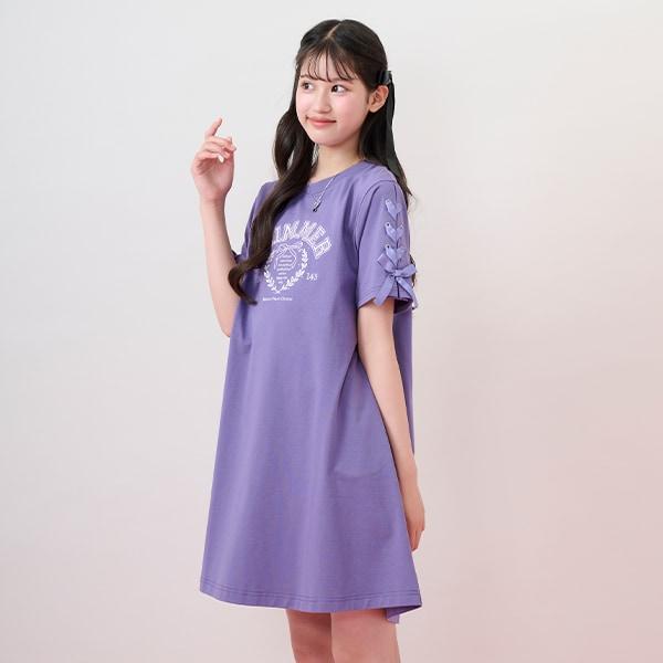 【接觸冷感】蝴蝶結學院標誌T恤連衣裙