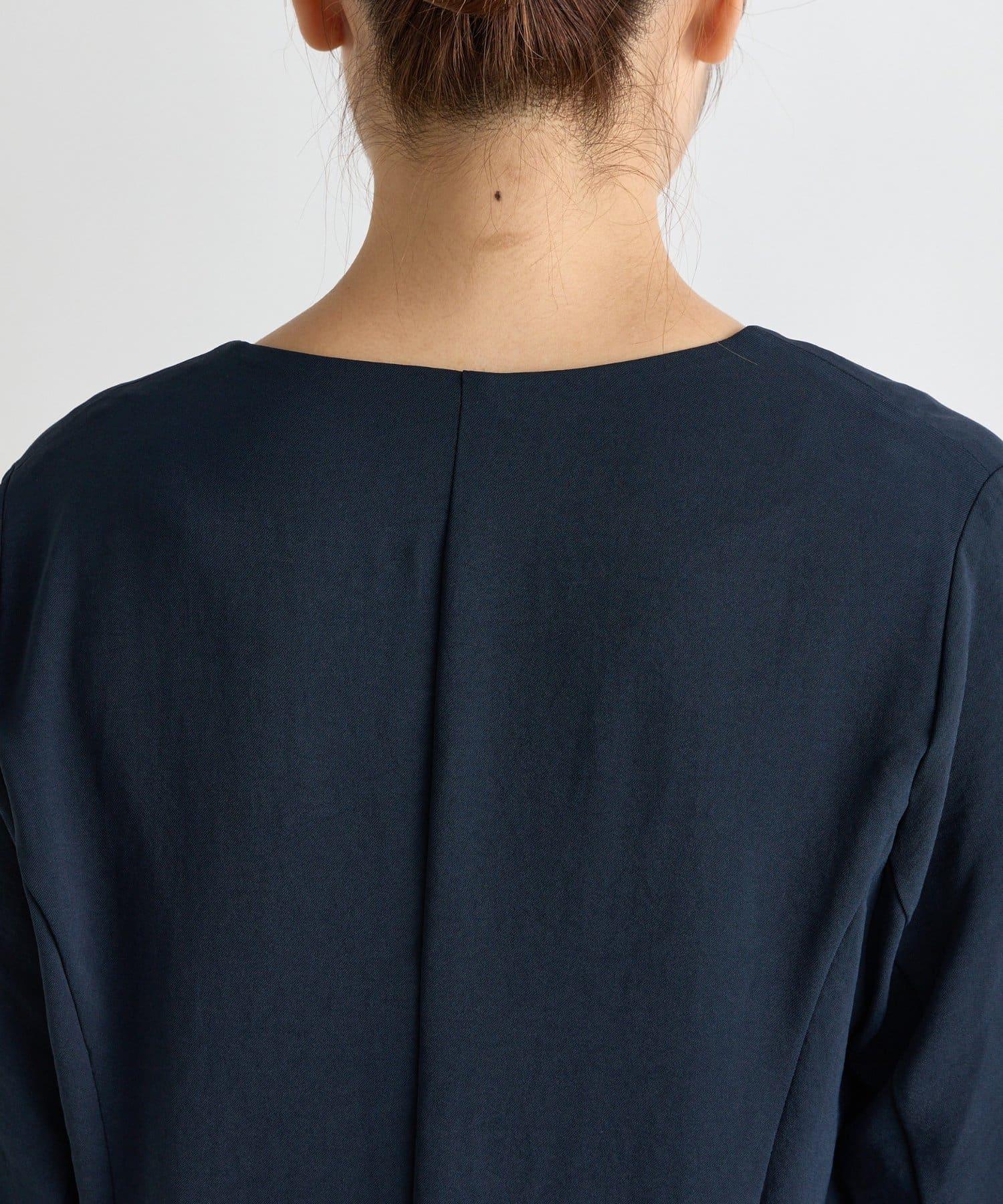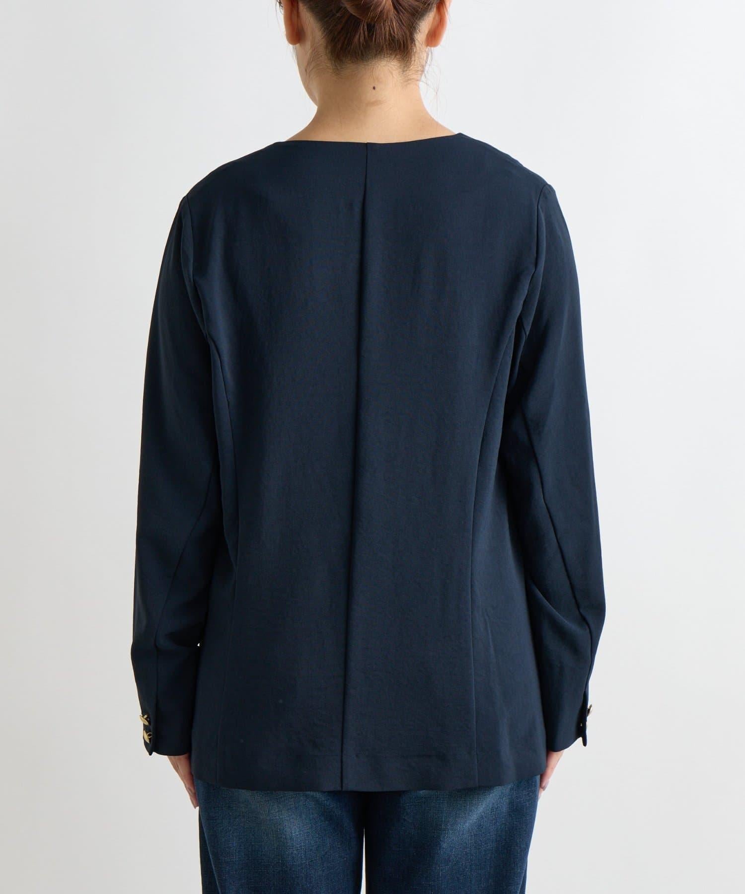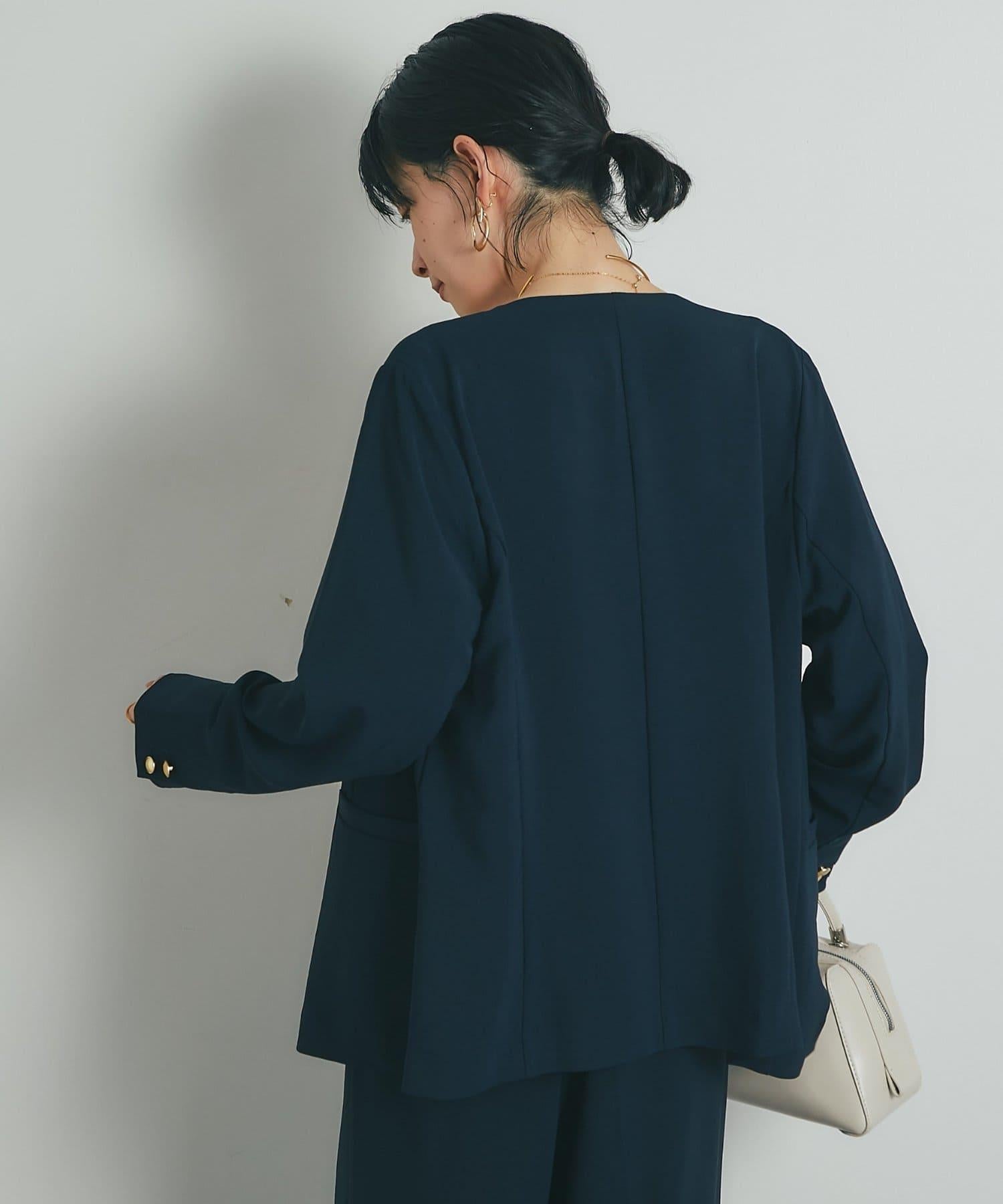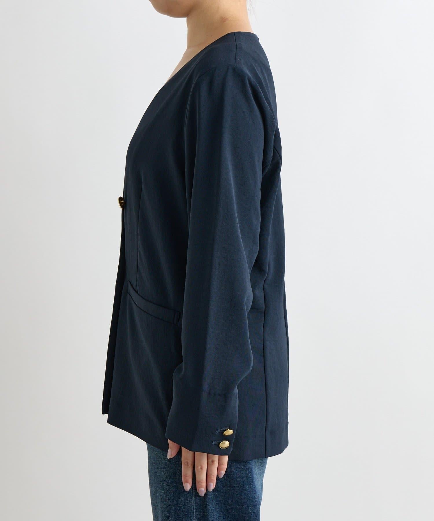 無領設計修飾頸部線條,輕鬆打造多層次風格。