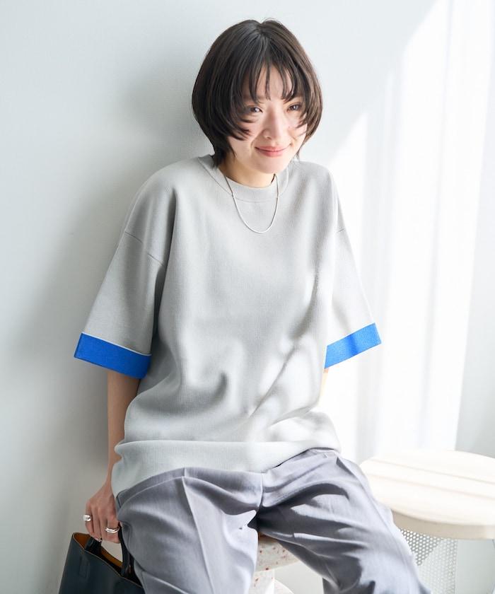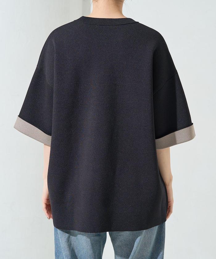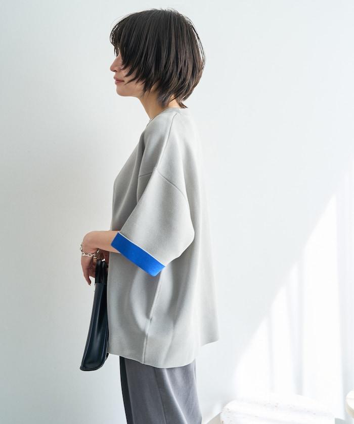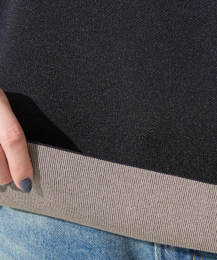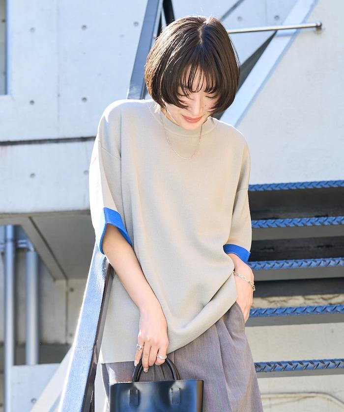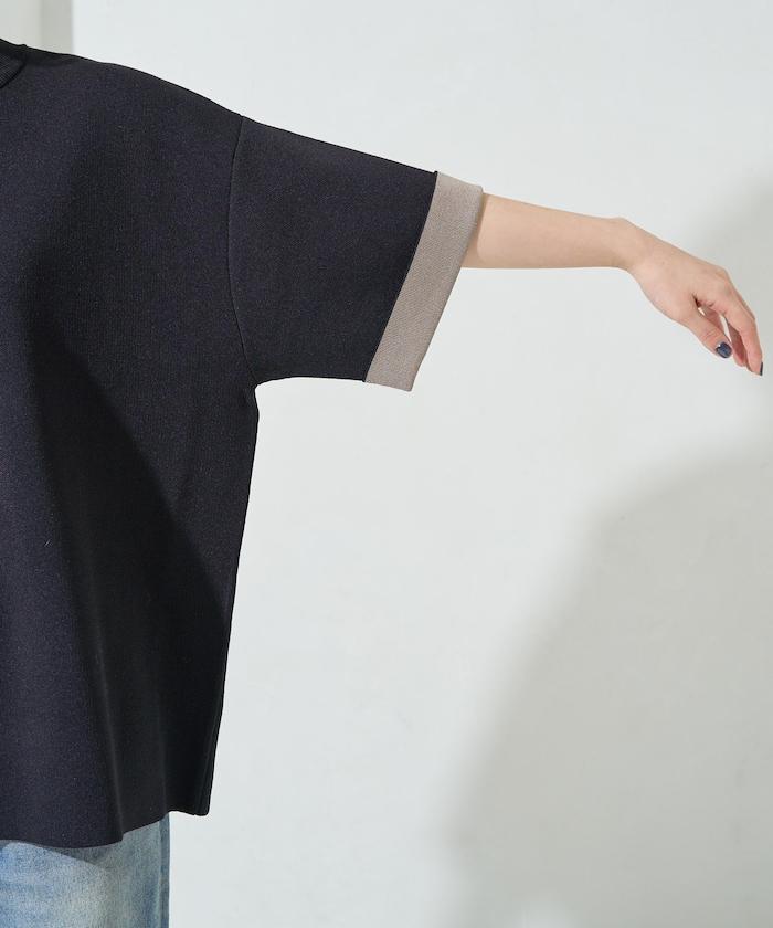 接觸冷感 針織 襯色 半袖 拉鍊衫【限定推出】