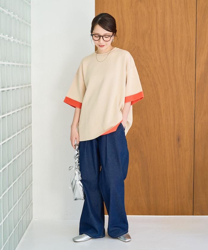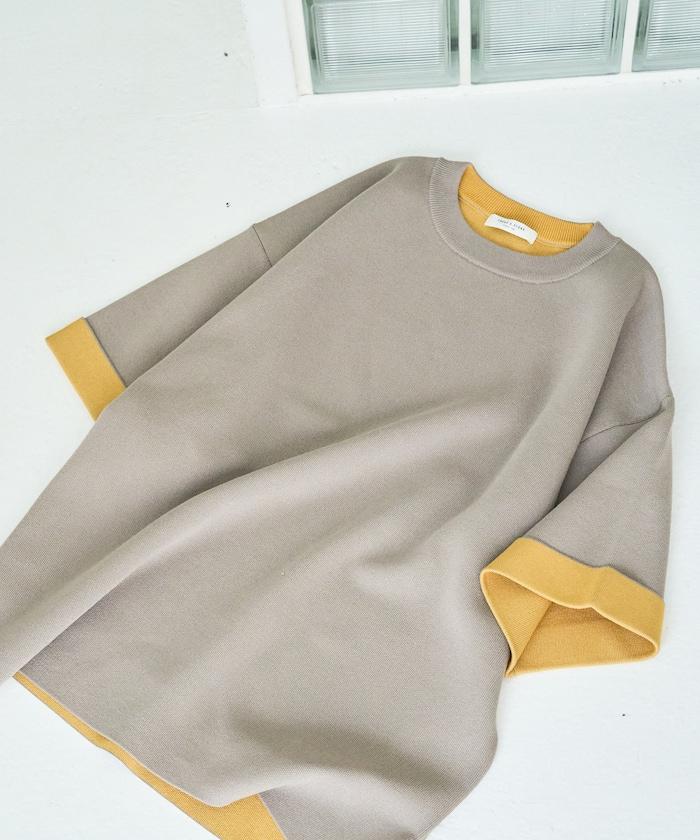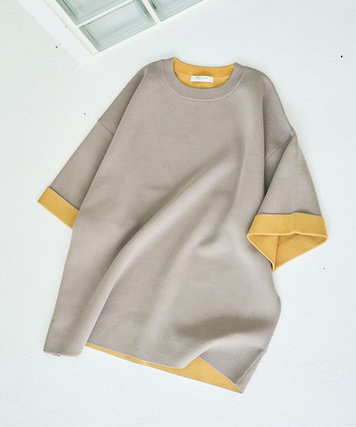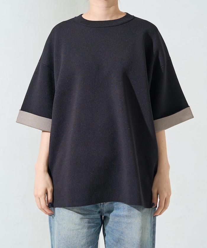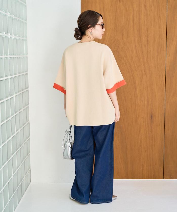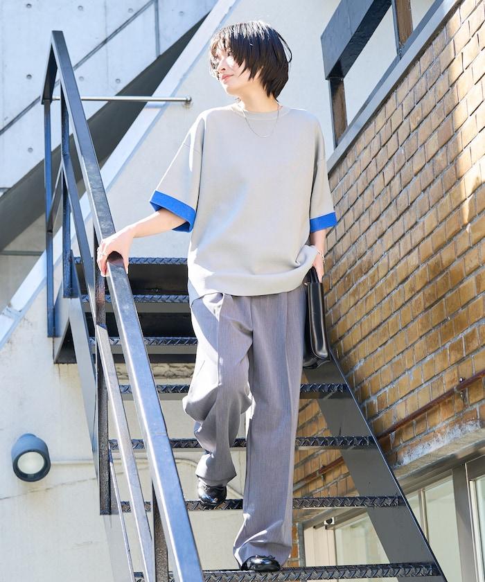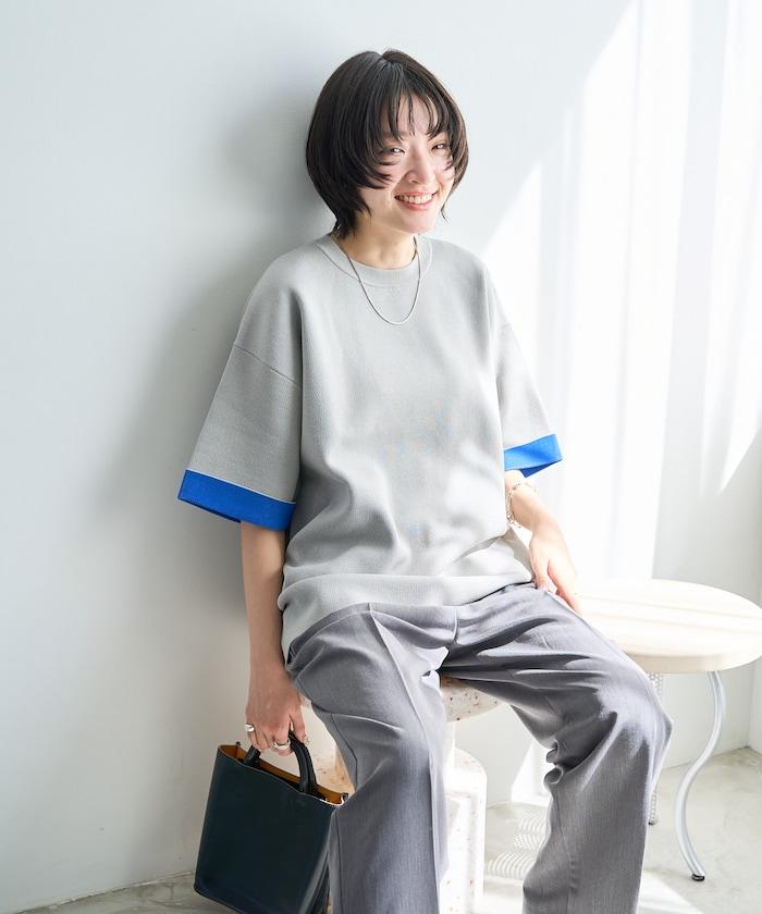 接觸冷感 針織 襯色 半袖 拉鍊衫【限定推出】
