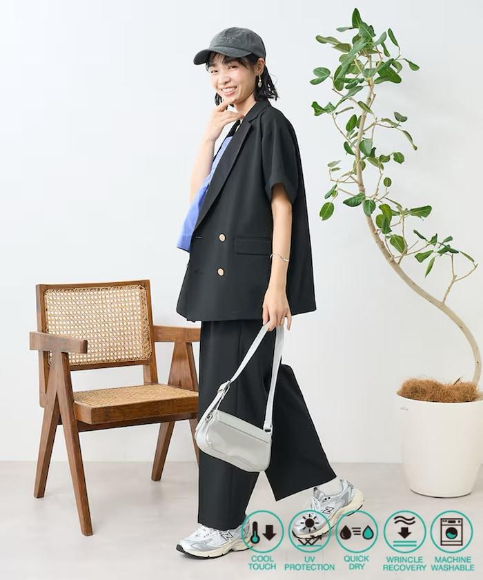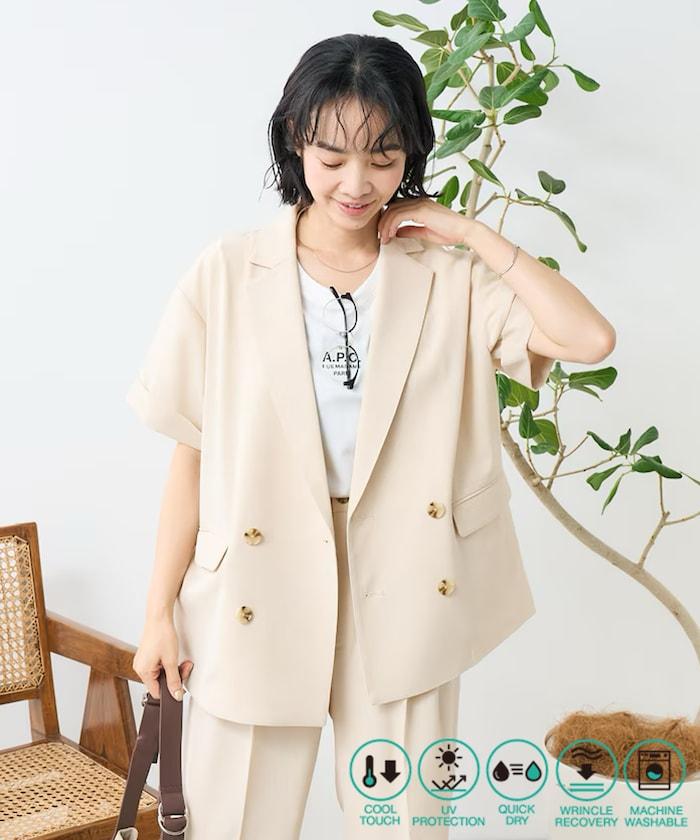 接觸冷感/UV 亞麻觸感 短袖 套裝外套