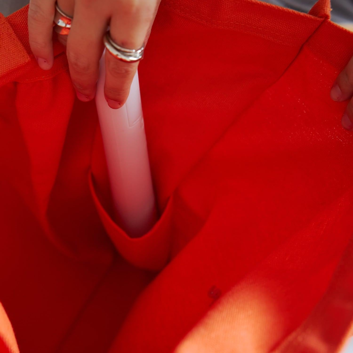 包的大小足以容納一個 Uchiwa,口袋還可以放置筆燈和 PET 瓶。