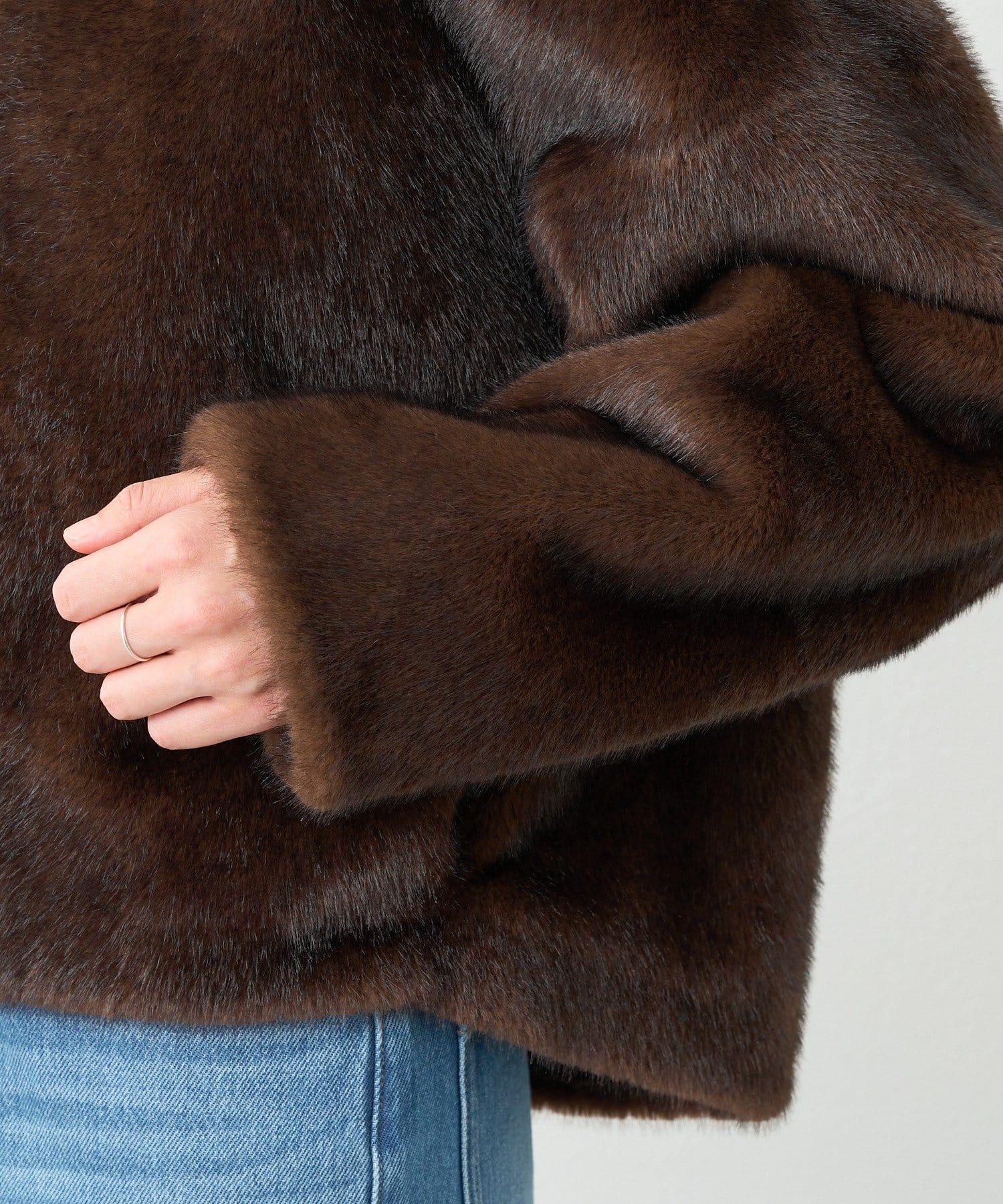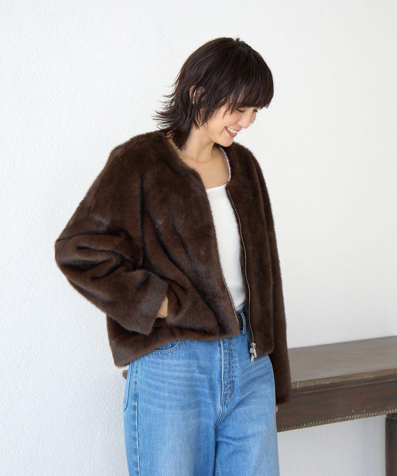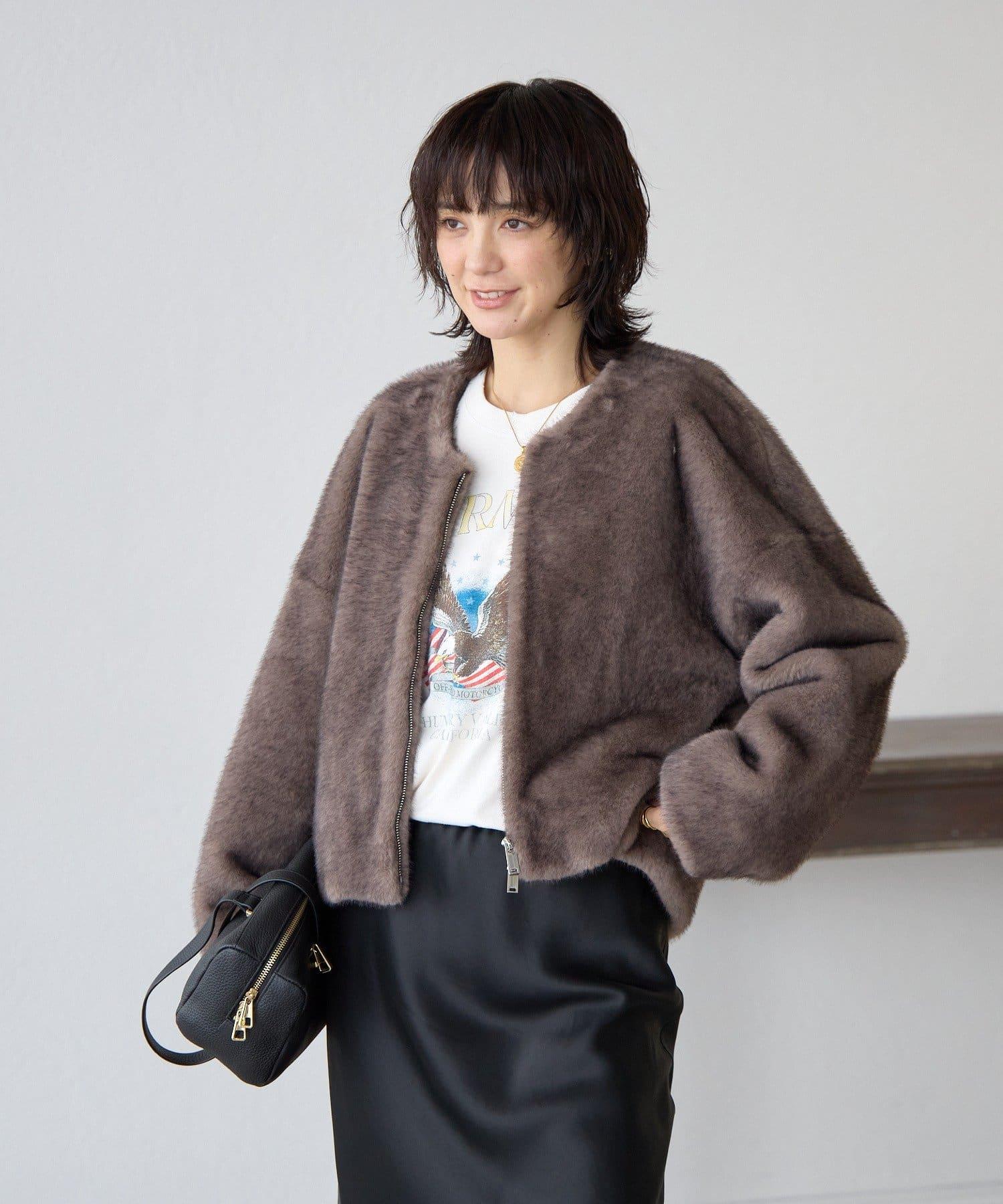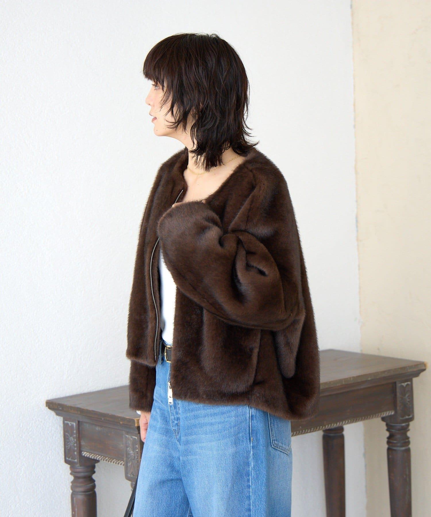 此款皮草採用仿貂皮製成,散發著優雅的光澤,只需穿上它,就能烘托出秋冬的氣氛。