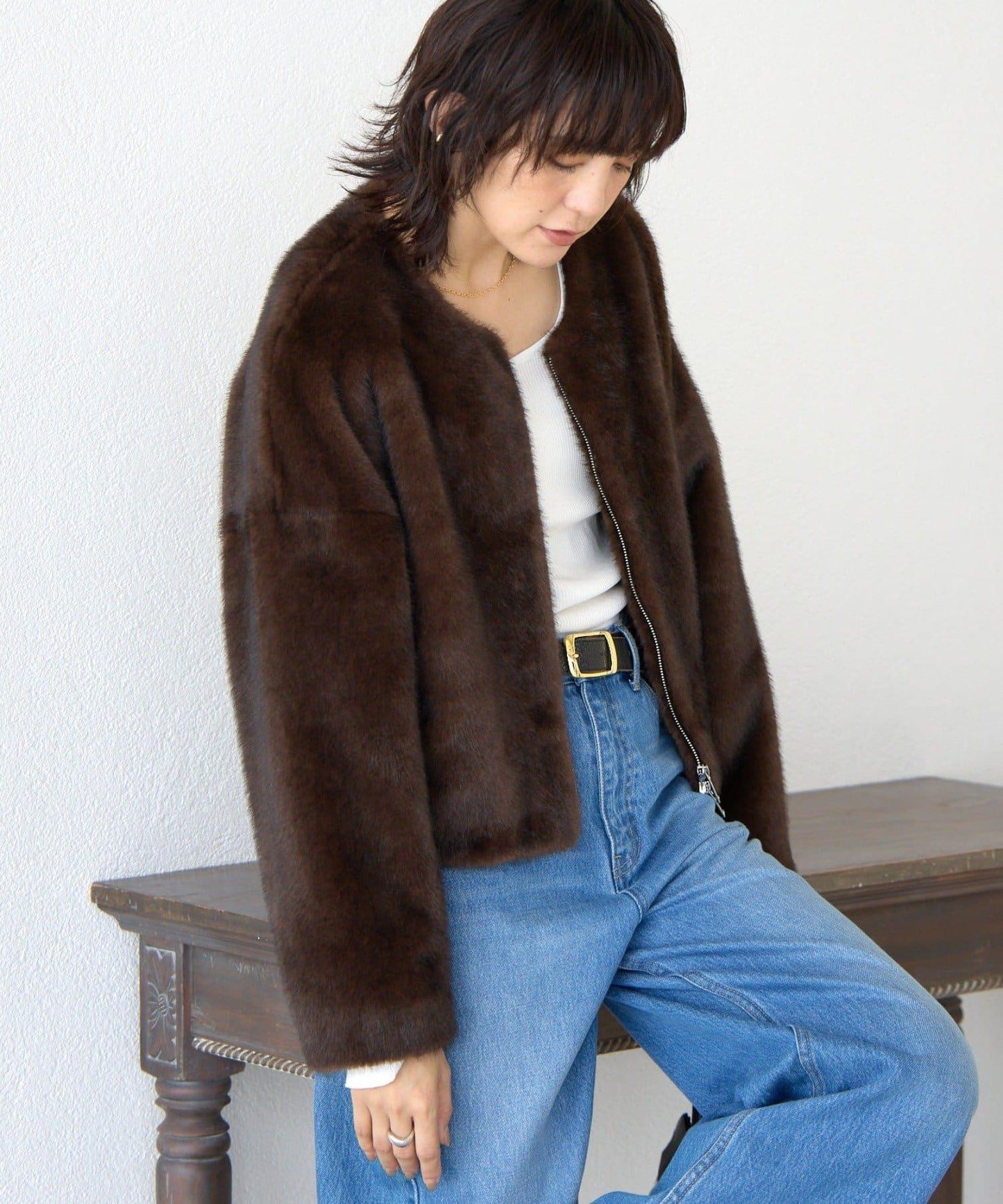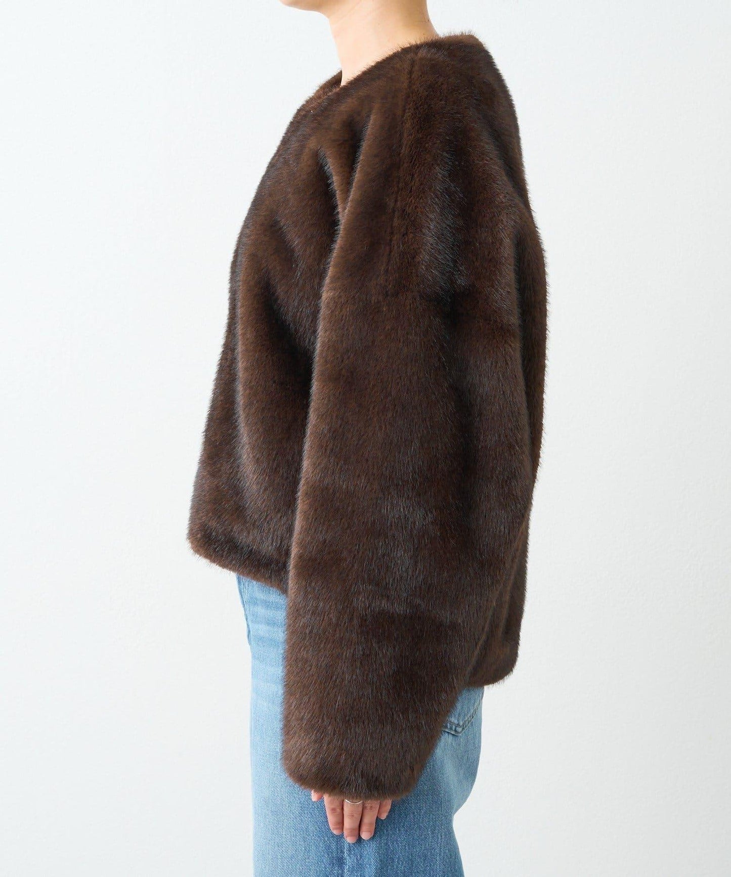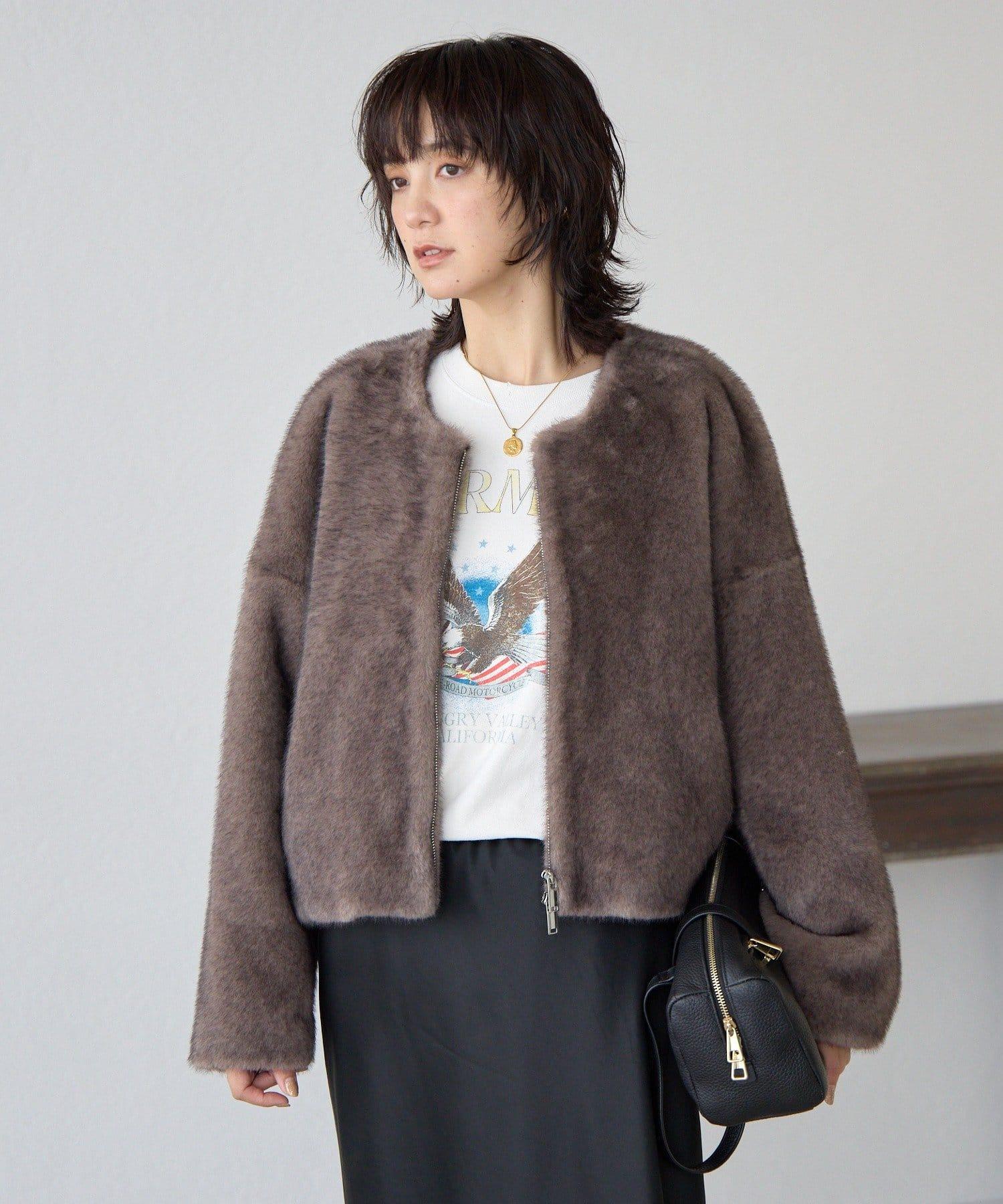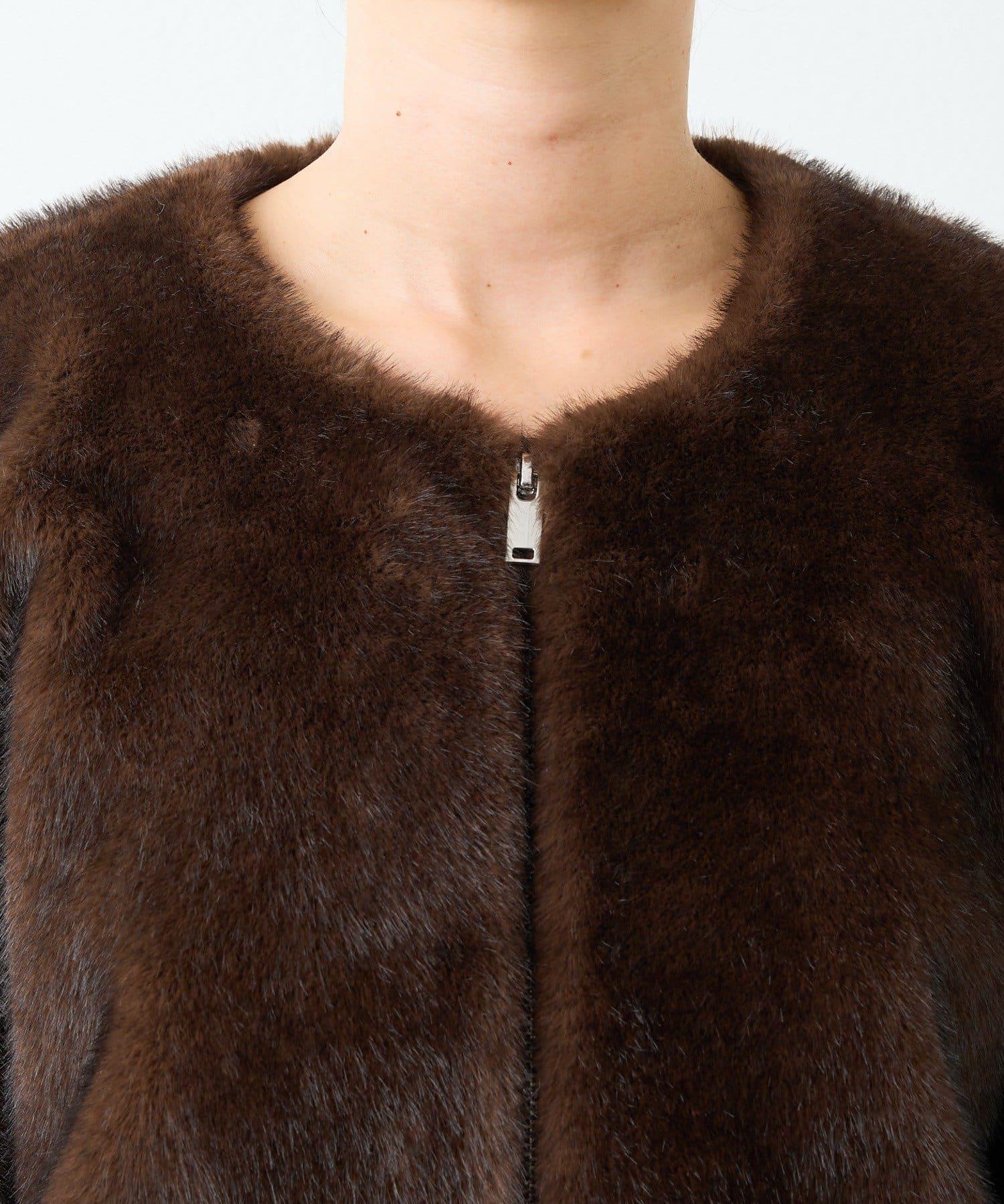 此款皮草採用仿貂皮製成,散發著優雅的光澤,只需穿上它,就能烘托出秋冬的氣氛。