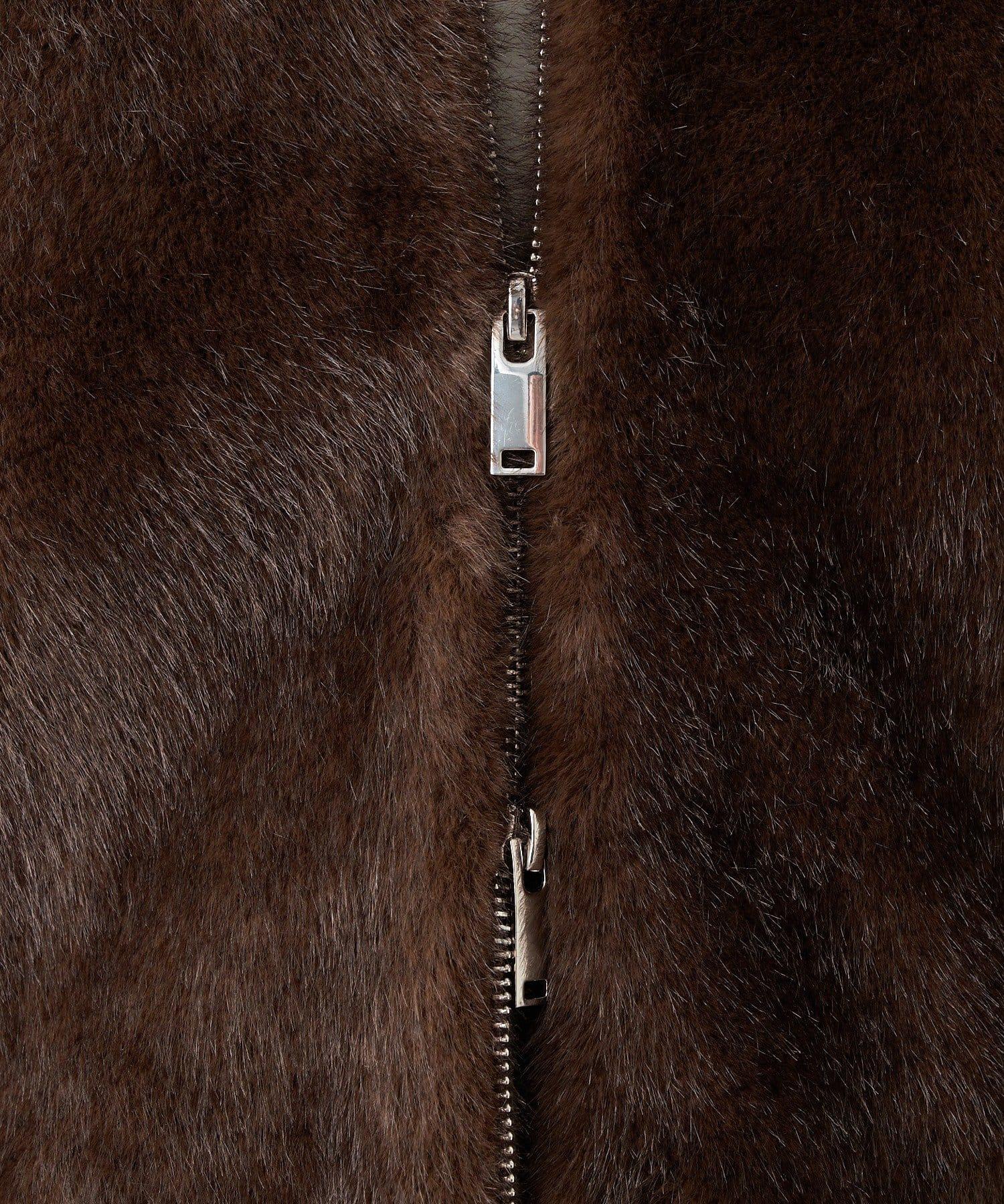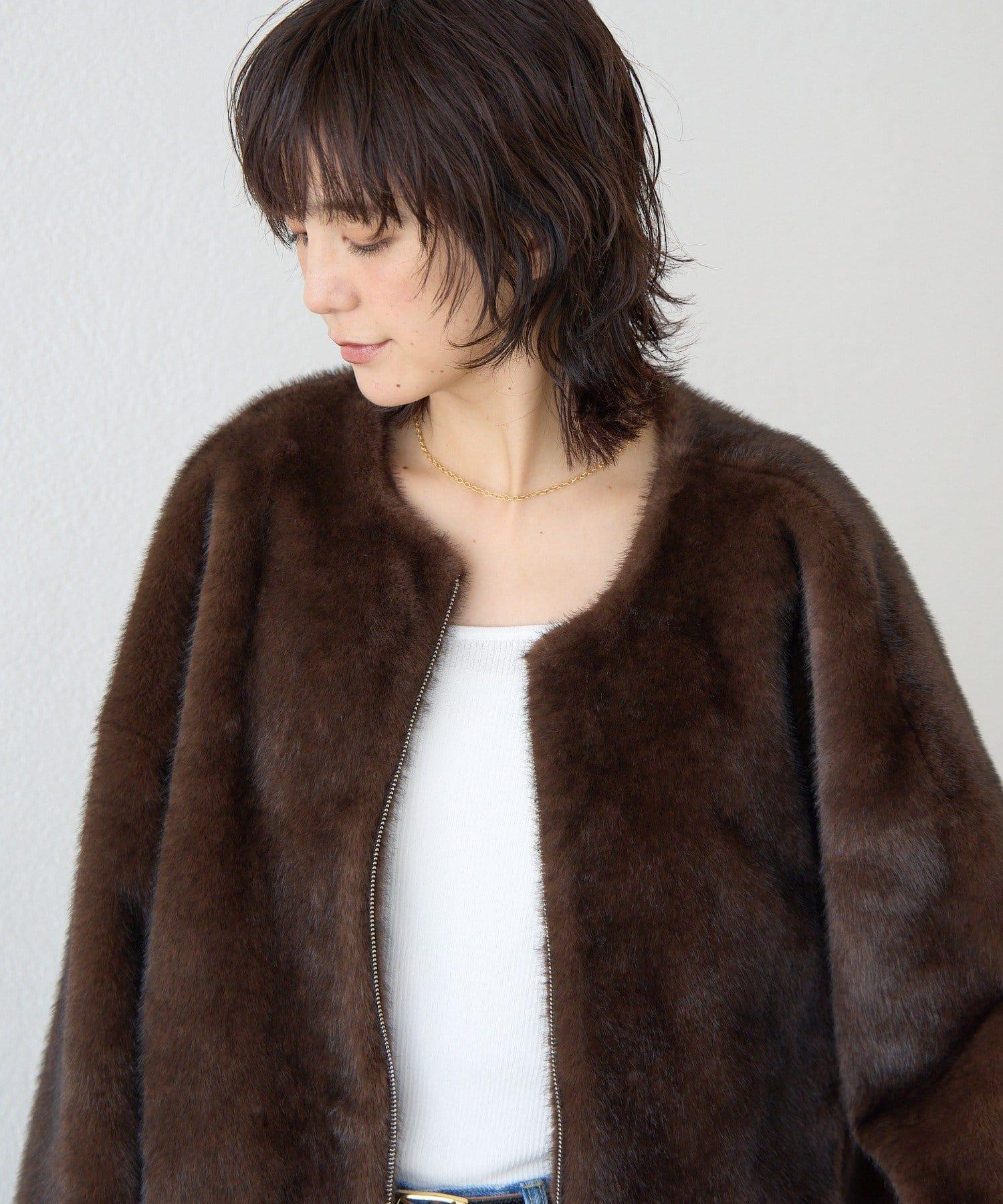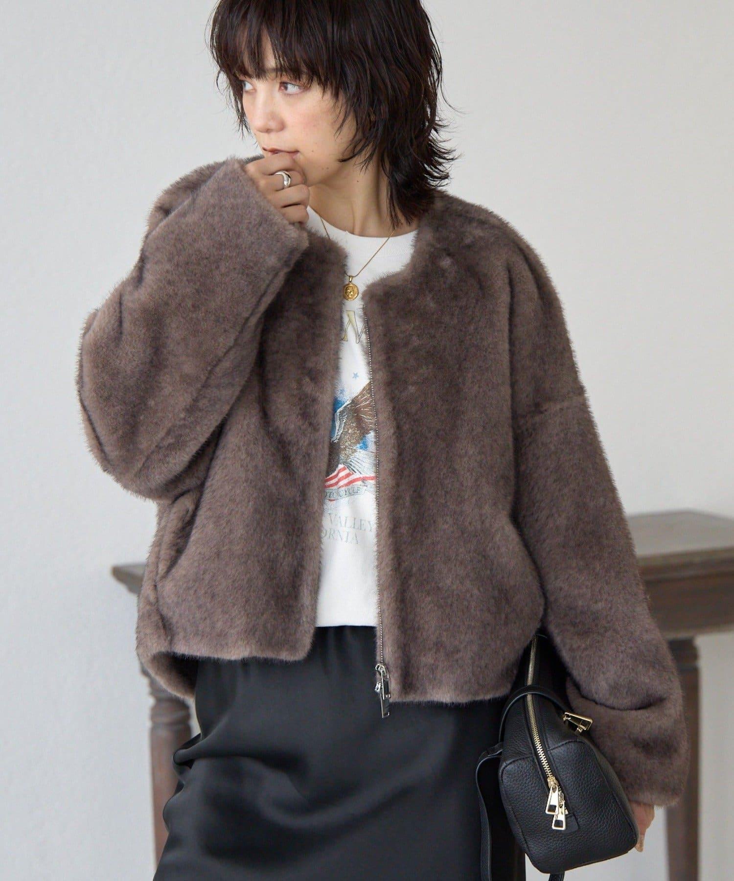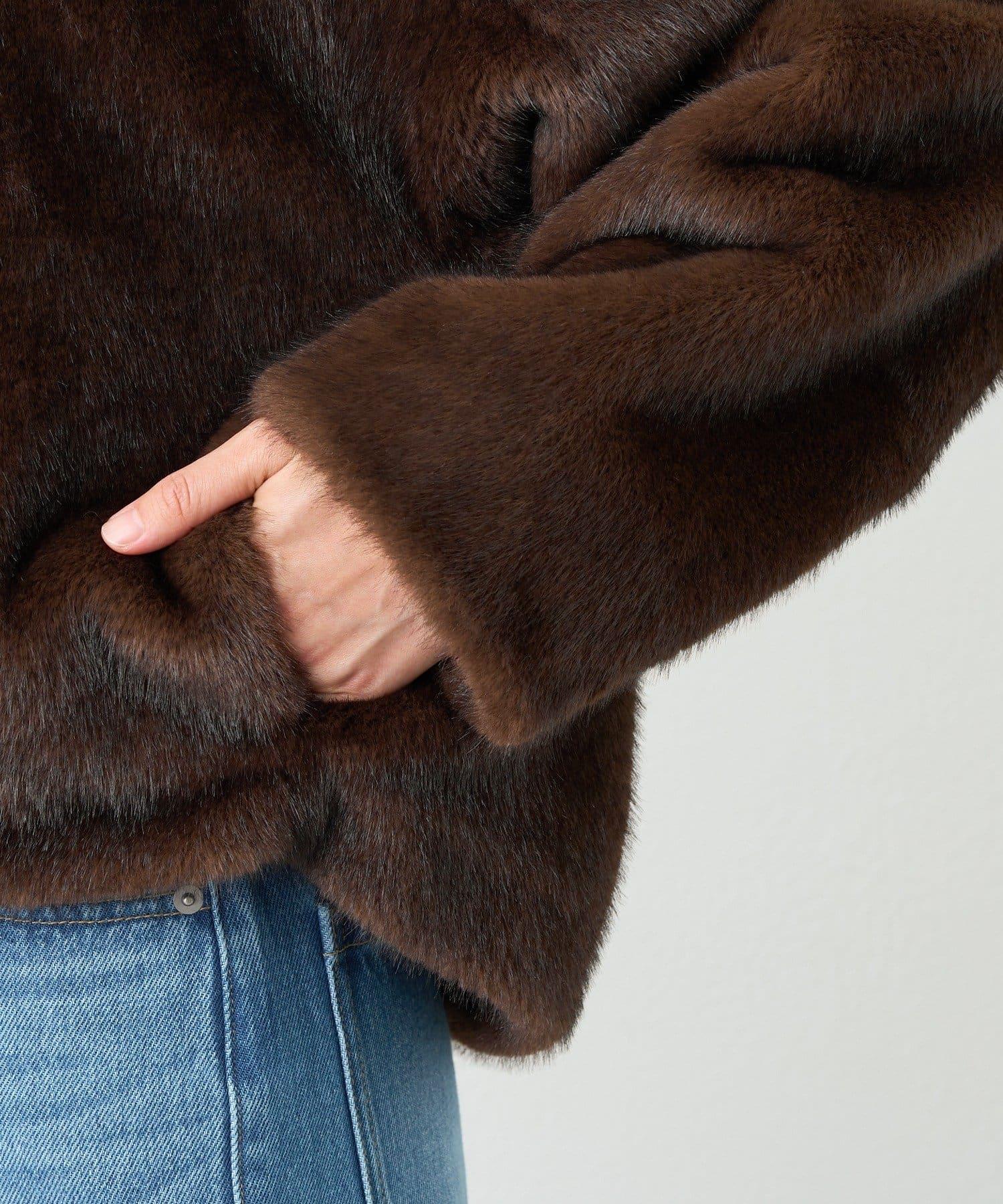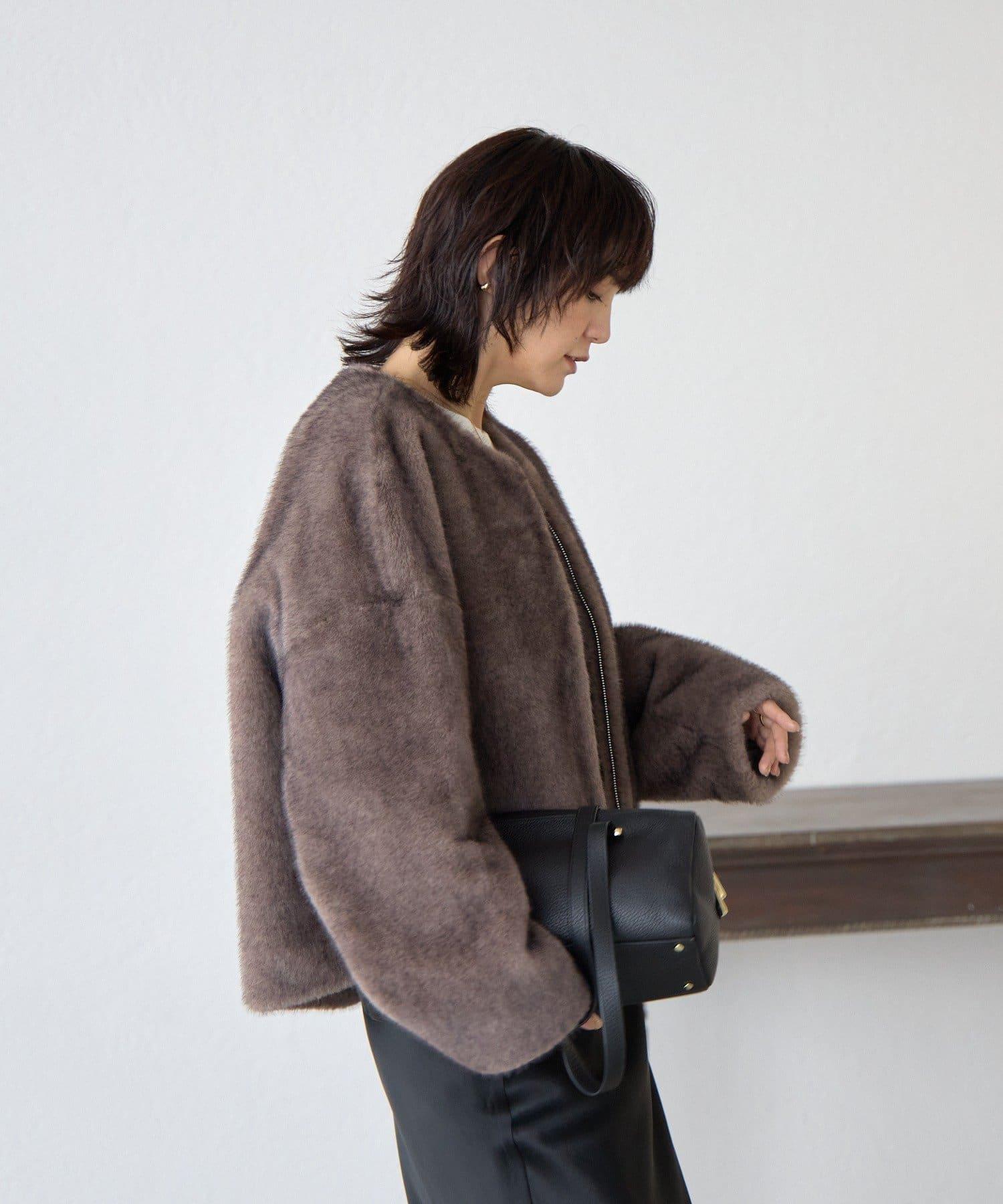 此款皮草採用仿貂皮製成,散發著優雅的光澤,只需穿上它,就能烘托出秋冬的氣氛。